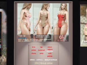 Featuring: Accessories, Animations/Poses/Props, Appliers/Cosmetics/Nails, Avatar Components, Avatar Enhancements, Clothing, Footwear, Home and Garden, Shapes, Tattoos, Textures