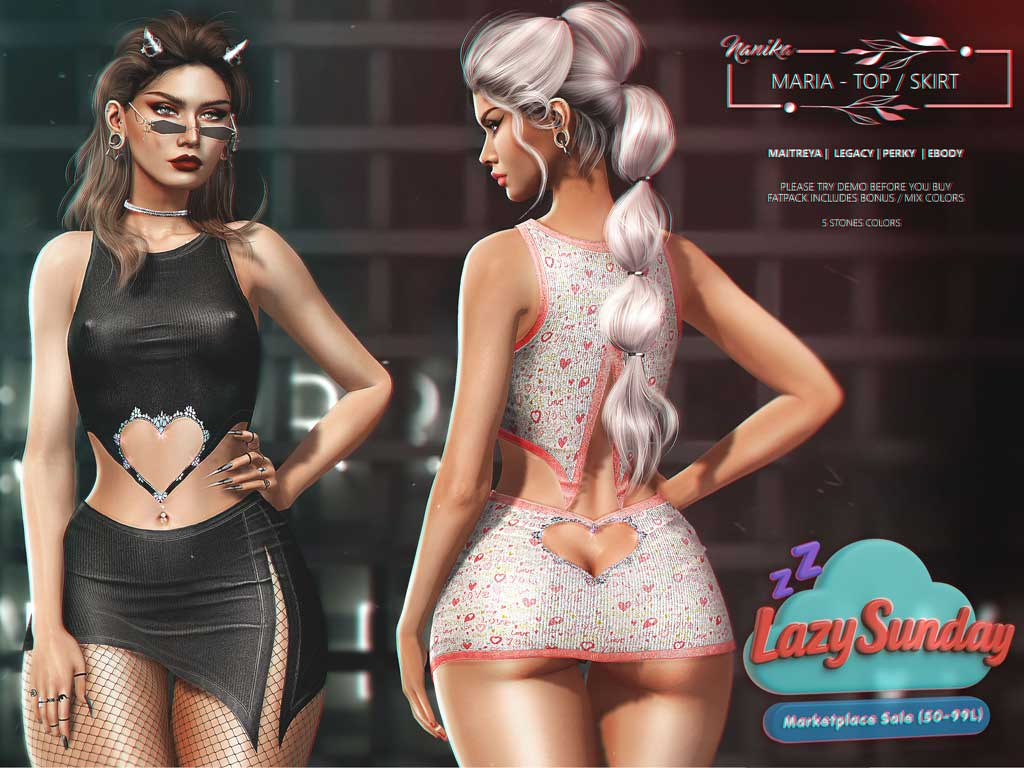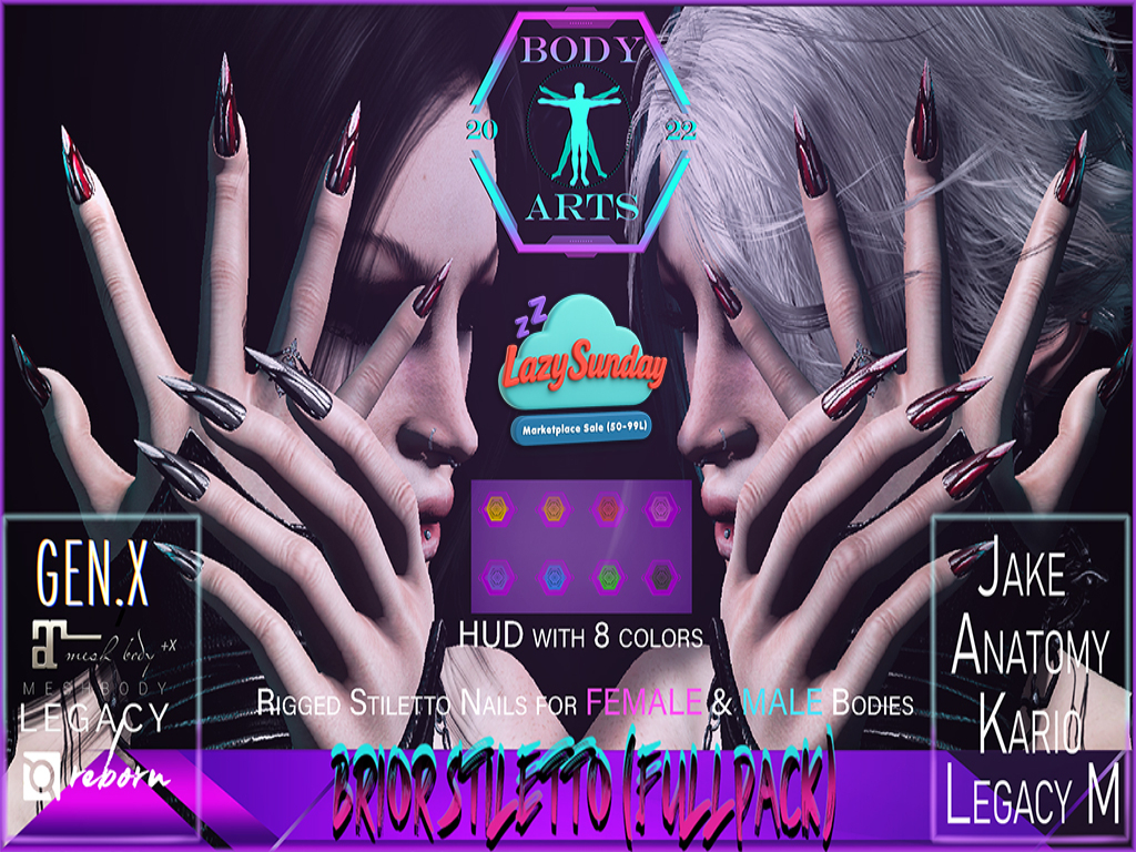 Featuring: Accessories, Animations/Poses/Props, Appliers/Cosmetics/Nails, Avatar Components, Avatar Enhancements, Builds, Clothing, Footwear, Home and Garden, Shapes, Skins, Tattoos, Tools, Vehicles
