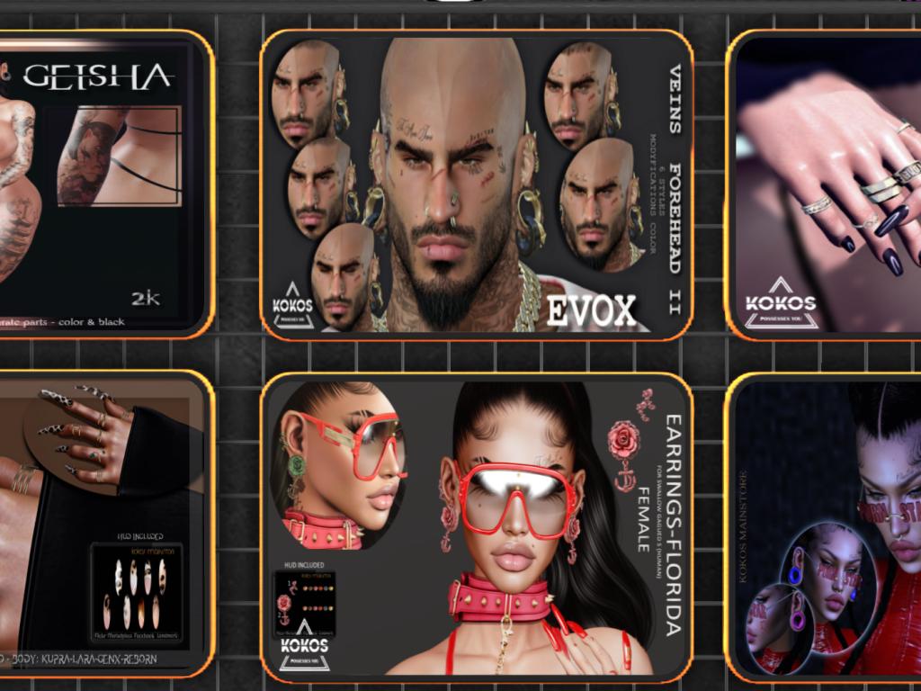 Featuring: Accessories, Animations/Poses/Props, Appliers/Cosmetics/Nails, Avatar Components, Avatar Enhancements, Clothing, Footwear, Home and Garden, HUDs, Skins, Tattoos, Vehicles