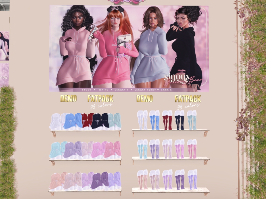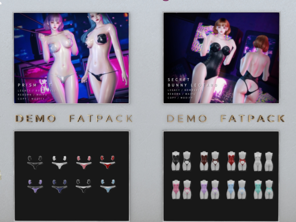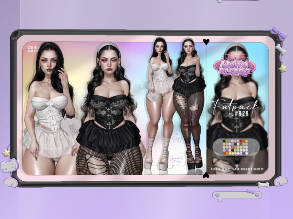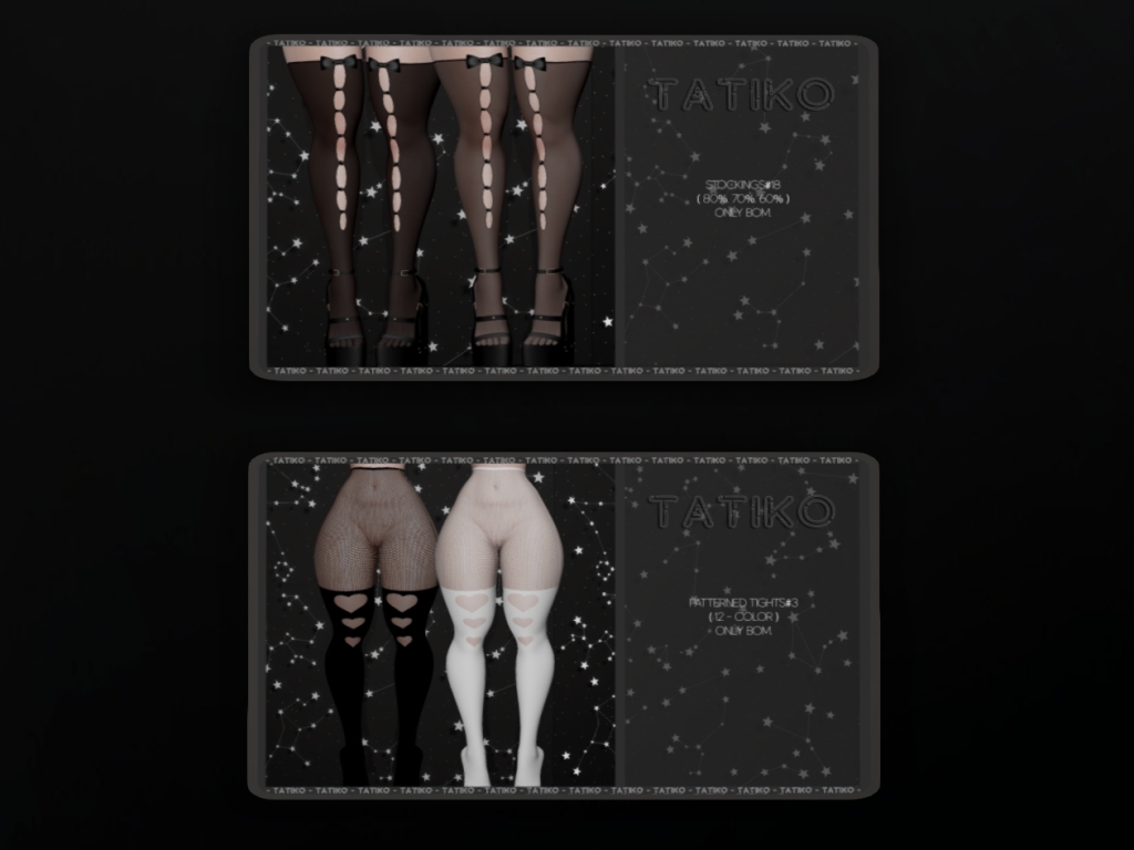 Featuring: Accessories, Animations/Poses/Props, Appliers/Cosmetics/Nails, Avatar Components, Avatar Enhancements, Builds, Clothing, Footwear, Shapes, Skins, Tattoos
