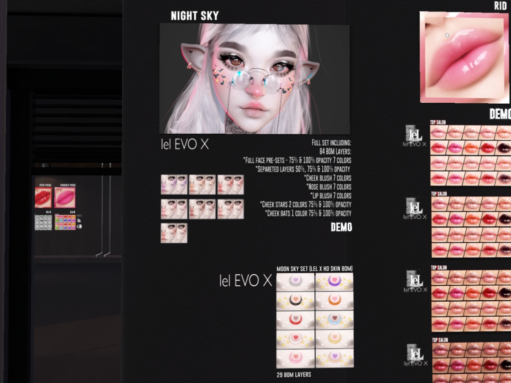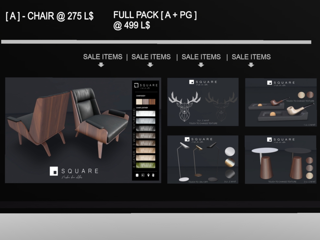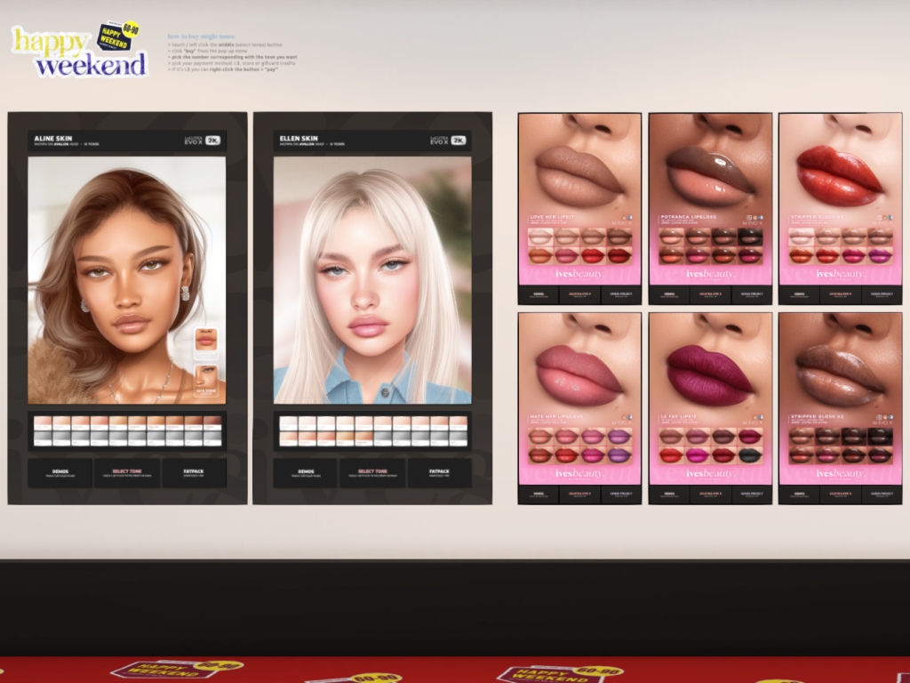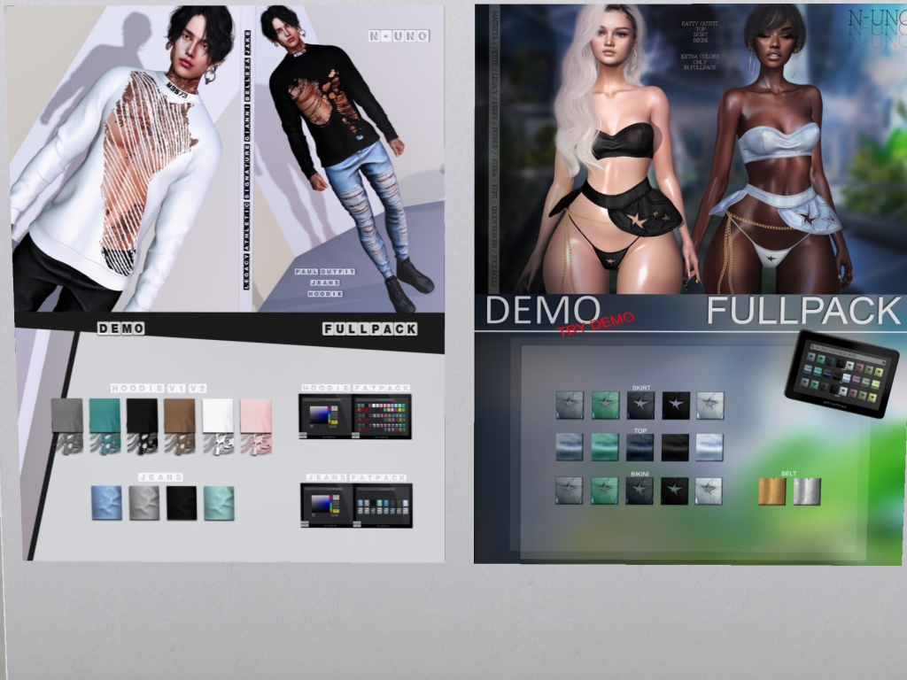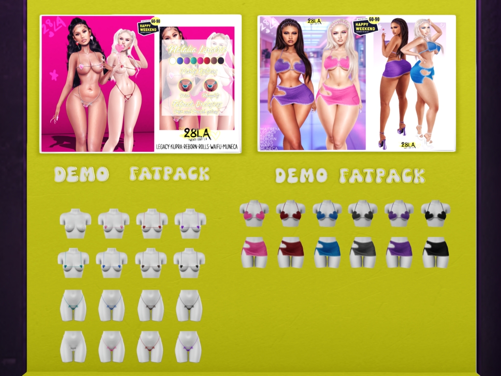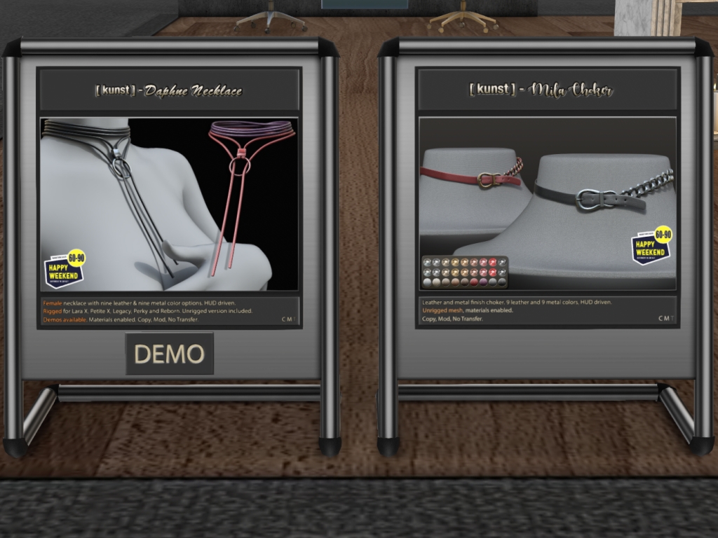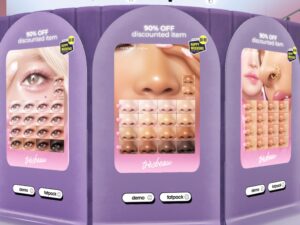 Featuring: Accessories, Animals/Pets/Companions, Animations/Poses/Props, Appliers/Cosmetics/Nails, Avatar Components, Avatar Enhancements, Builds, Clothing, Footwear, Hairs, Home and Garden, HUDs, Shapes, Skins, Tattoos, Vehicles