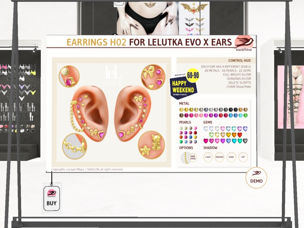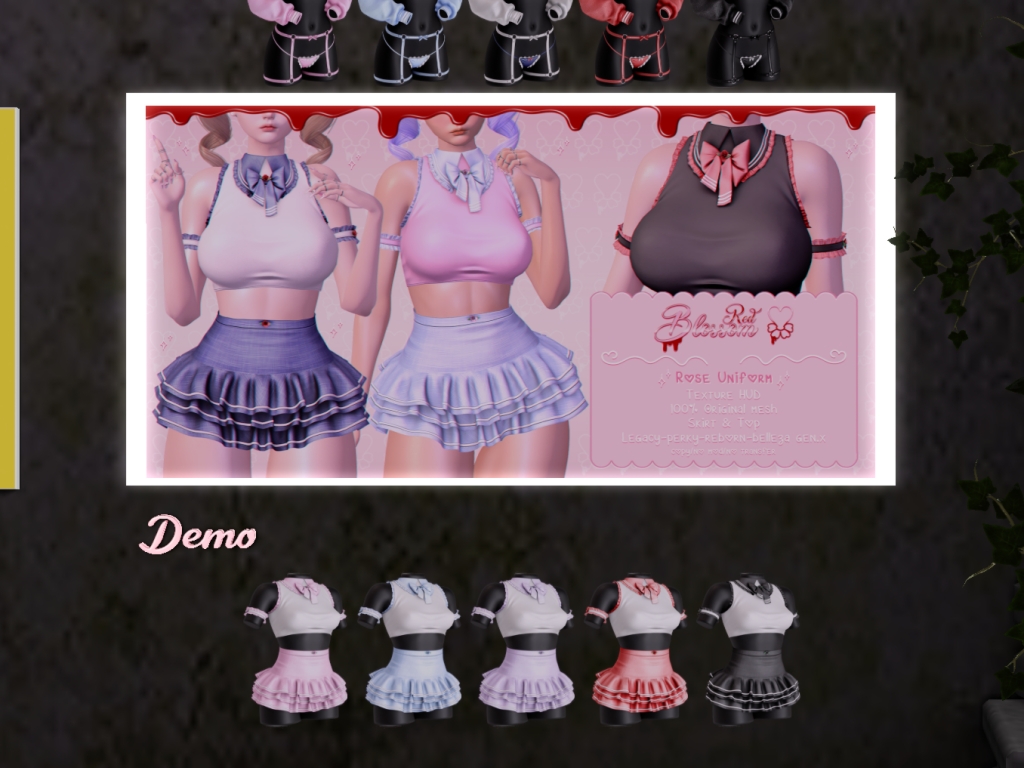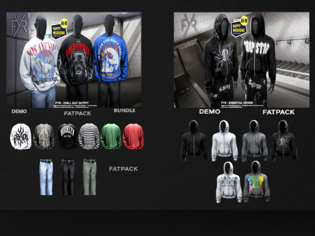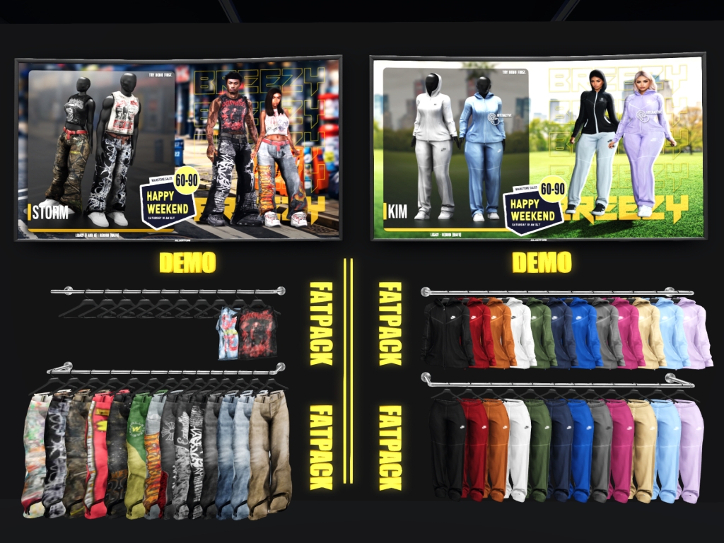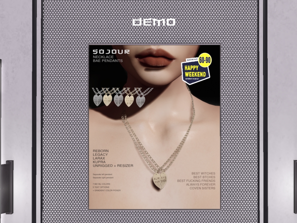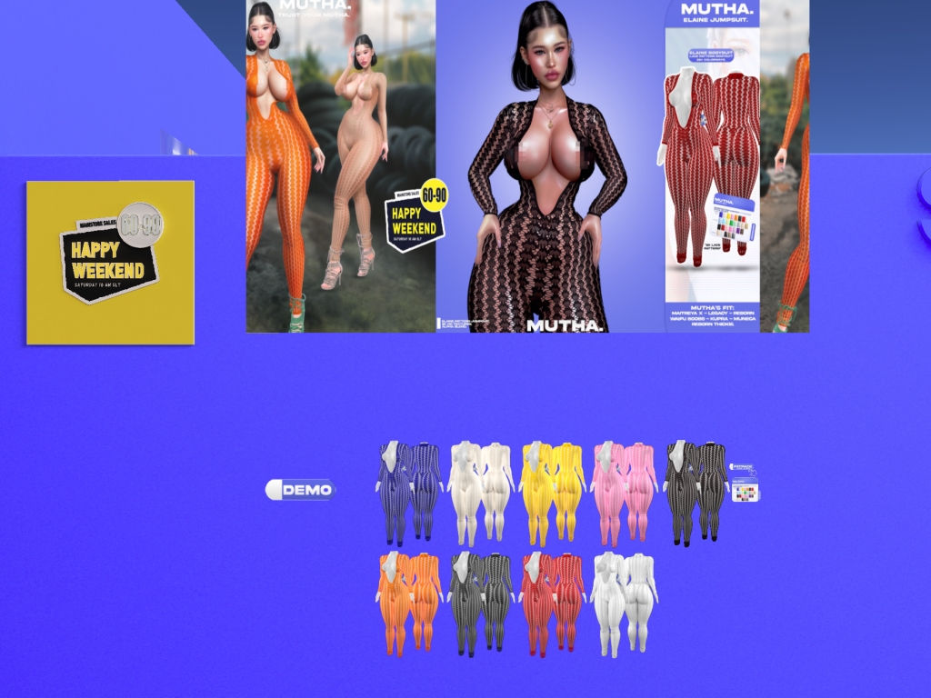 Featuring: Accessories, Animals/Pets/Companions, Animations/Poses/Props, Appliers/Cosmetics/Nails, Avatar Components, Avatar Enhancements, Builds, Clothing, Footwear, Hairs, Home and Garden, HUDs, Shapes, Skins, Tattoos, Vehicles