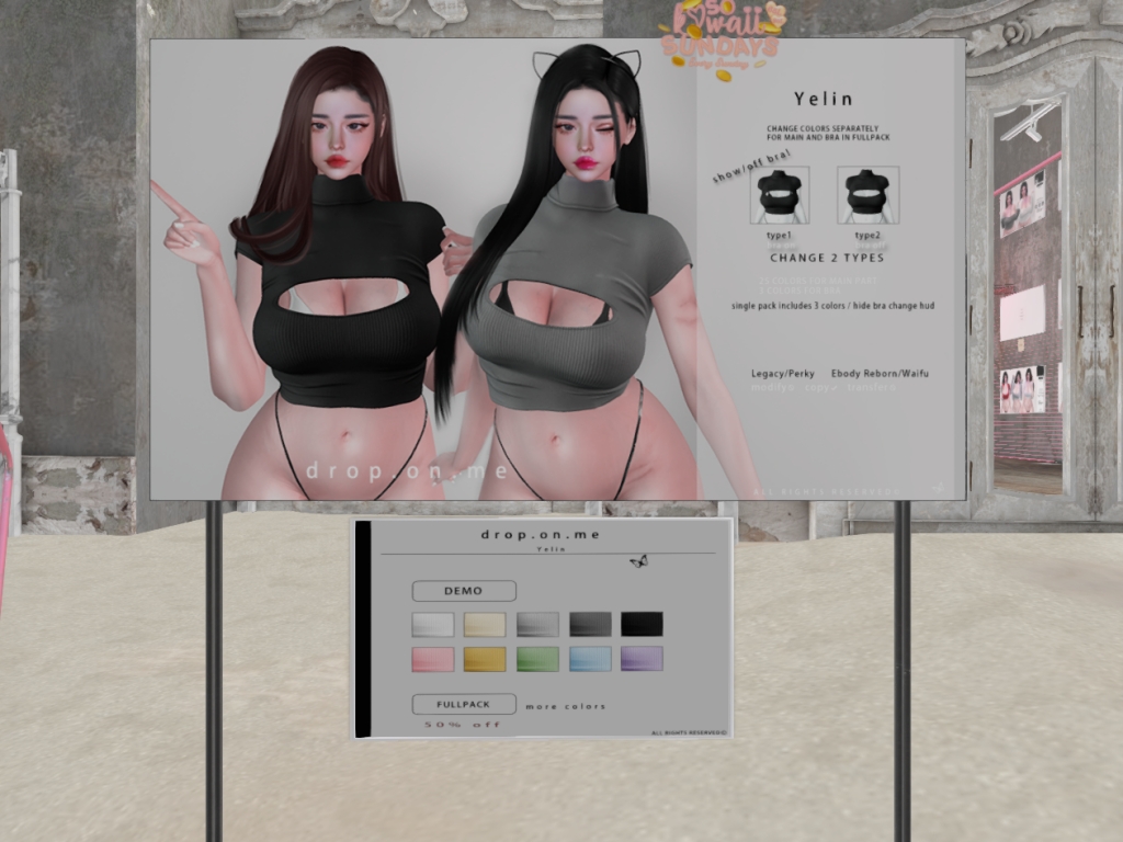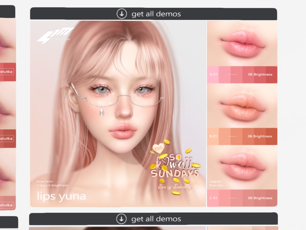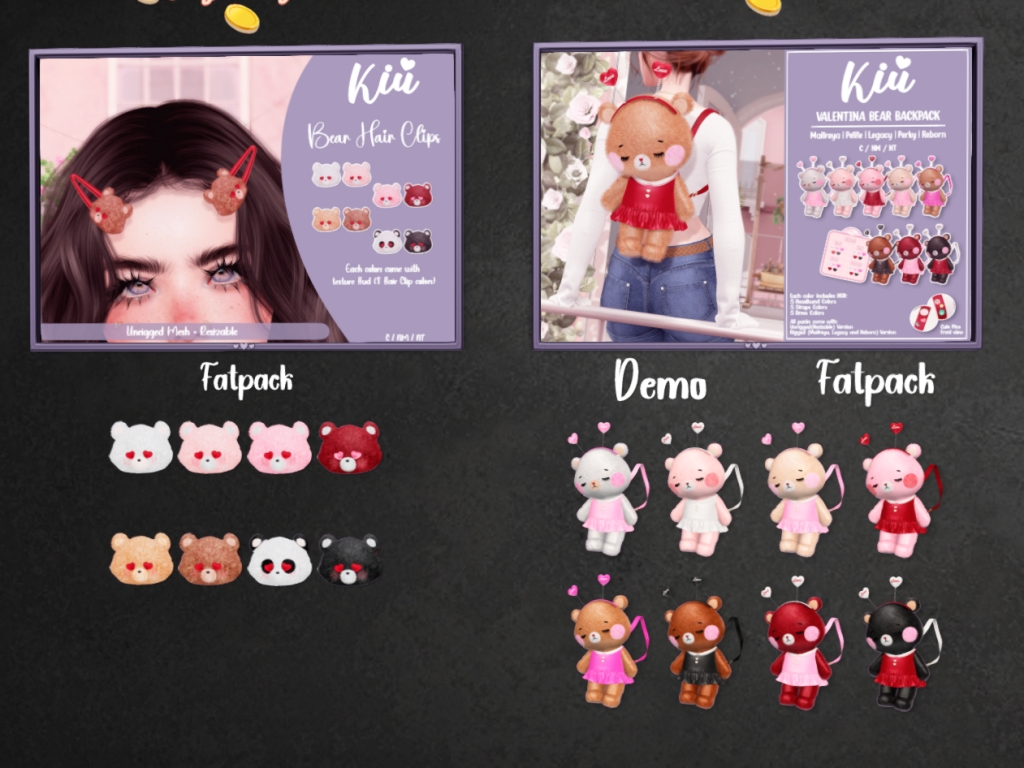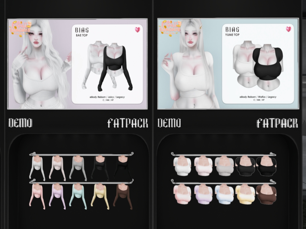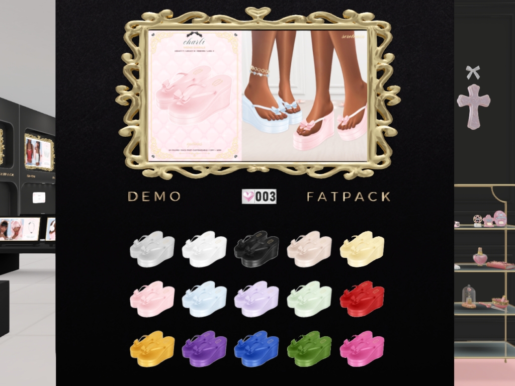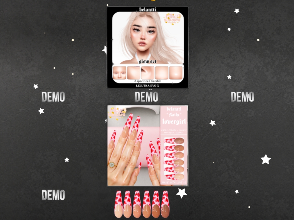 Featuring: Accessories, Animations/Poses/Props, Appliers/Cosmetics/Nails, Avatar Components, Avatar Enhancements, Builds, Clothing, Footwear, Hairs, Home and Garden, Shapes, Skins, Tattoos