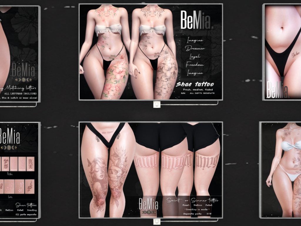 Featuring: Accessories, Animations/Poses/Props, Avatar Components, Avatar Enhancements, Clothing, Cosmetics/Nails, Footwear, Home and Garden, Skins, Tattoos, Vehicles