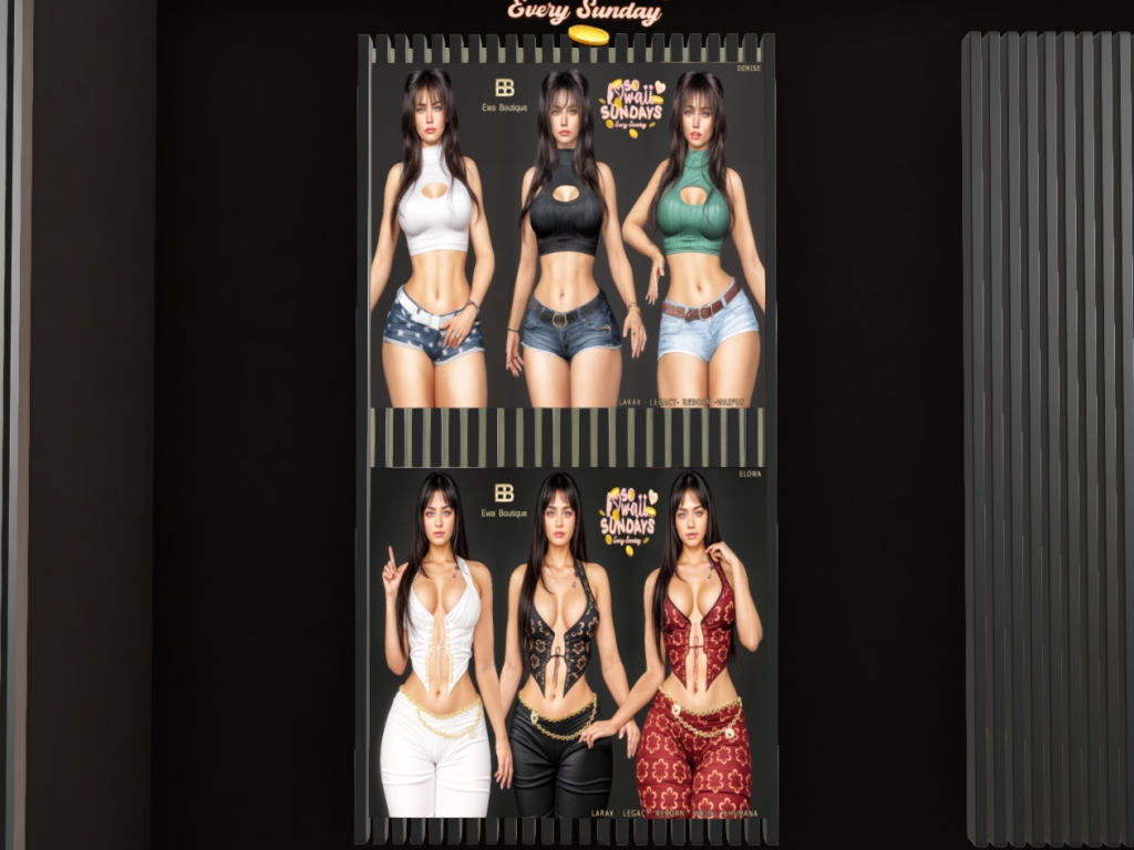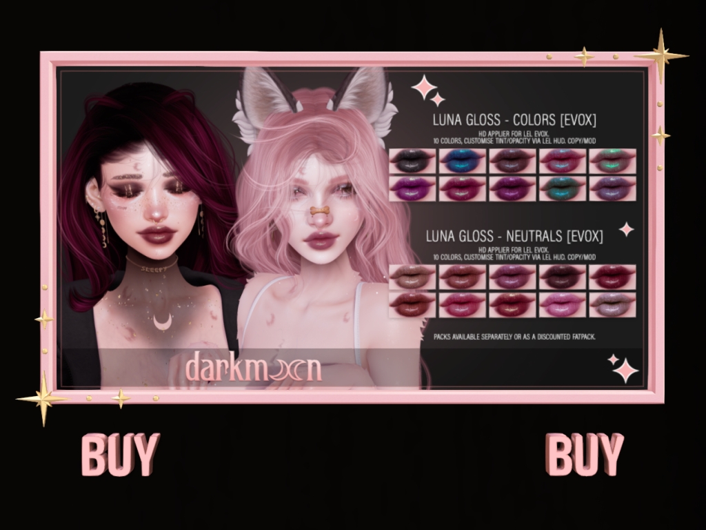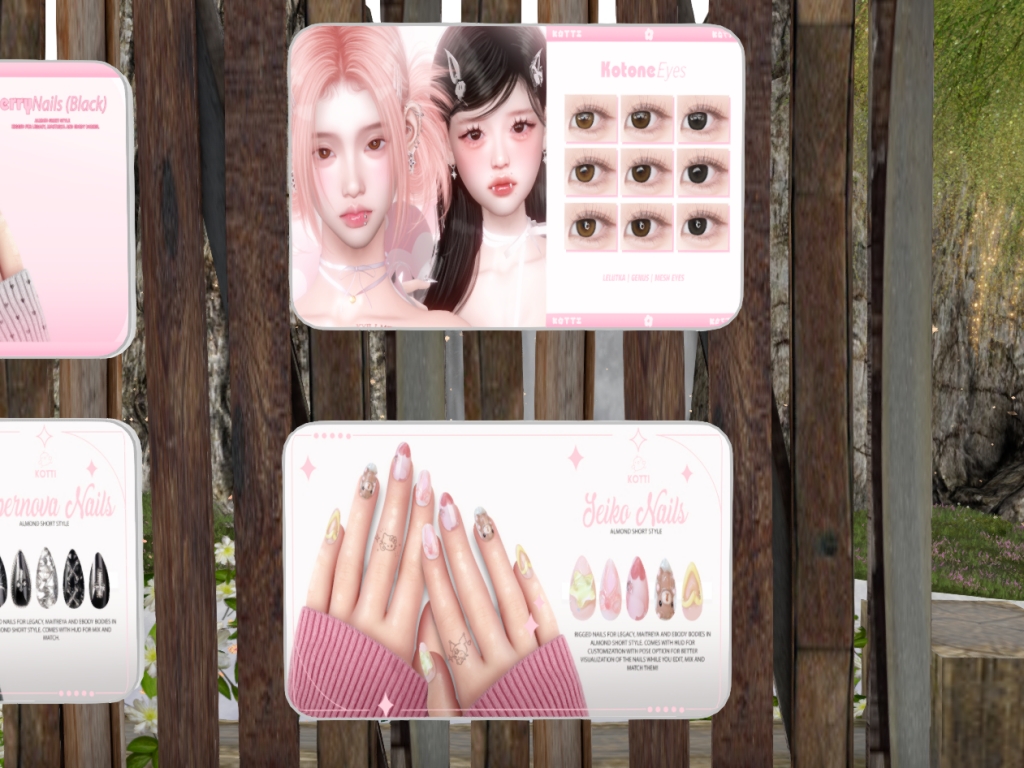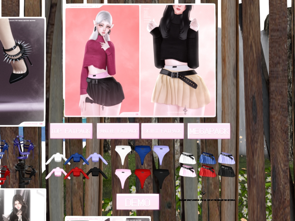Featuring: Accessories, Animations/Poses/Props, Appliers/Cosmetics/Nails, Avatar Components, Avatar Enhancements, Builds, Clothing, Footwear, Hairs, Home and Garden, Shapes, Skins, Tattoos