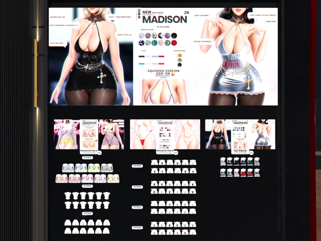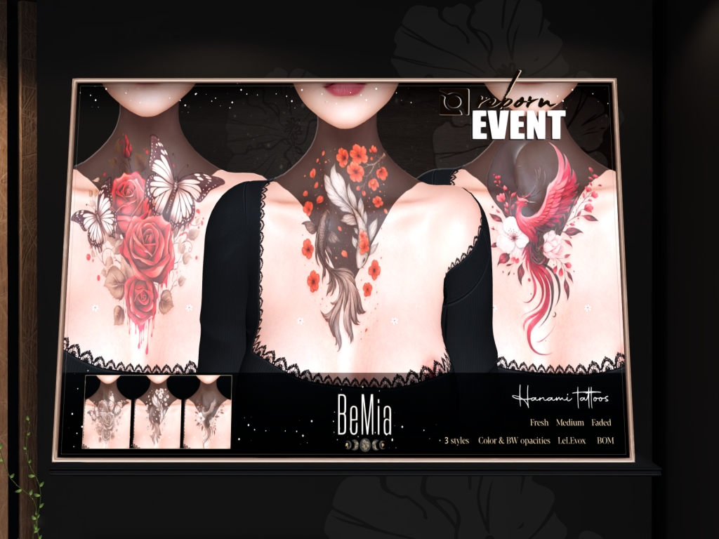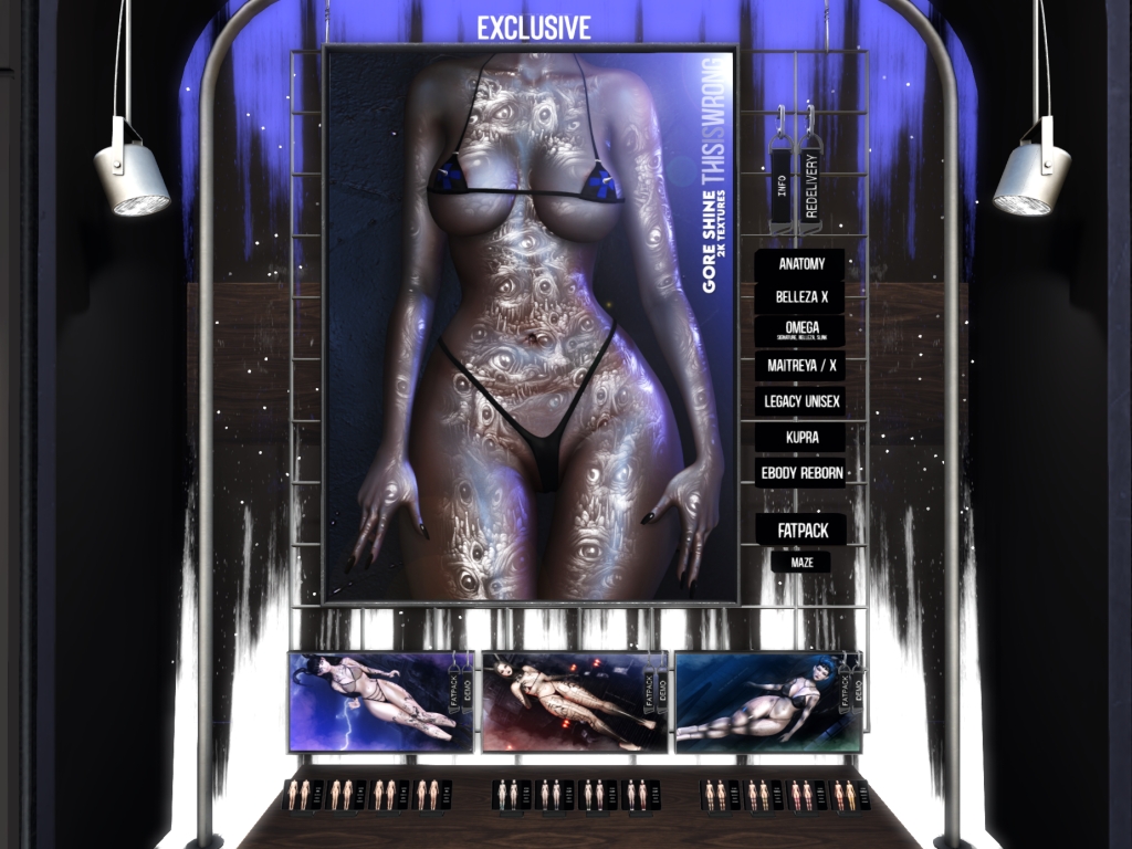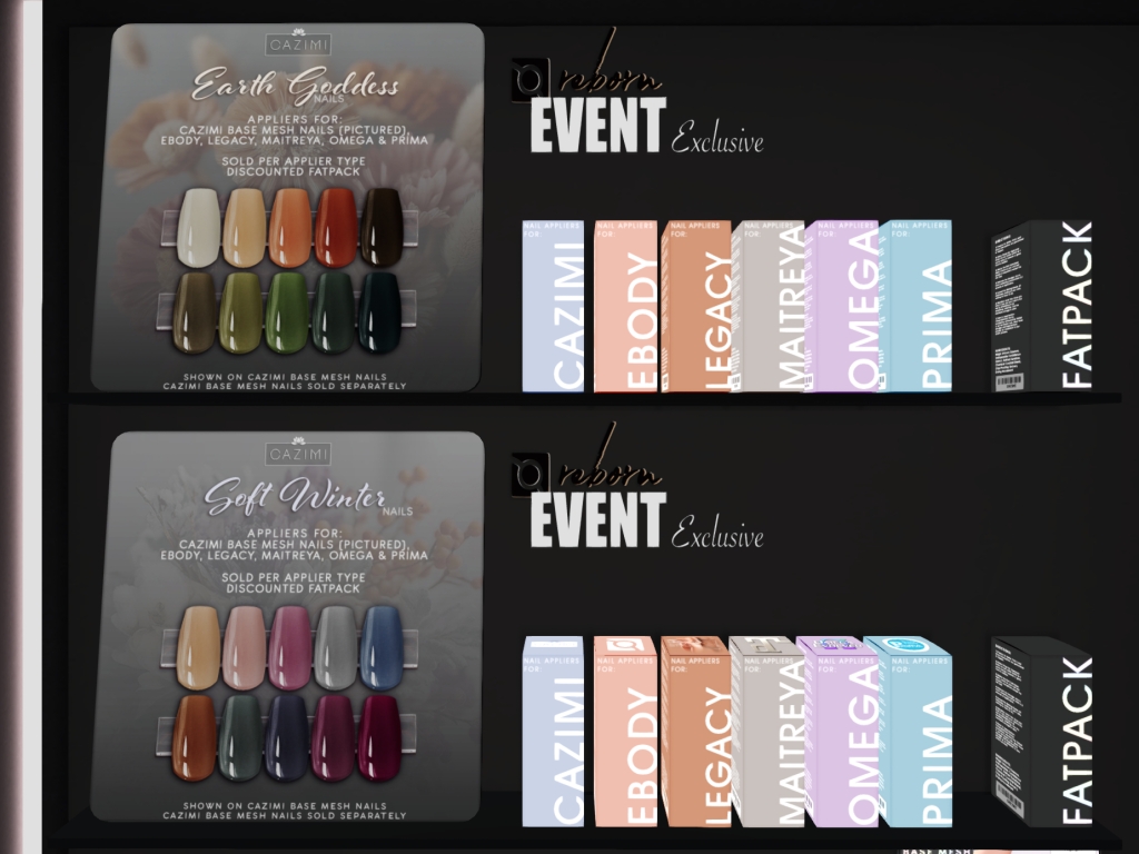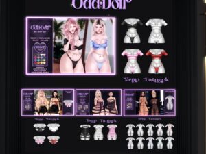 Featuring: Accessories, Animations/Poses/Props, Avatar Enhancements, Clothing, Cosmetics/Nails, Footwear, Shapes, Skins, Tattoos