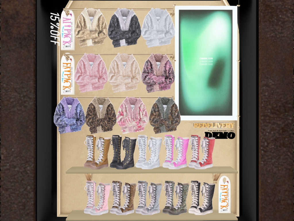 Featuring: Accessories, Animations/Poses/Props, Avatar Components, Avatar Enhancements, Clothing, Cosmetics/Nails, Footwear, Hairs, Home and Garden, Skins, Tattoos