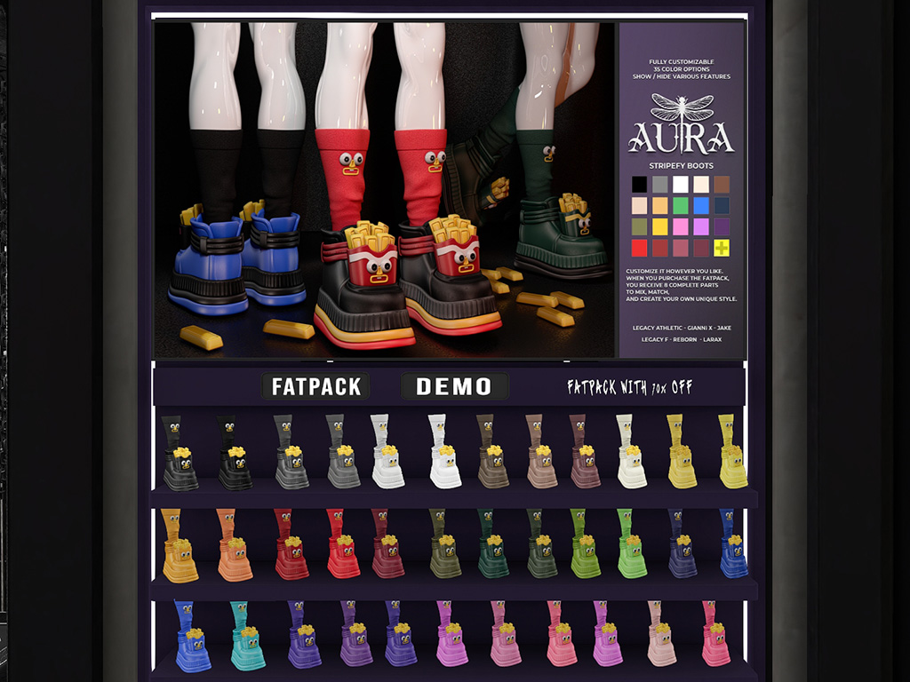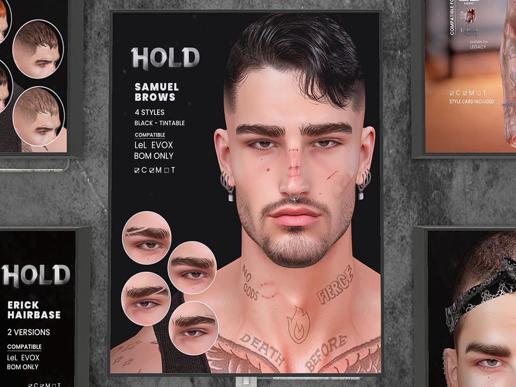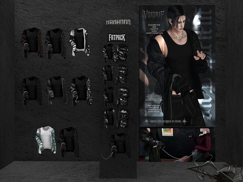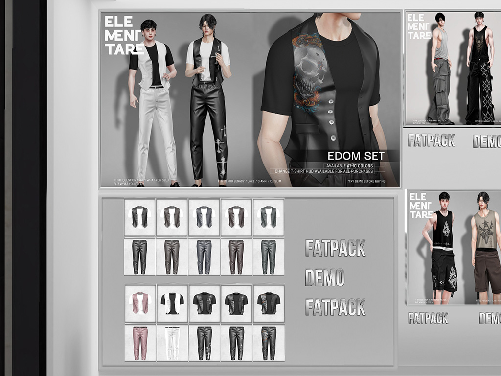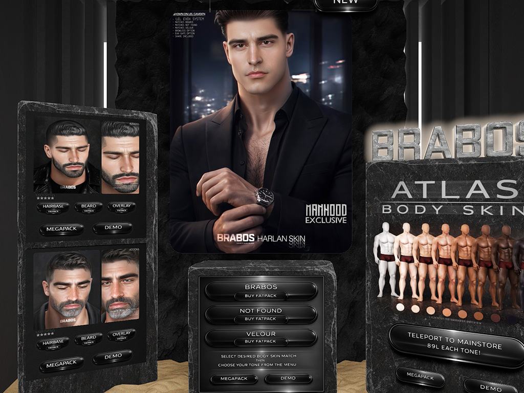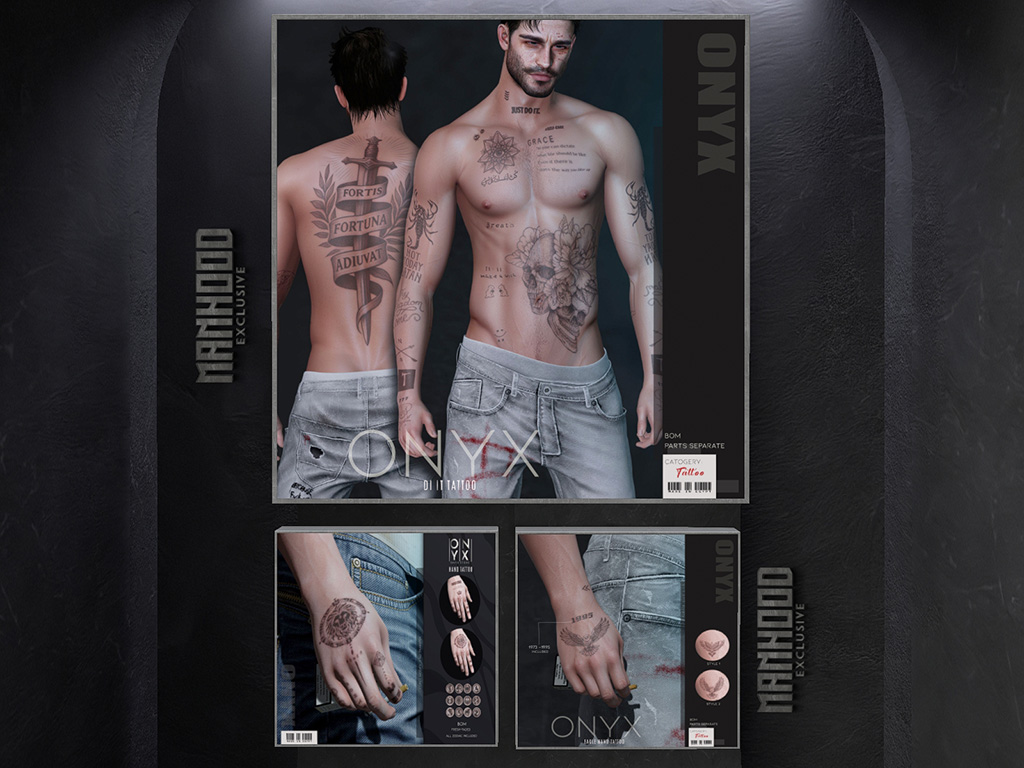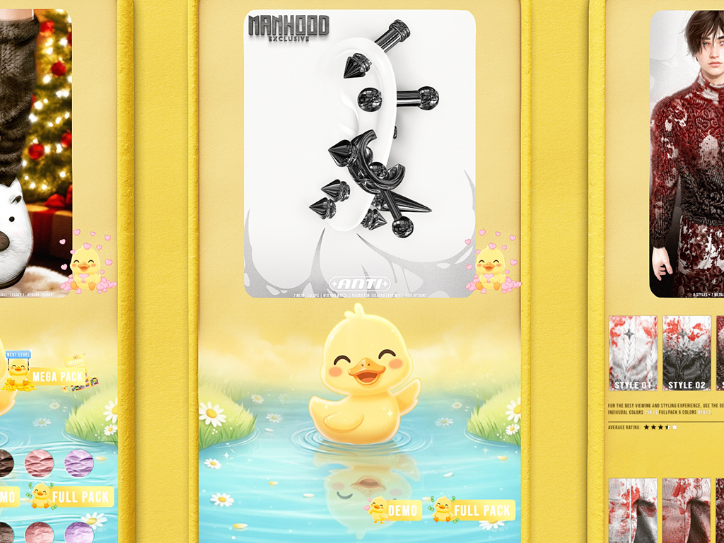 Featuring: Accessories, Animations/Poses/Props, Avatar Components, Avatar Enhancements, Clothing, Footwear, Hairs, Skins, Tattoos