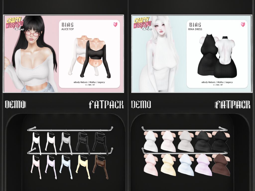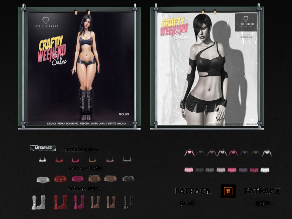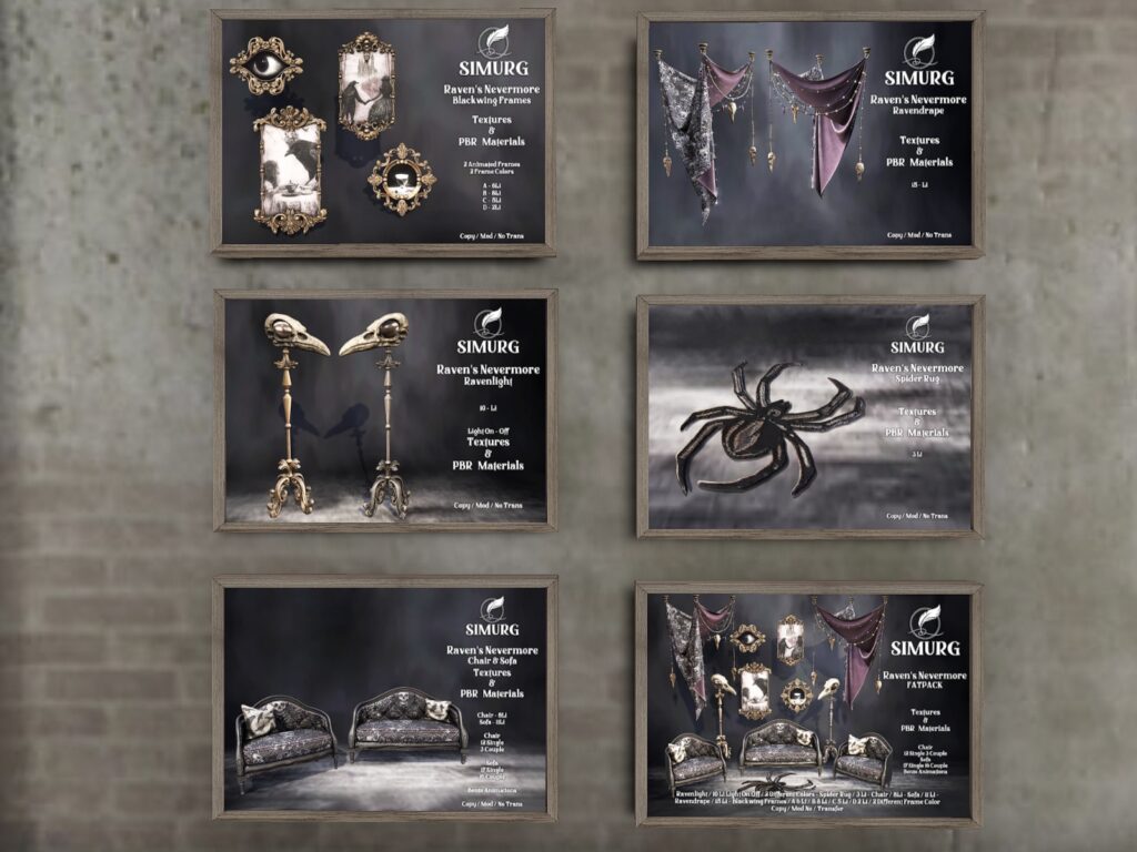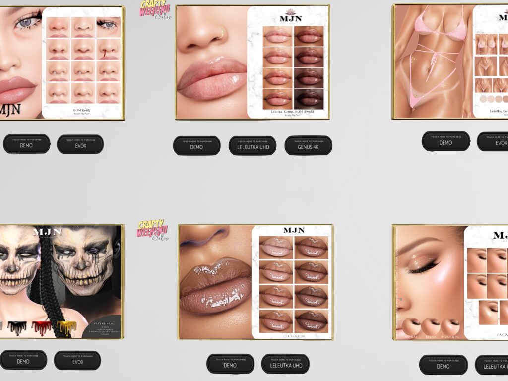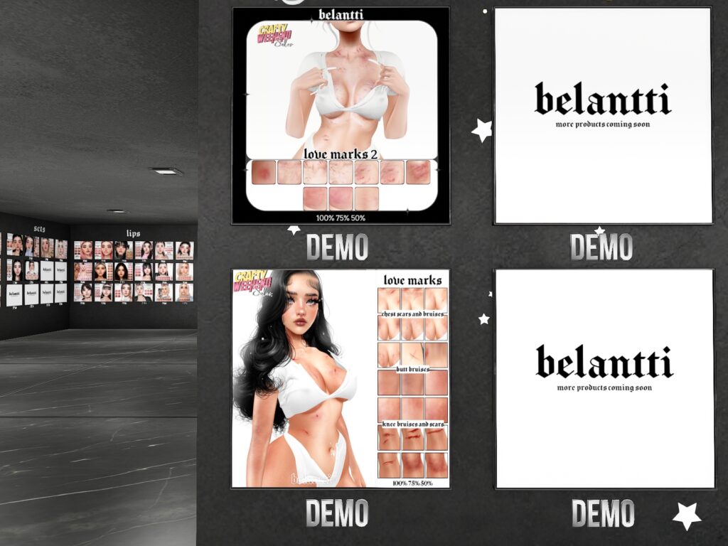 Featuring: Accessories, Animations/Poses/Props, Appliers/Cosmetics/Nails, Avatar Components, Avatar Enhancements, Builds, Clothing, Footwear, Hairs, Home and Garden, Skins, Tattoos, Vehicles
