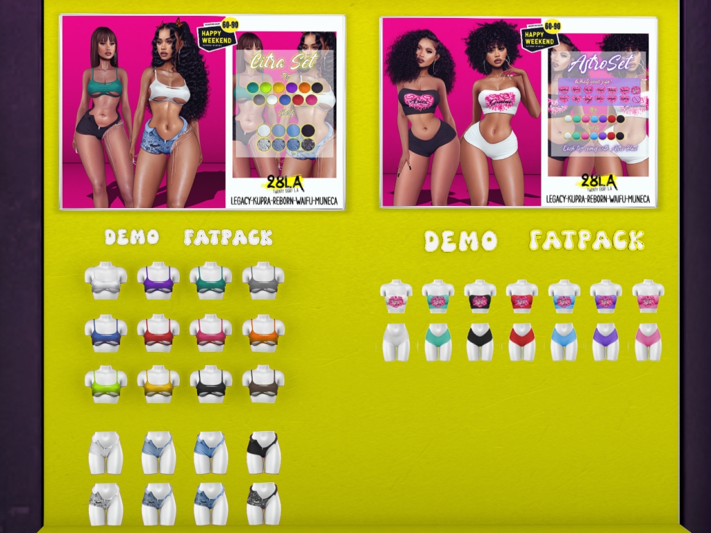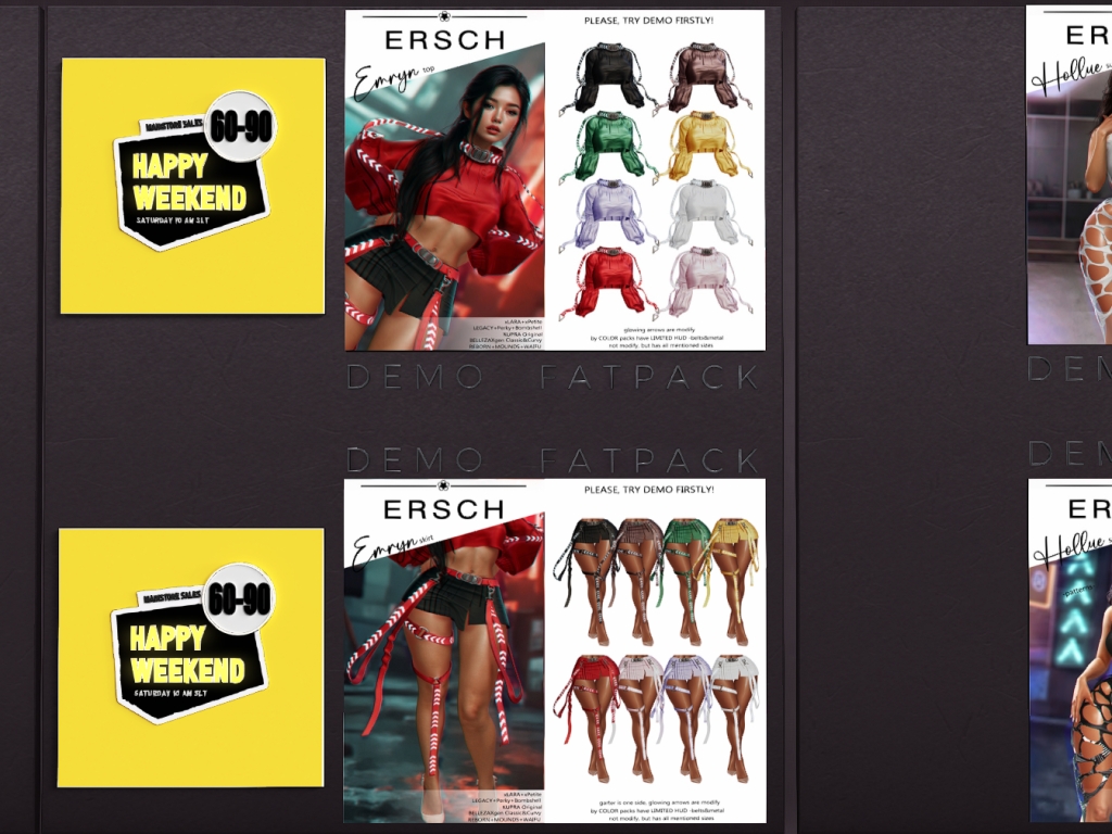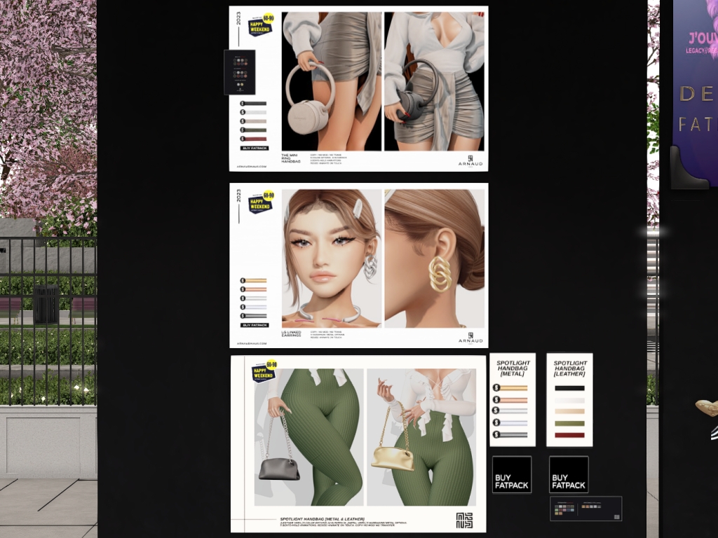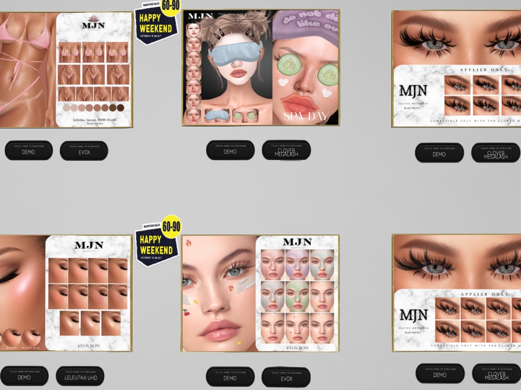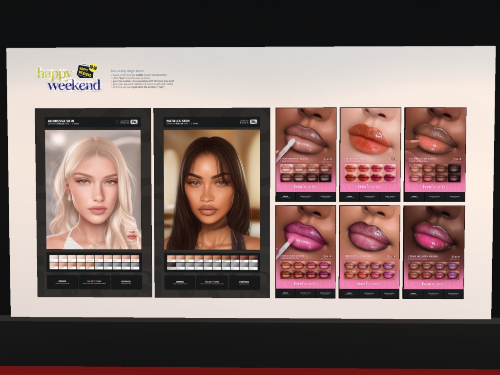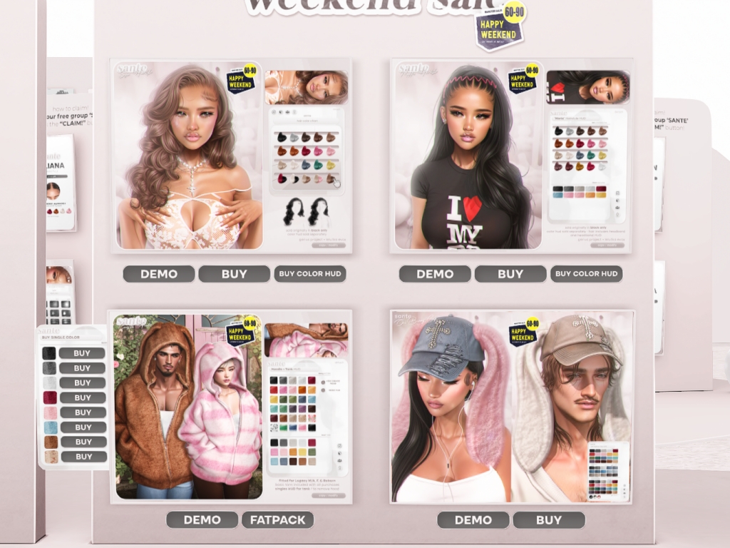Featuring: Accessories, Animations/Poses/Props, Appliers/Cosmetics/Nails, Avatar Components, Builds, Clothing, Footwear, Hairs, Home and Garden, Shapes, Skins, Tattoos, Vehicles