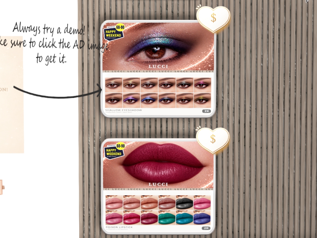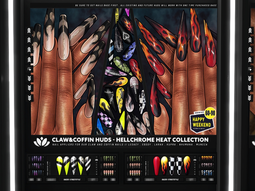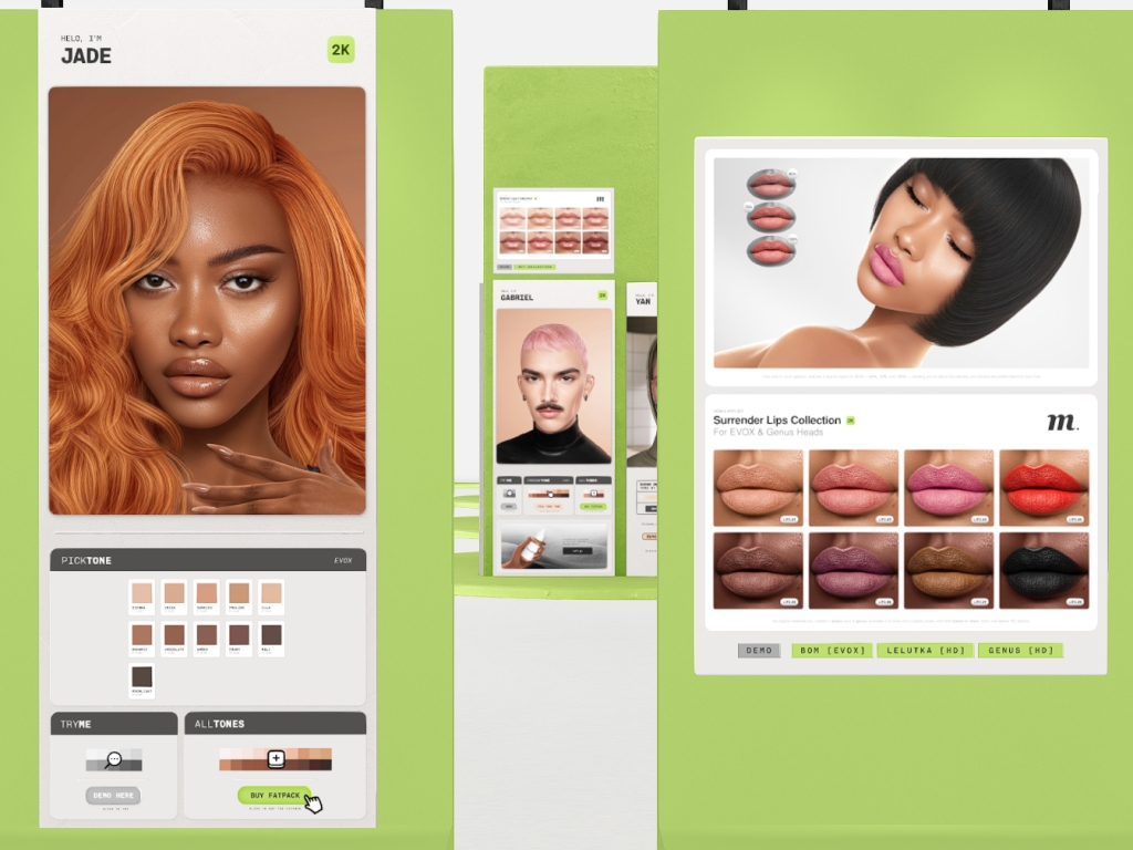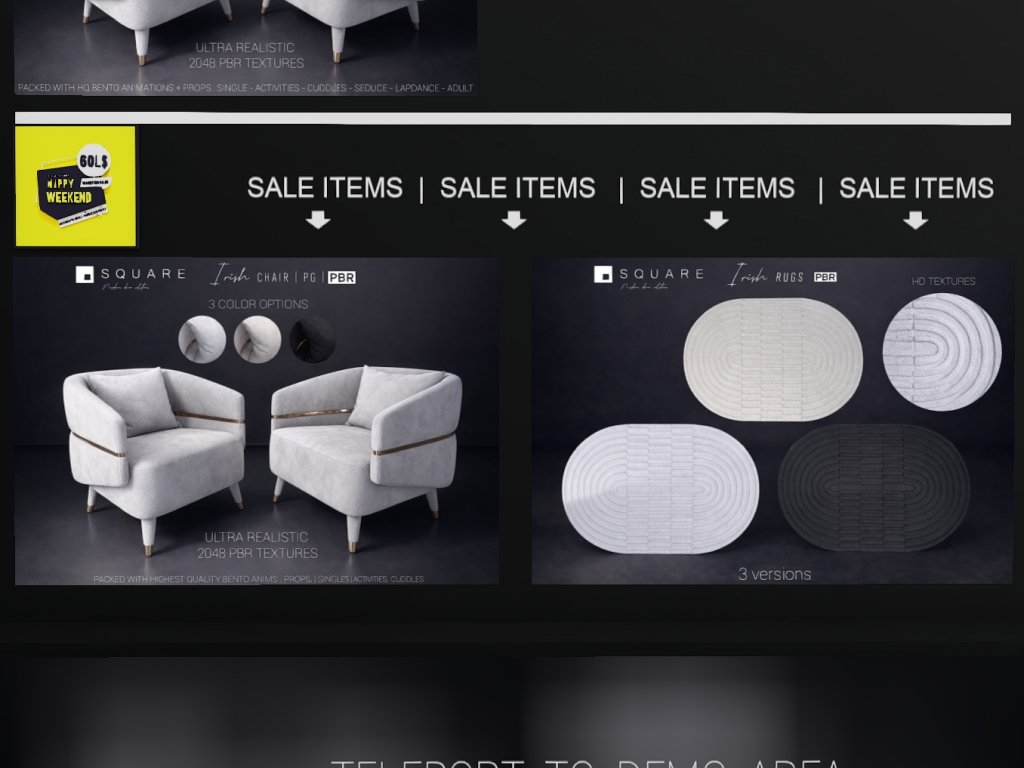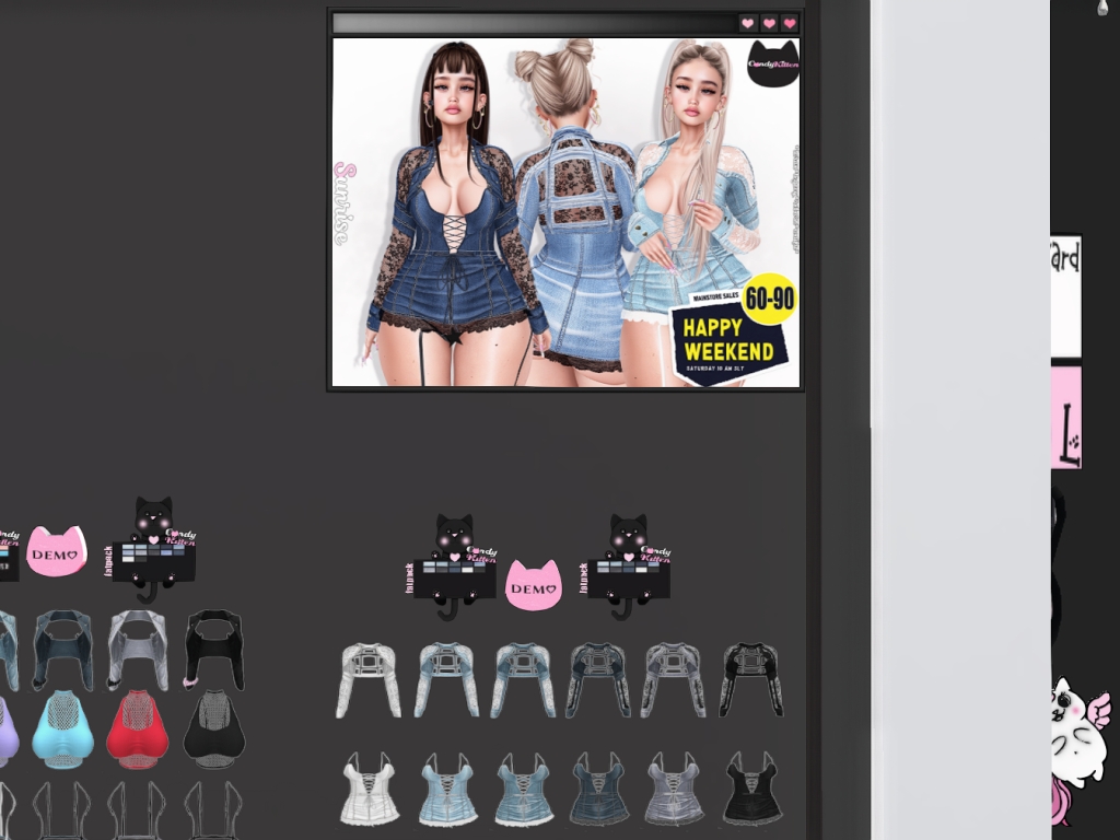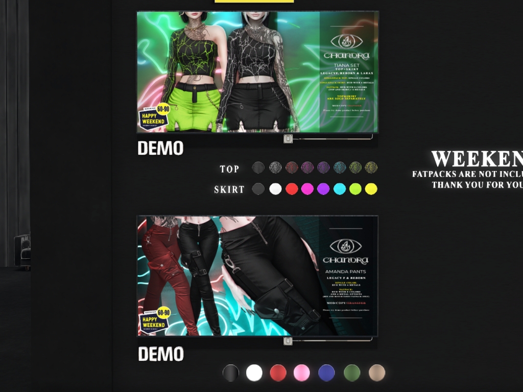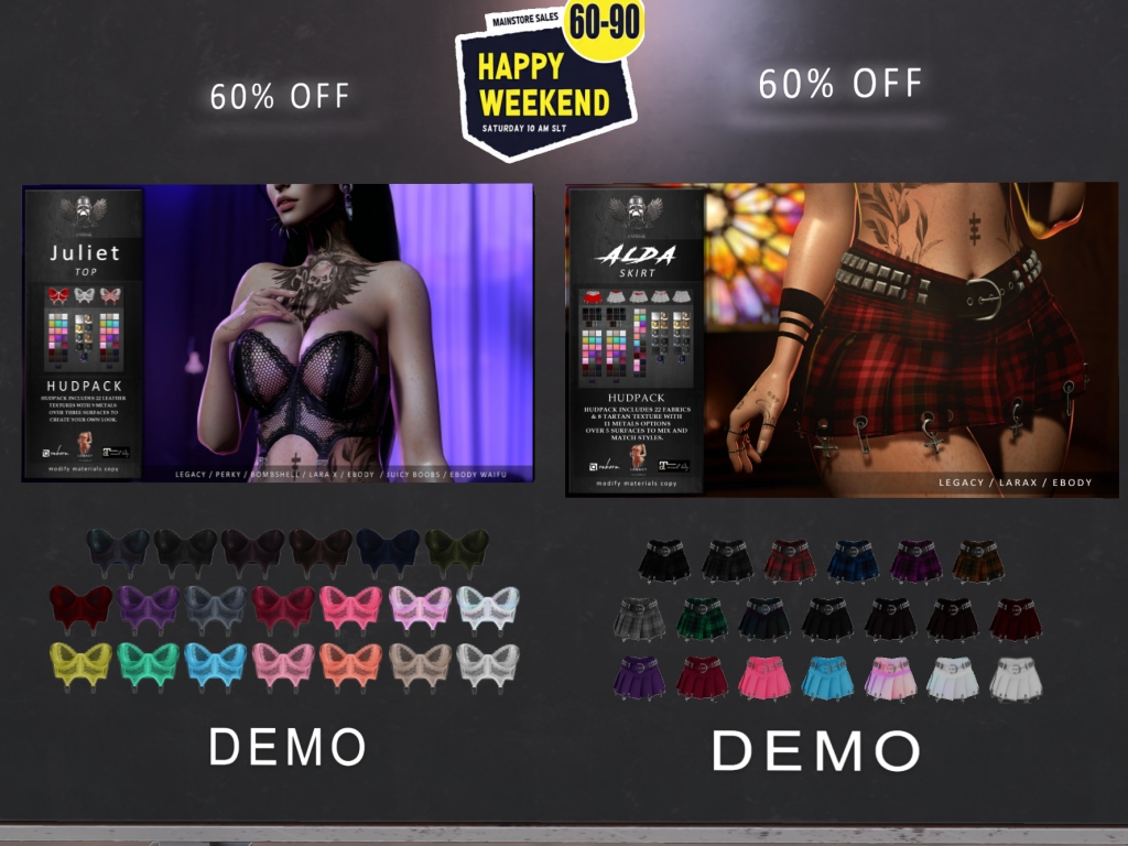 Featuring: Accessories, Animations/Poses/Props, Appliers/Cosmetics/Nails, Avatar Components, Builds, Clothing, Footwear, Hairs, Home and Garden, Shapes, Skins, Tattoos, Vehicles