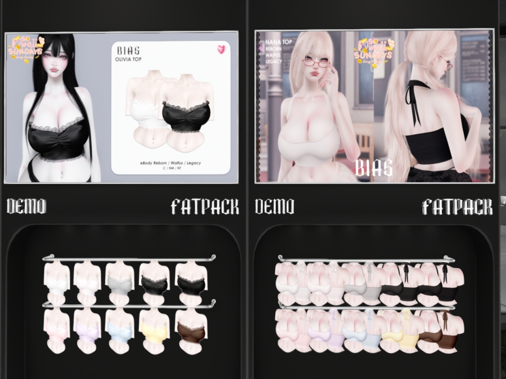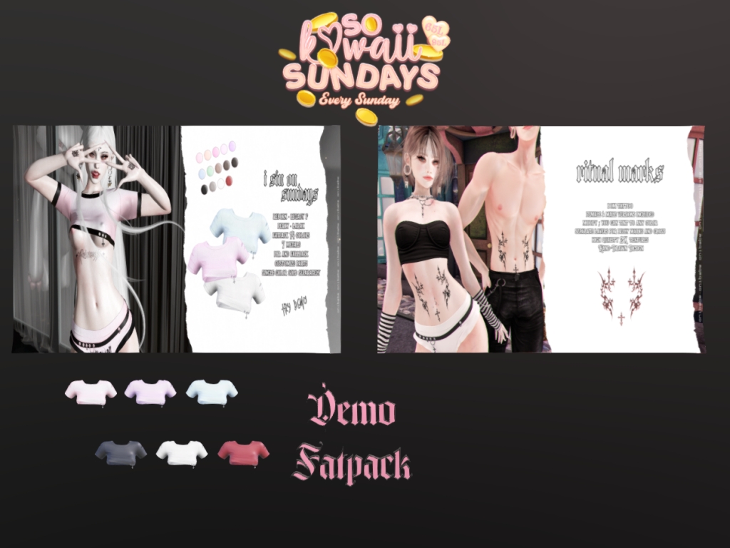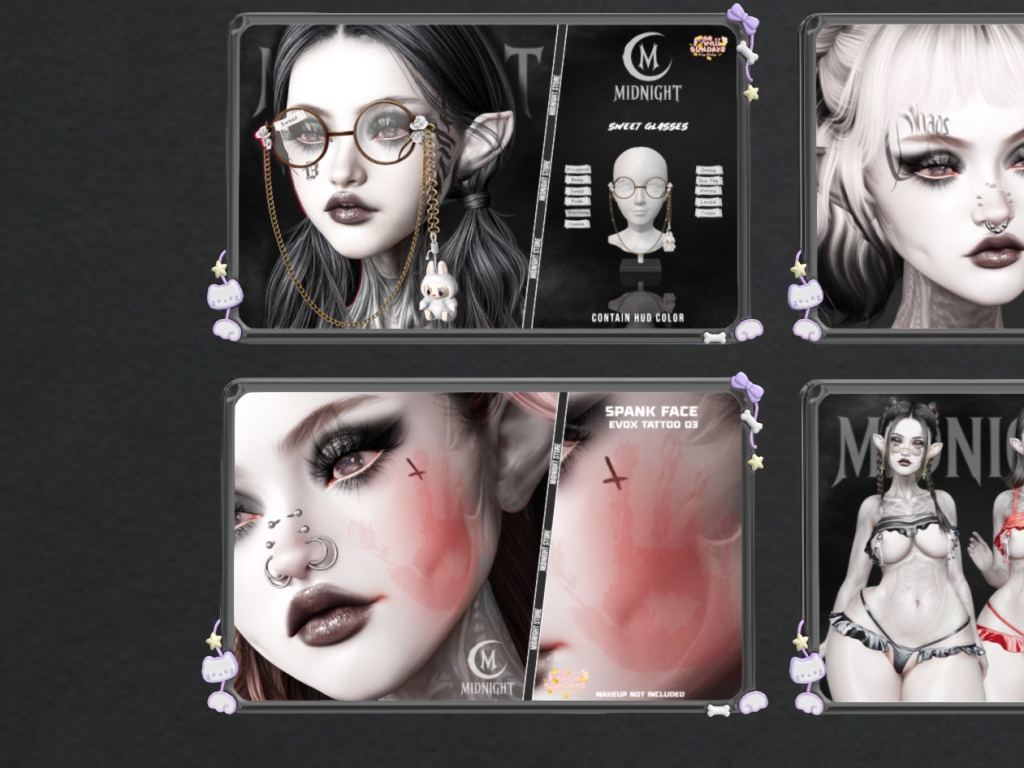Featuring: Accessories, Animations/Poses/Props, Appliers/Cosmetics/Nails, Avatar Components, Avatar Enhancements, Builds, Clothing, Footwear, Home and Garden, Shapes, Skins, Tattoos