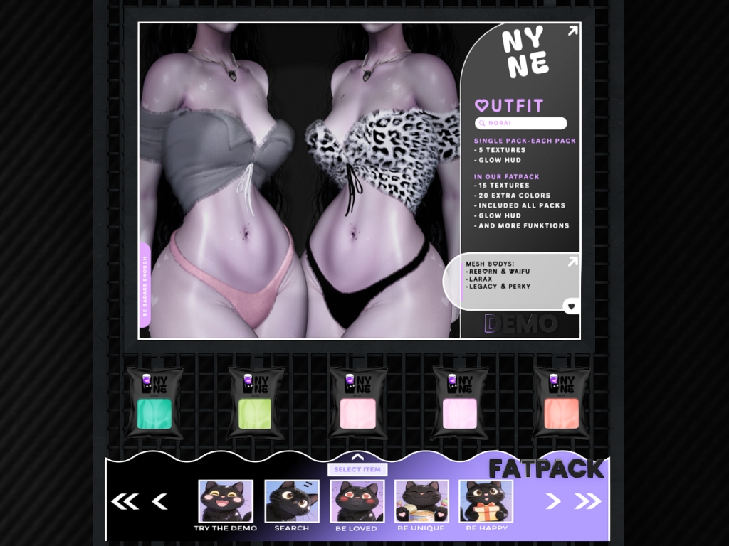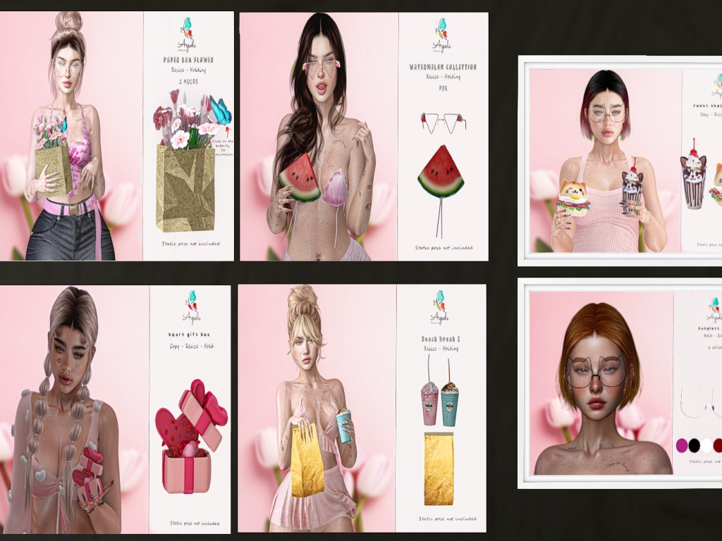 Featuring: Accessories, Animals/Pets/Companions, Animations/Poses/Props, Appliers/Cosmetics/Nails, Avatar Enhancements, Builds, Clothing, Developer Tools, Footwear, Home and Garden, Tattoos