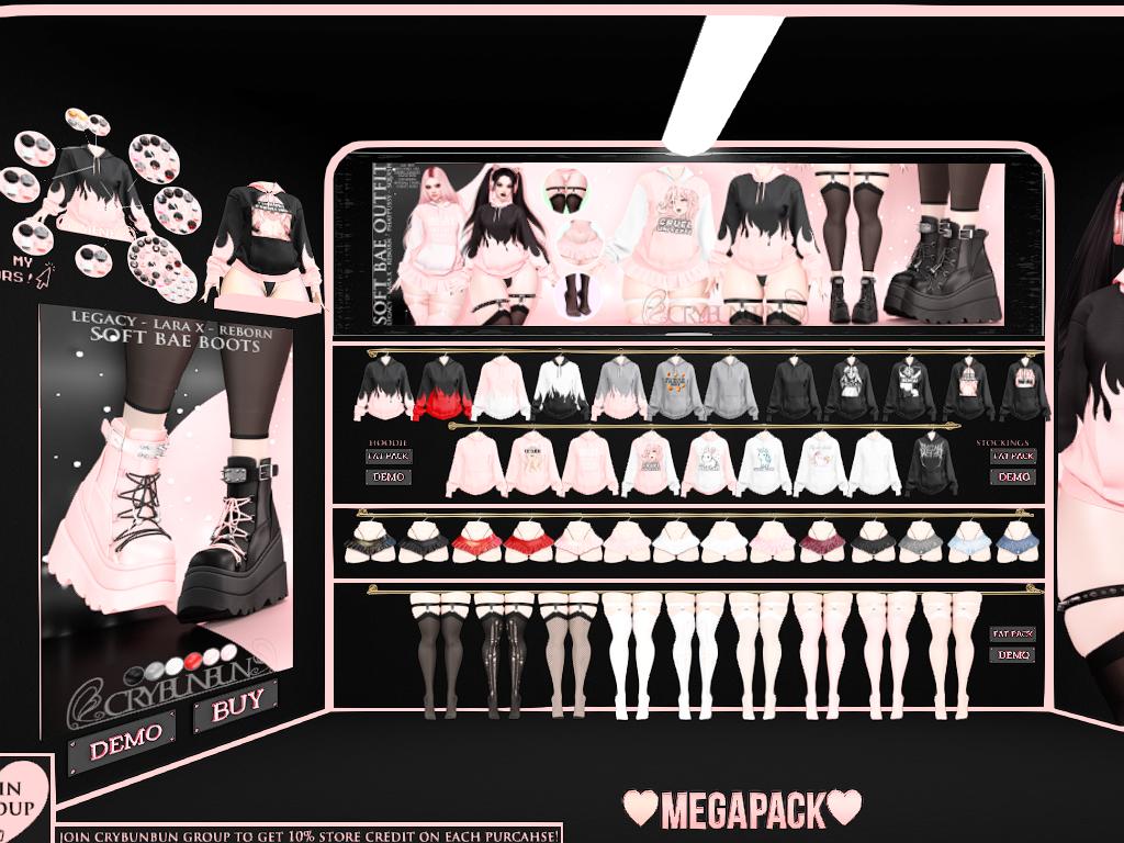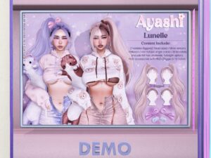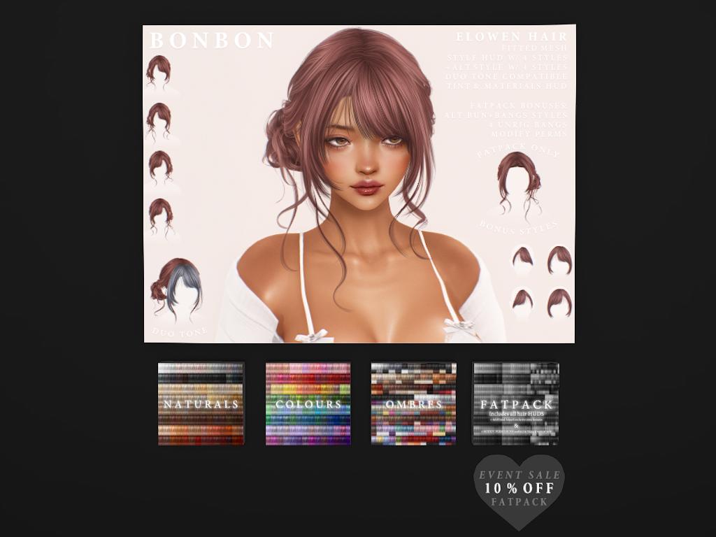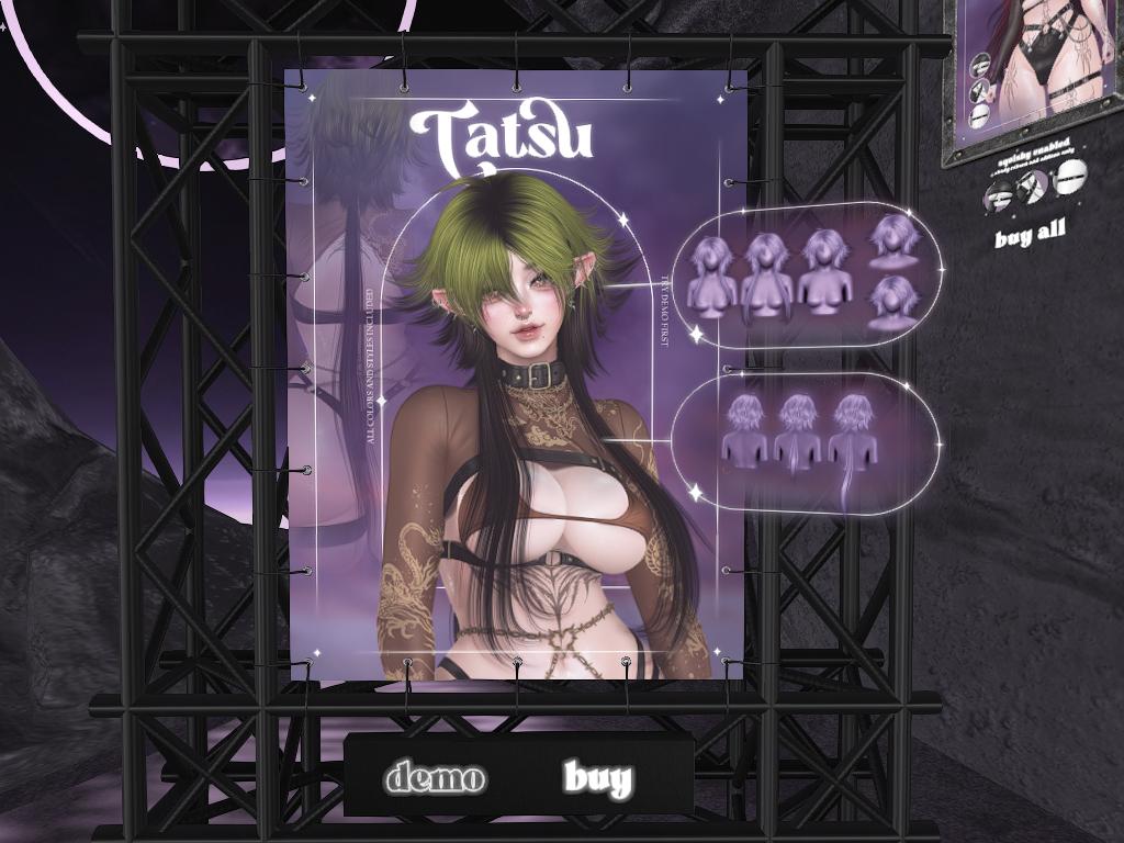 Featuring: Accessories, Animals/Pets/Companions, Animations/Poses/Props, Appliers/Cosmetics/Nails, Avatar Enhancements, Builds, Clothing, Footwear, Hairs, Home and Garden, HUDs, Skins, Tattoos, Textures, Tools