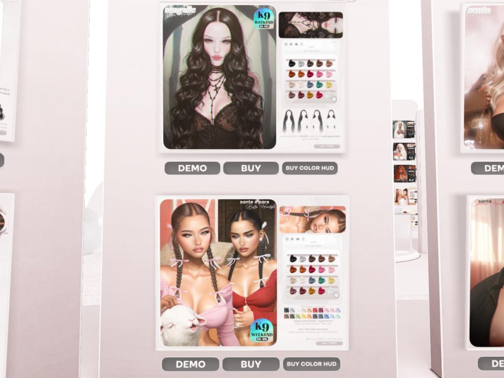Featuring: Accessories, Animations/Poses/Props, Avatar Enhancements, Builds, Clothing, Hairs, Home and Garden, Skins, Vehicles