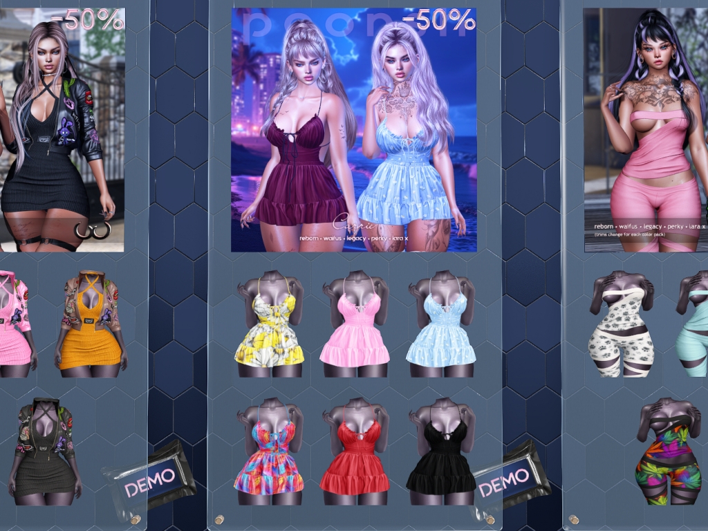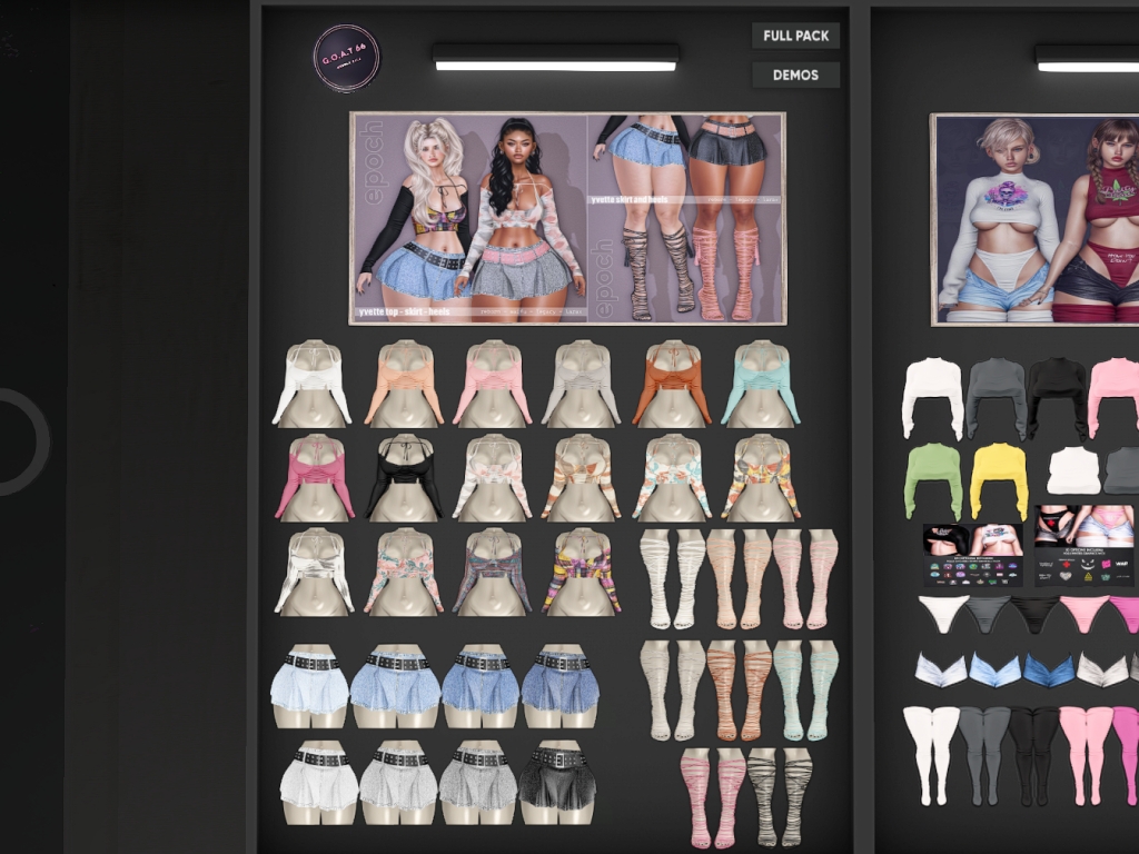 Featuring: Accessories, Animals/Pets/Companions, Animations/Poses/Props, Appliers/Cosmetics/Nails, Avatar Enhancements, Builds, Clothing, Developer Tools, Footwear, Home and Garden, Skins, Tattoos
