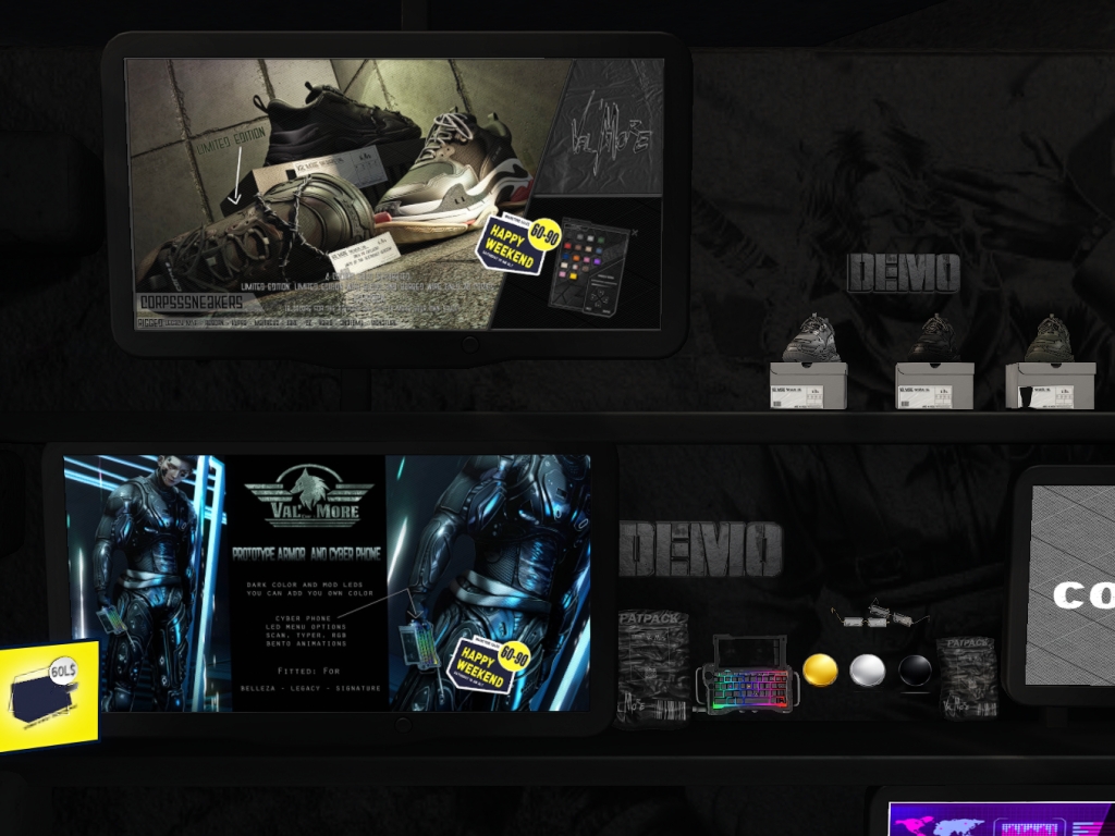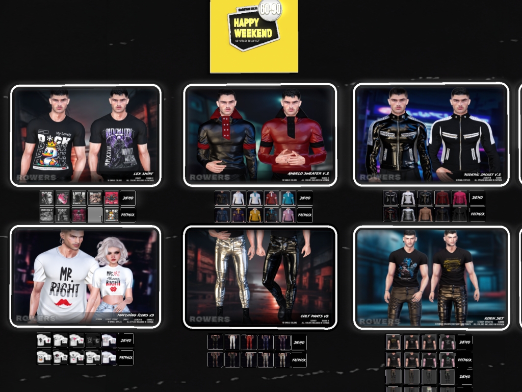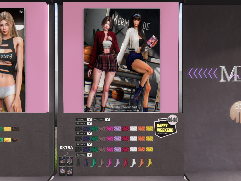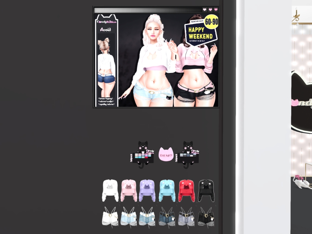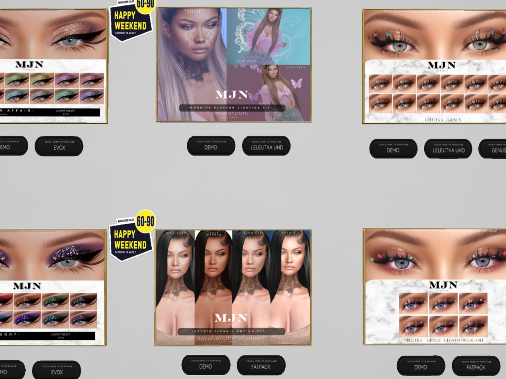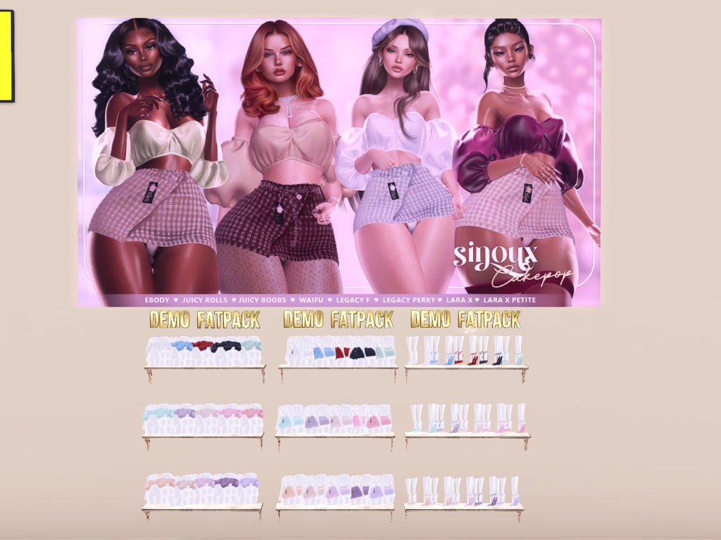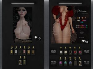 Featuring: Accessories, Animals/Pets/Companions, Animations/Poses/Props, Appliers/Cosmetics/Nails, Avatar Components, Avatar Enhancements, Builds, Clothing, Footwear, Hairs, Home and Garden, HUDs, Shapes, Skins, Tattoos, Vehicles