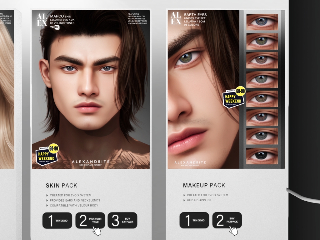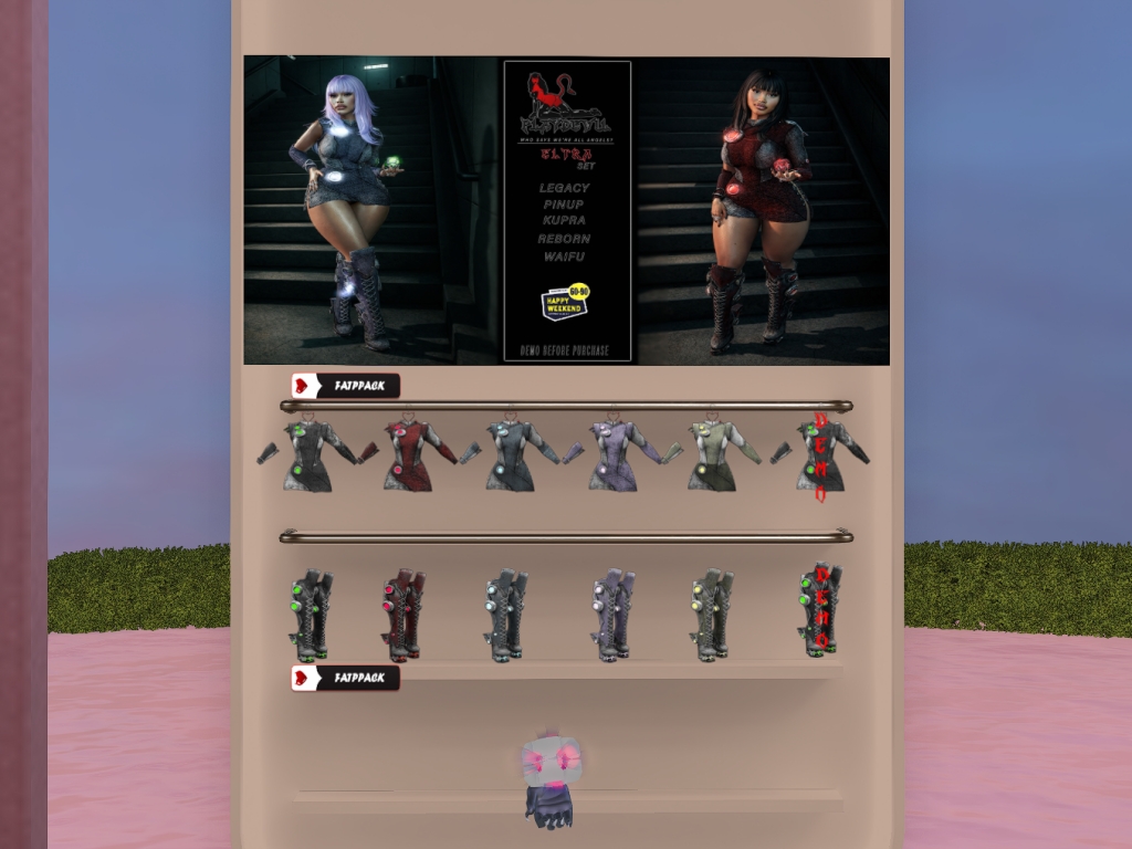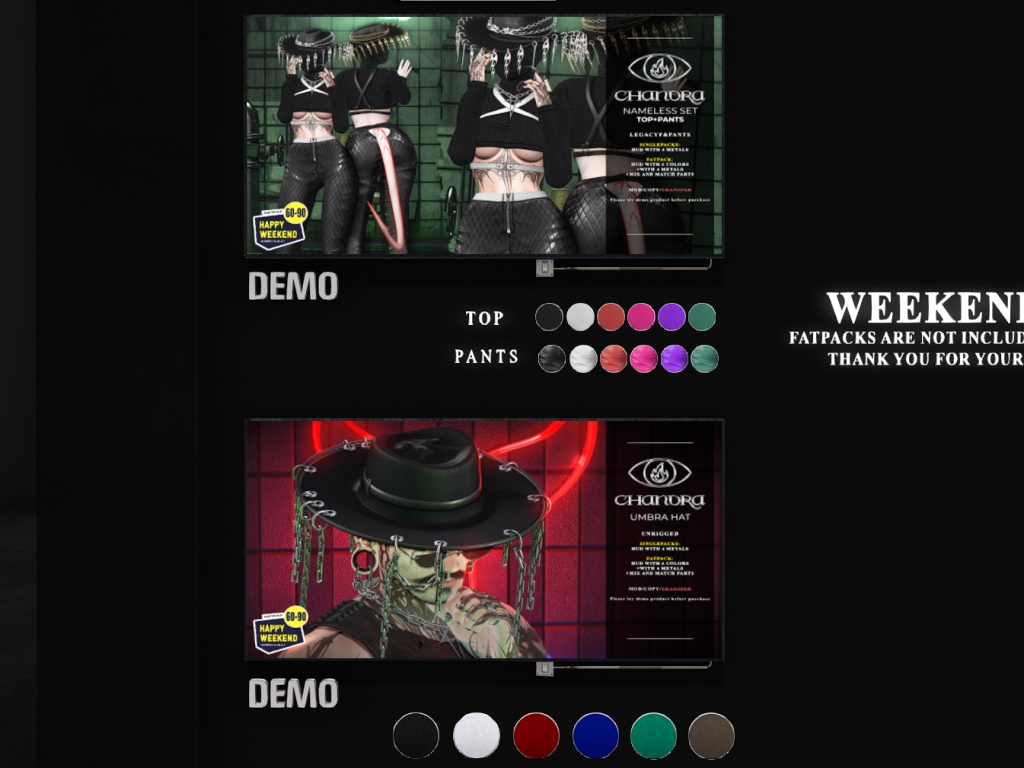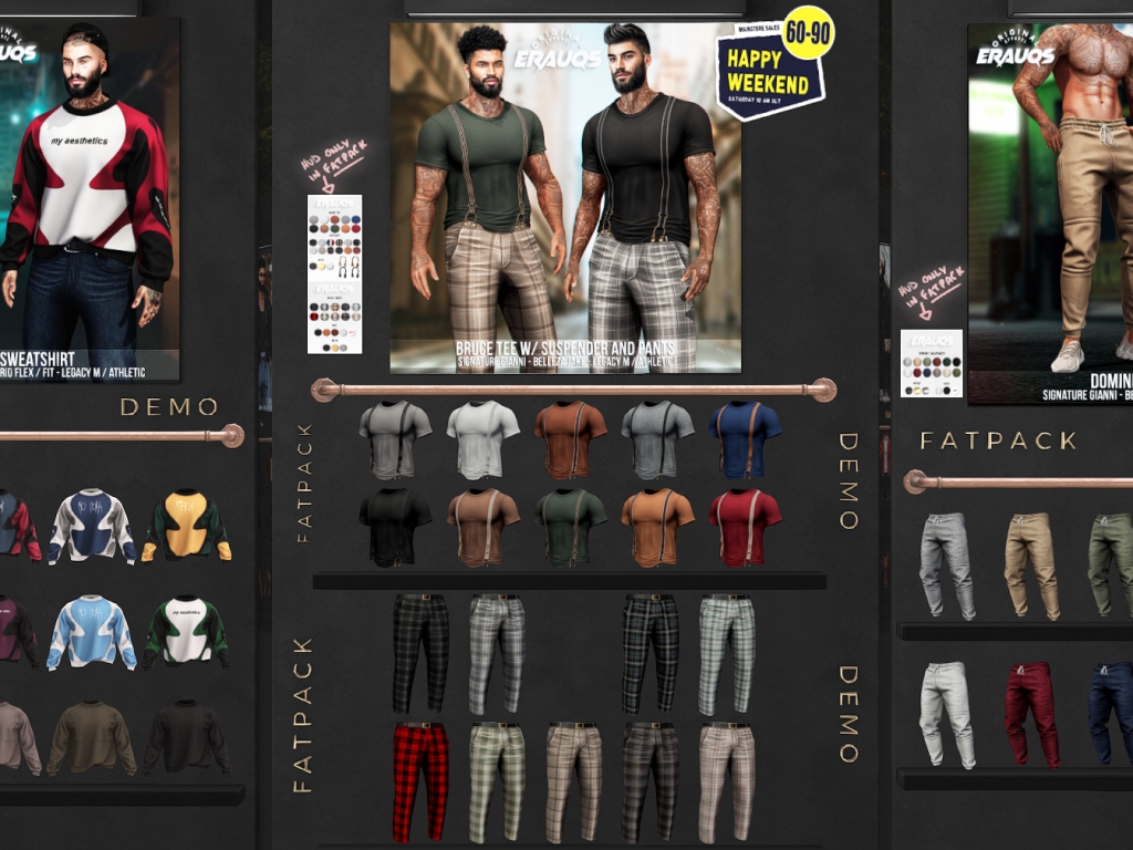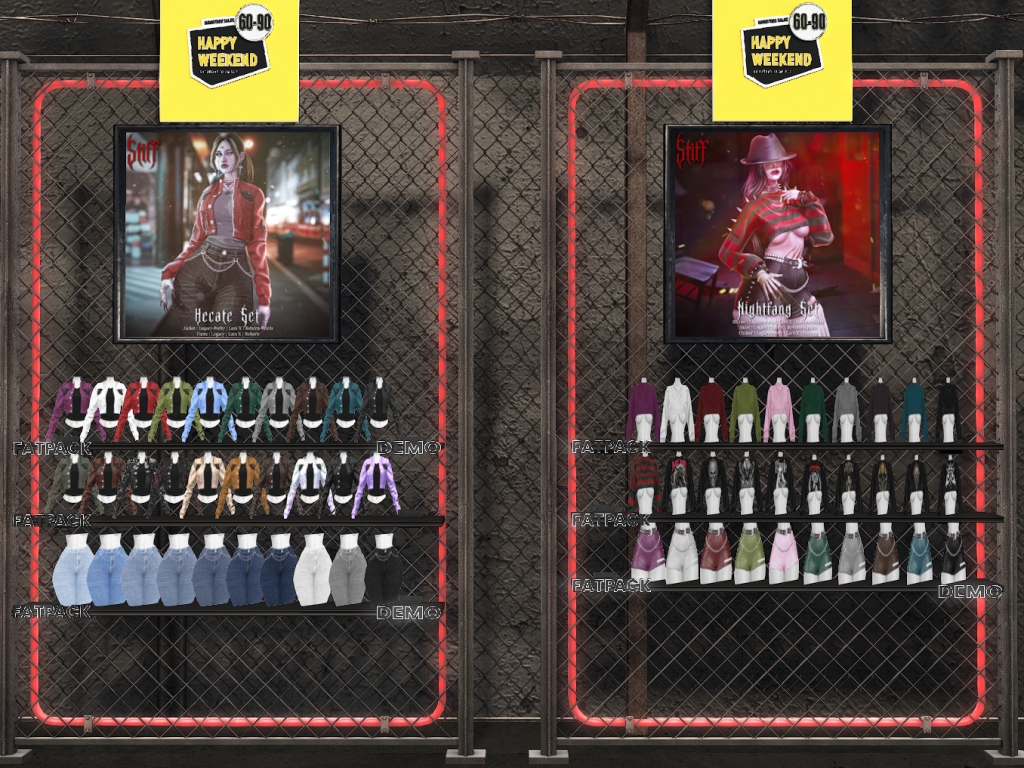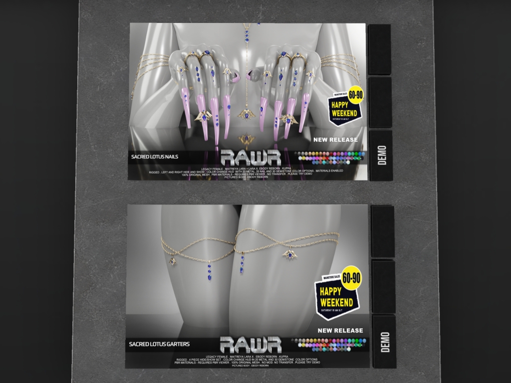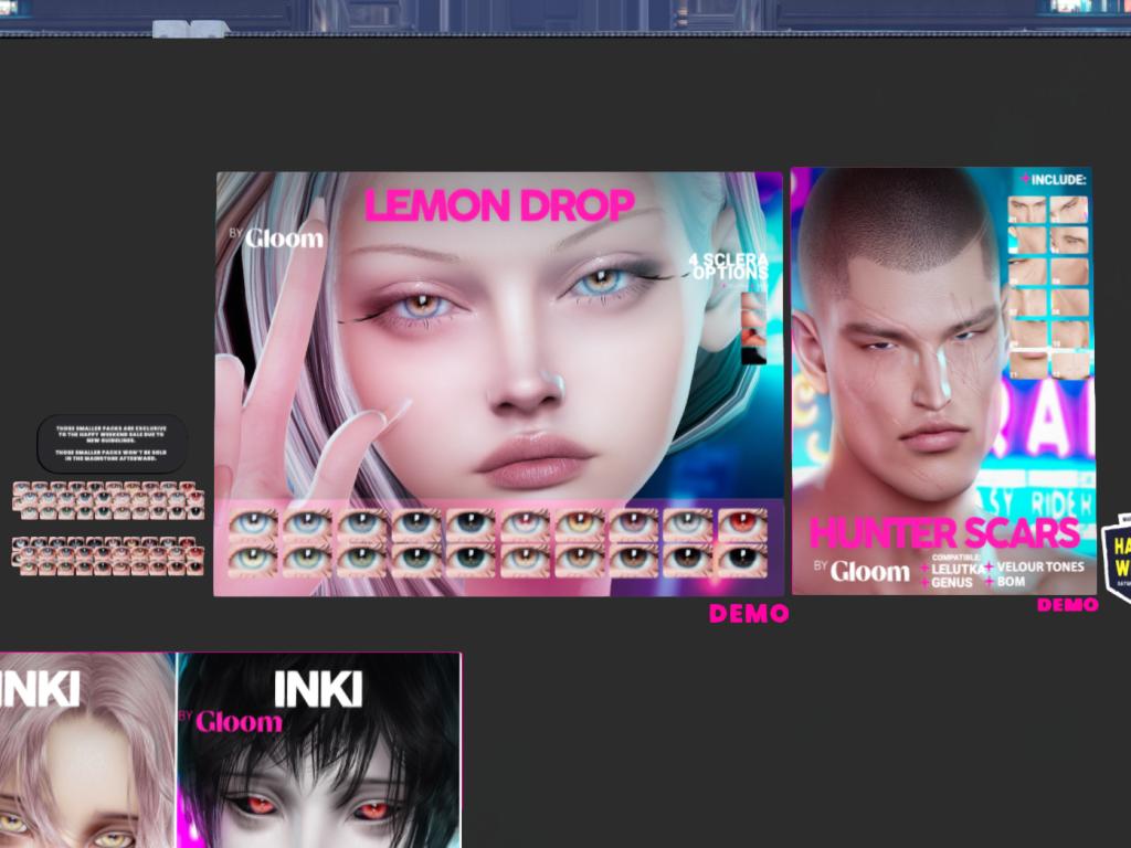 Featuring: Accessories, Animals/Pets/Companions, Animations/Poses/Props, Appliers/Cosmetics/Nails, Avatar Components, Avatar Enhancements, Builds, Clothing, Footwear, Hairs, Home and Garden, HUDs, Shapes, Skins, Tattoos, Vehicles