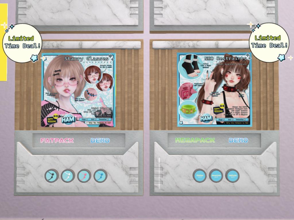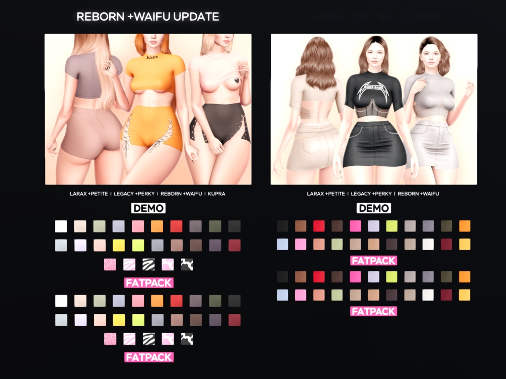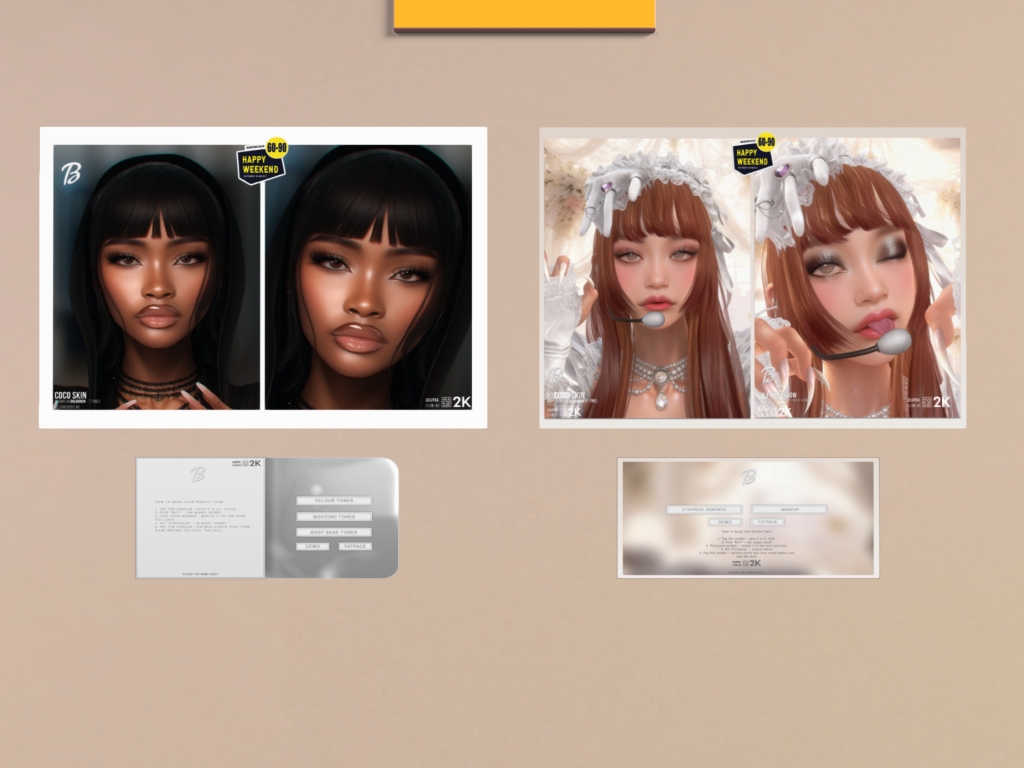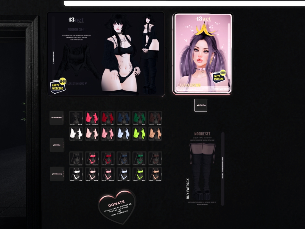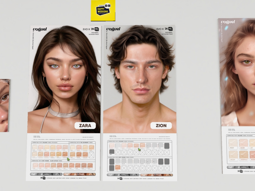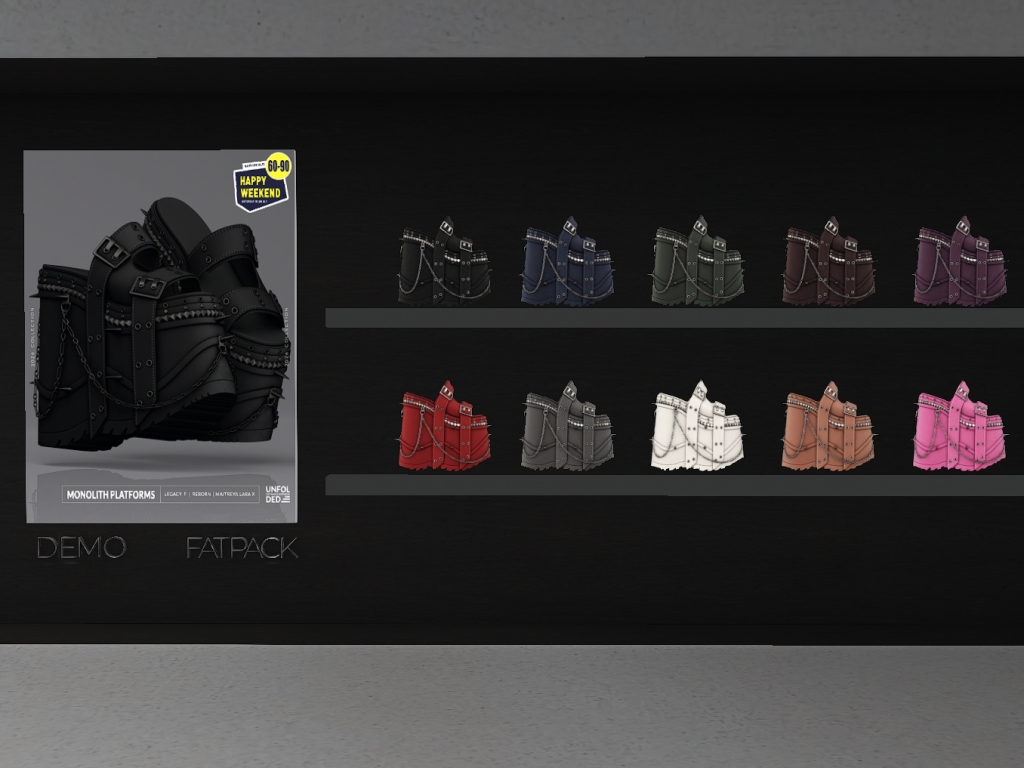Featuring: Accessories, Animals/Pets/Companions, Animations/Poses/Props, Appliers/Cosmetics/Nails, Avatar Components, Avatar Enhancements, Builds, Clothing, Footwear, Hairs, Home and Garden, HUDs, Shapes, Skins, Tattoos, Vehicles