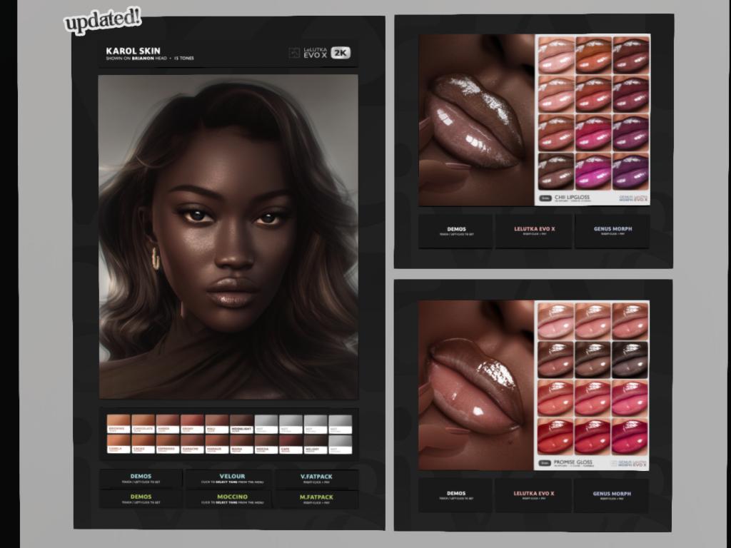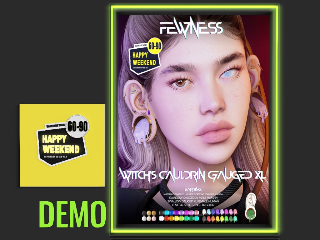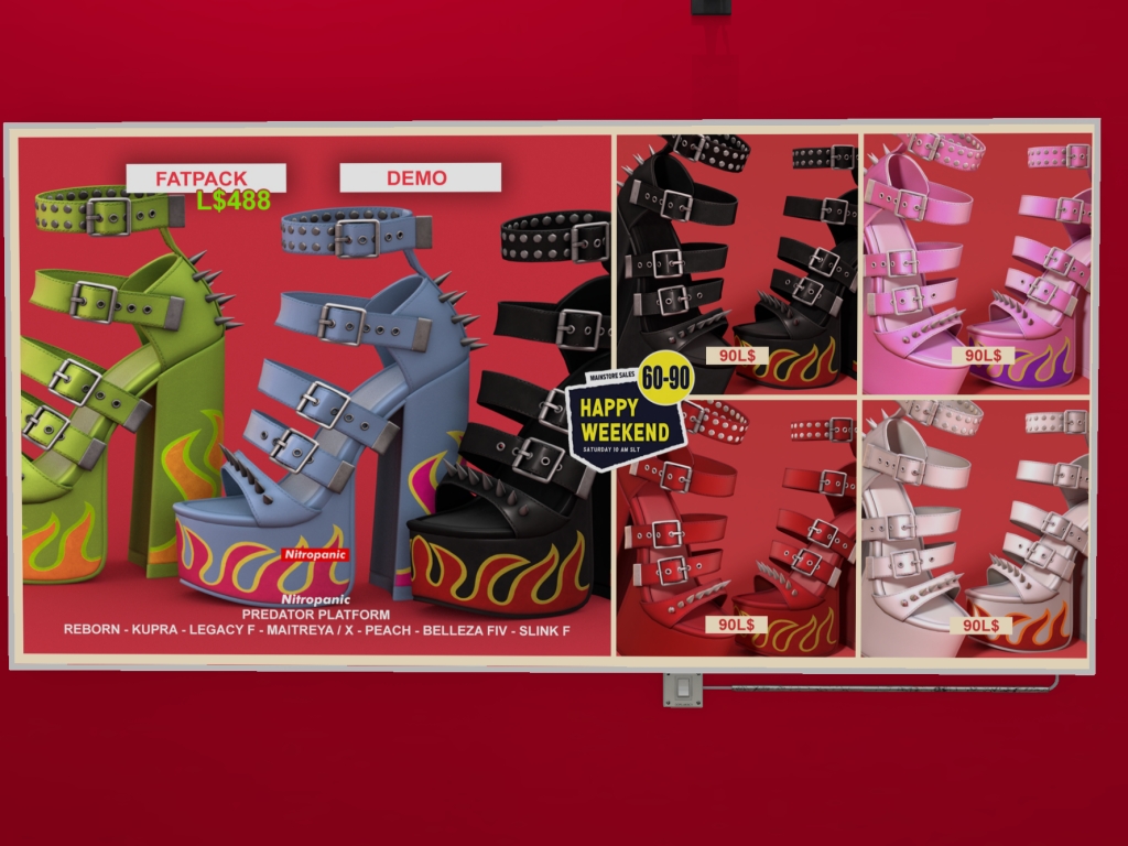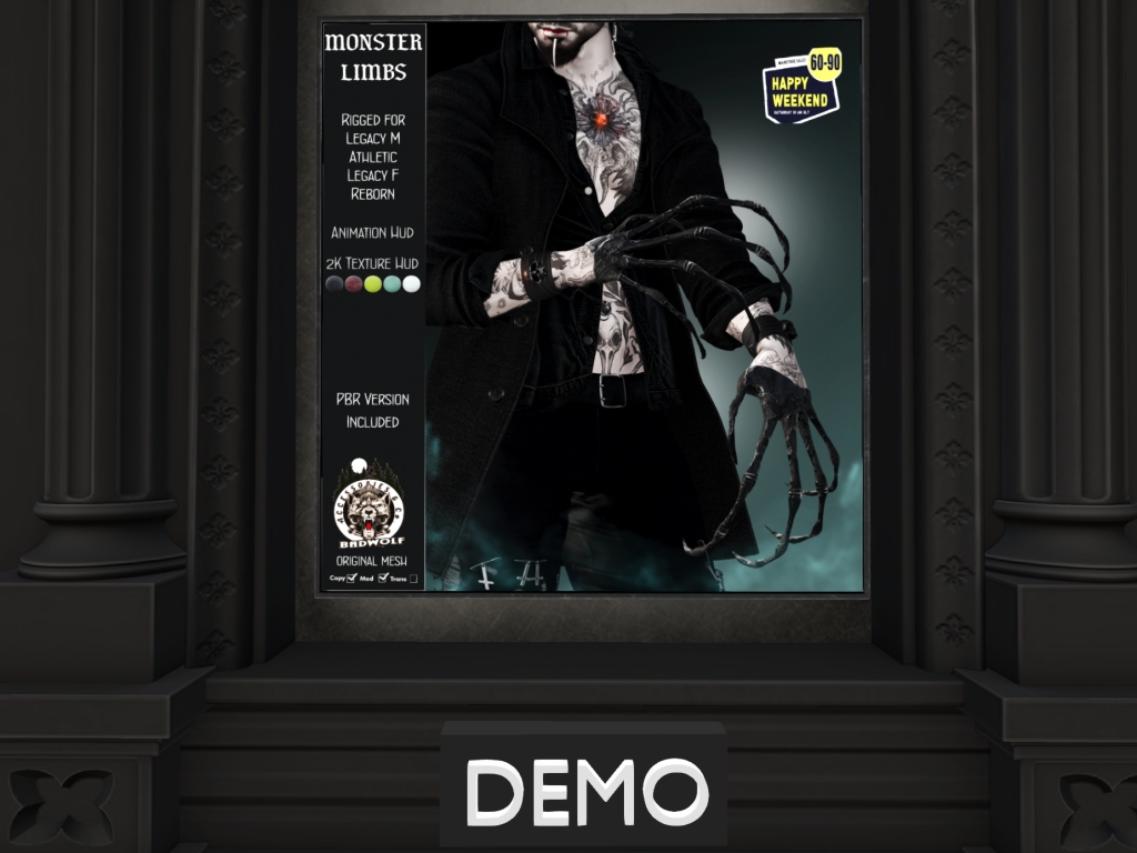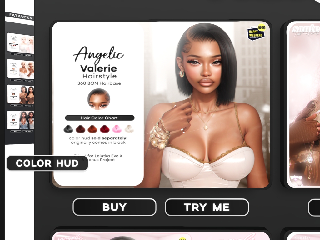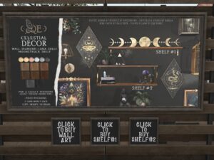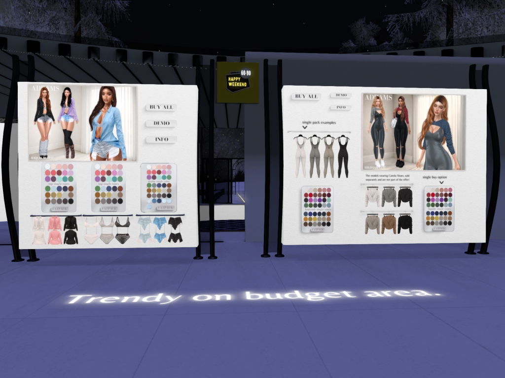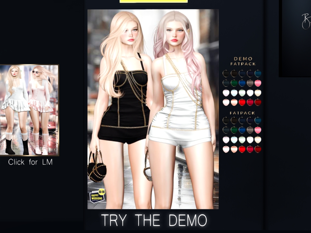 Featuring: Accessories, Animals/Pets/Companions, Animations/Poses/Props, Appliers/Cosmetics/Nails, Avatar Components, Avatar Enhancements, Builds, Clothing, Footwear, Hairs, Home and Garden, HUDs, Shapes, Skins, Tattoos, Vehicles