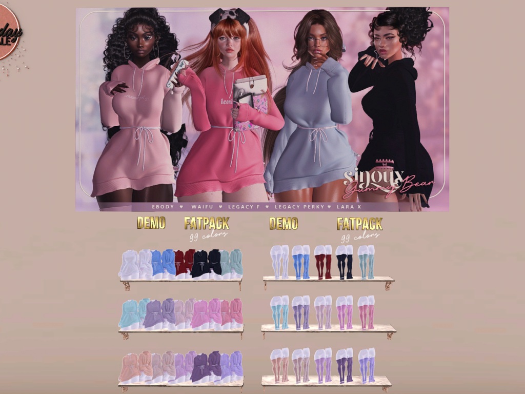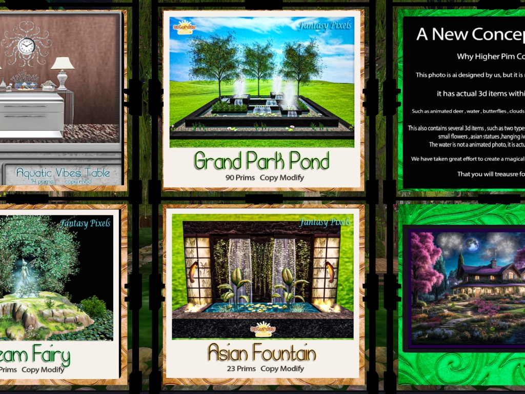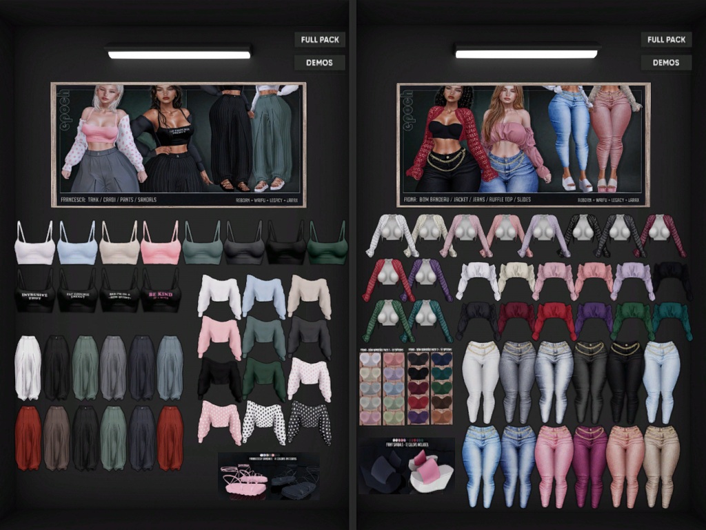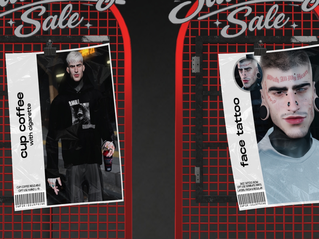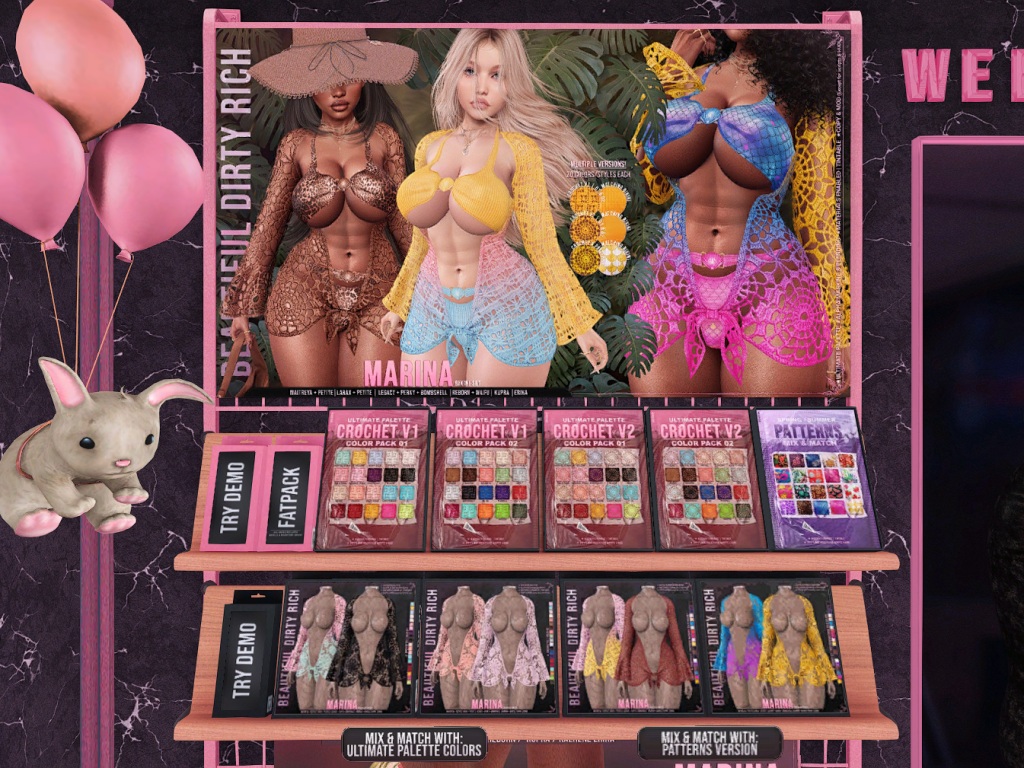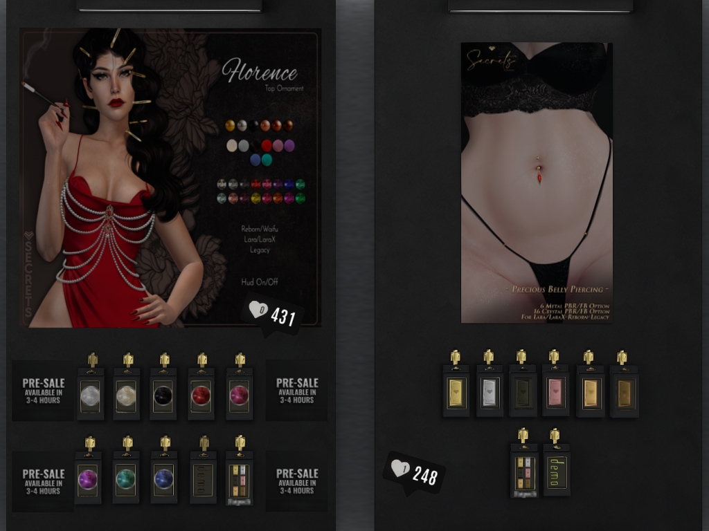 Featuring: Accessories, Animations/Poses/Props, Appliers/Cosmetics/Nails, Avatar Components, Avatar Enhancements, Builds, Clothing, Hairs, Home and Garden, Skins, Tattoos, Vehicles