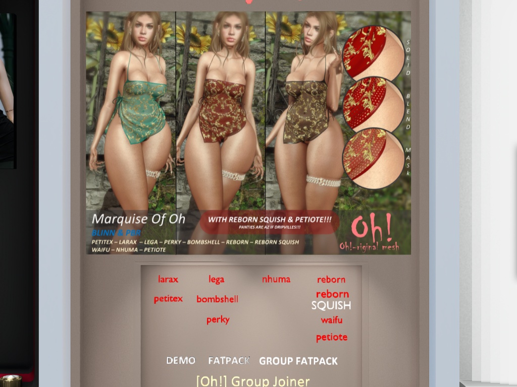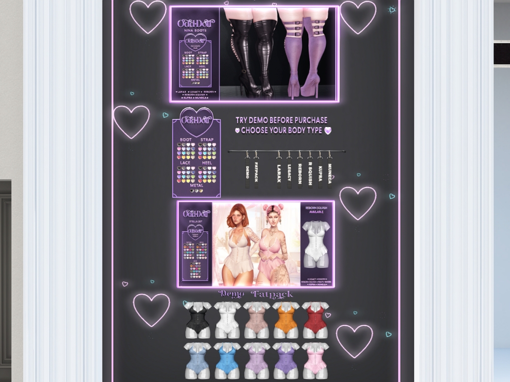 Featuring: Accessories, Animations/Poses/Props, Appliers/Cosmetics/Nails, Avatar Components, Avatar Enhancements, Clothing, Footwear, Hairs, Home and Garden, HUDs, Shapes, Skins, Tattoos, Tools, Vehicles