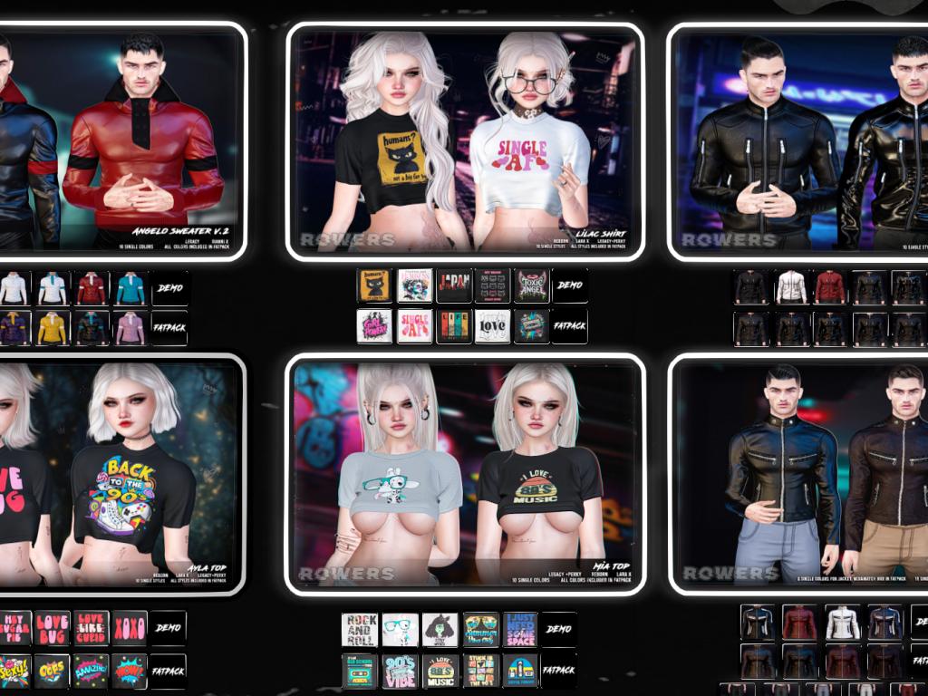 Featuring: Accessories, Animations/Poses/Props, Avatar Components, Avatar Enhancements, Clothing, Cosmetics/Nails, Footwear, Home and Garden, Skins, Tattoos, Vehicles
