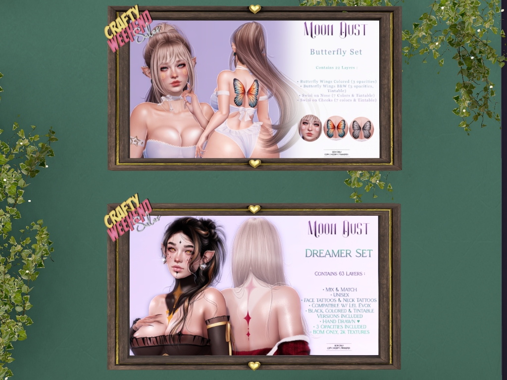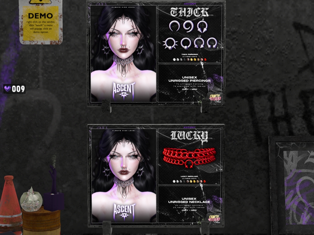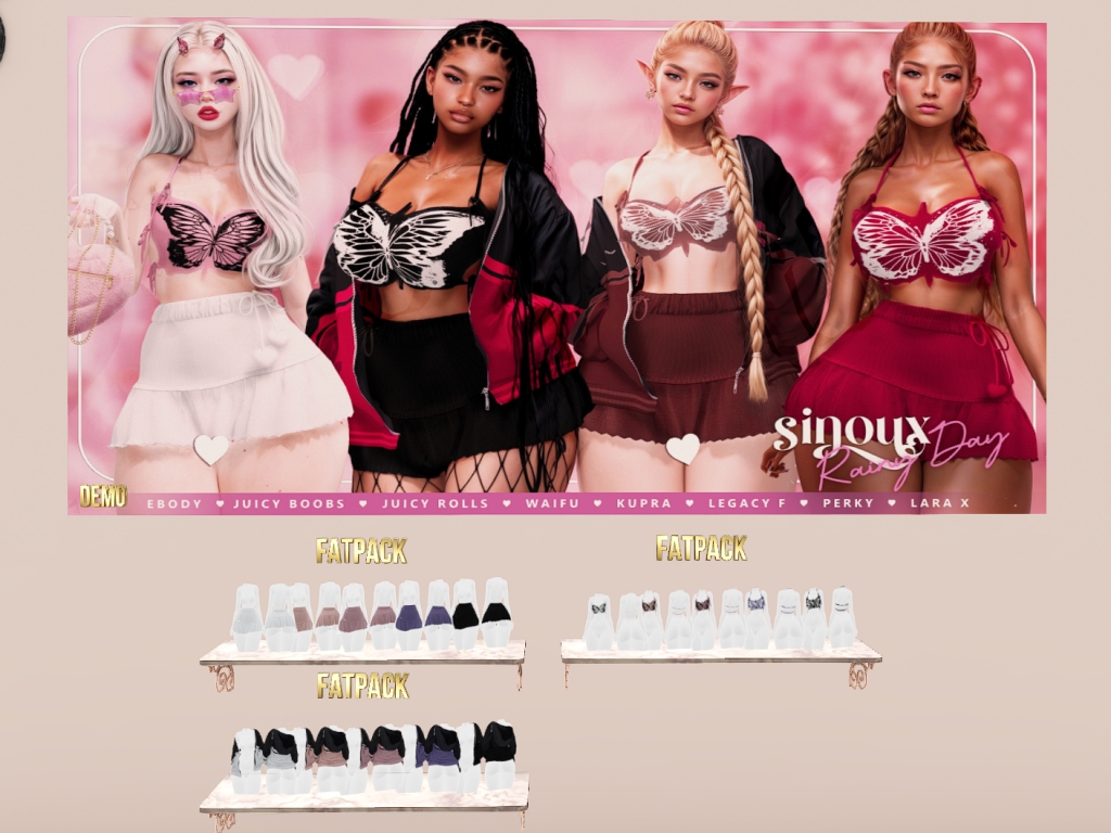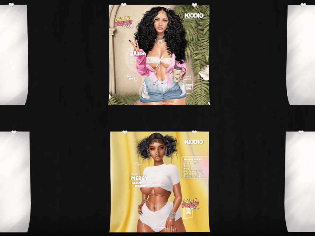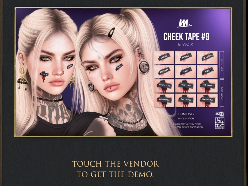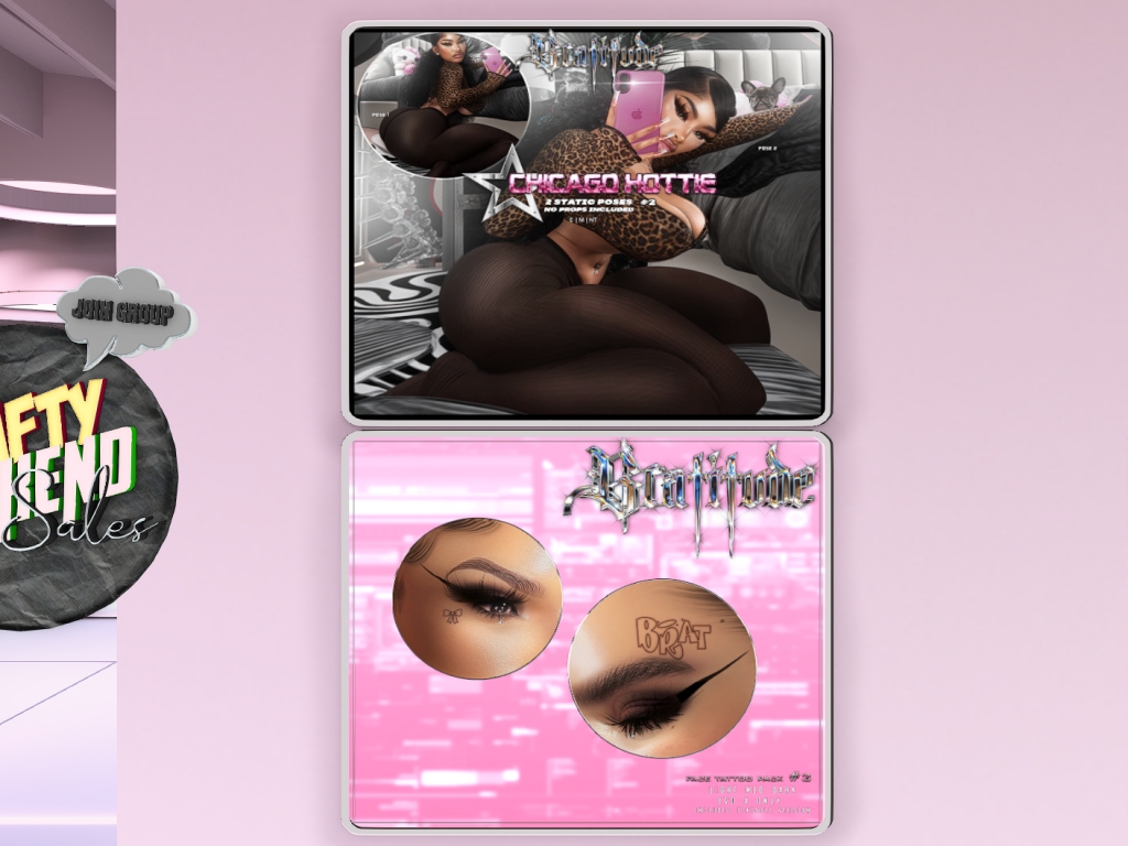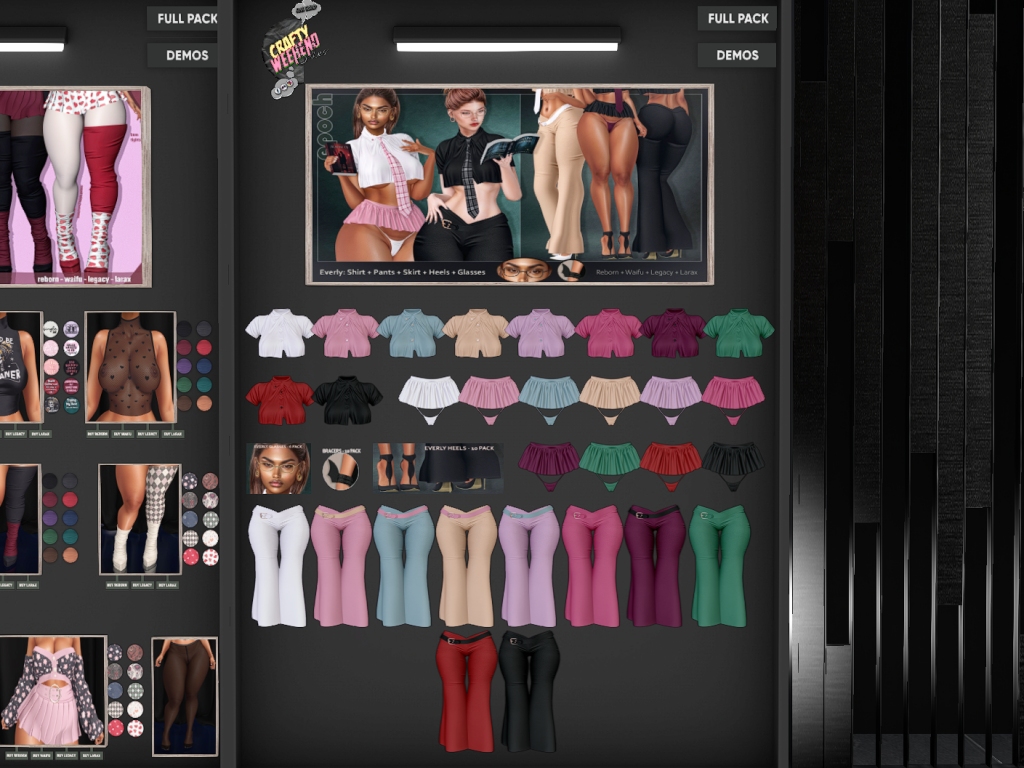 Featuring: Accessories, Animations/Poses/Props, Appliers/Cosmetics/Nails, Avatar Components, Avatar Enhancements, Builds, Clothing, Footwear, Hairs, Home and Garden, Skins, Tattoos, Vehicles