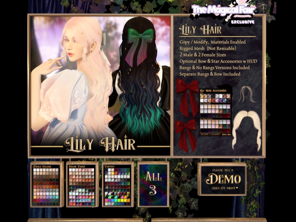 Featuring: Accessories, Animals/Pets/Companions, Appliers/Cosmetics/Nails, Avatar Components, Avatar Enhancements, Builds, Clothing, Footwear, Hairs, Home and Garden, Shapes, Skins