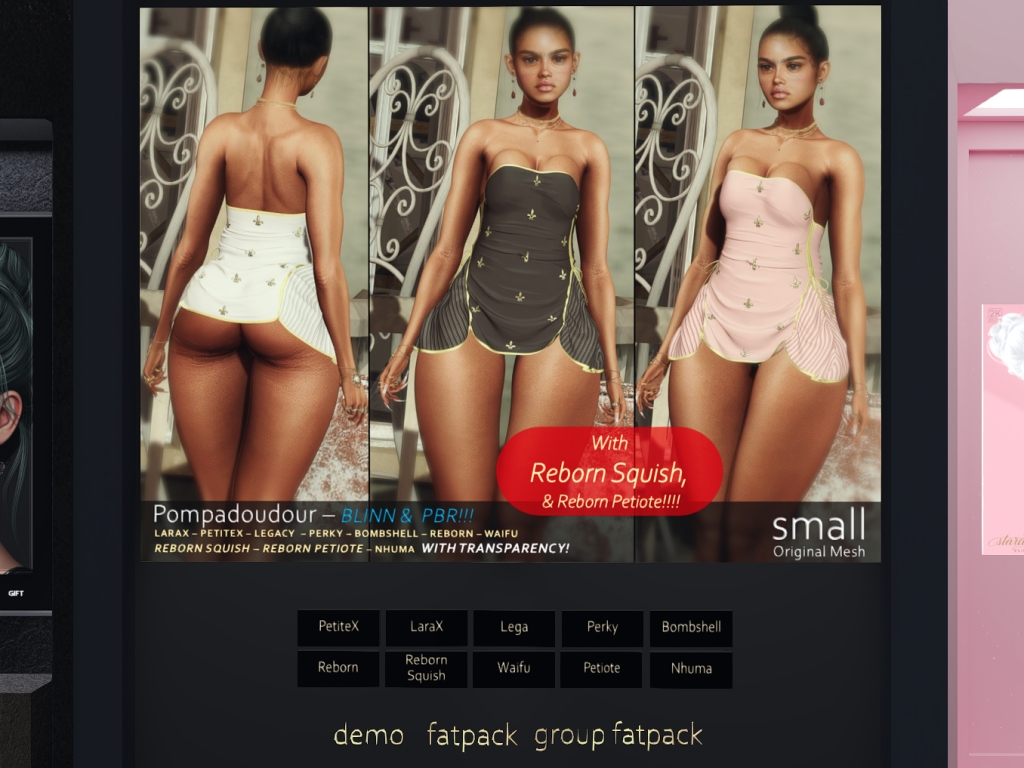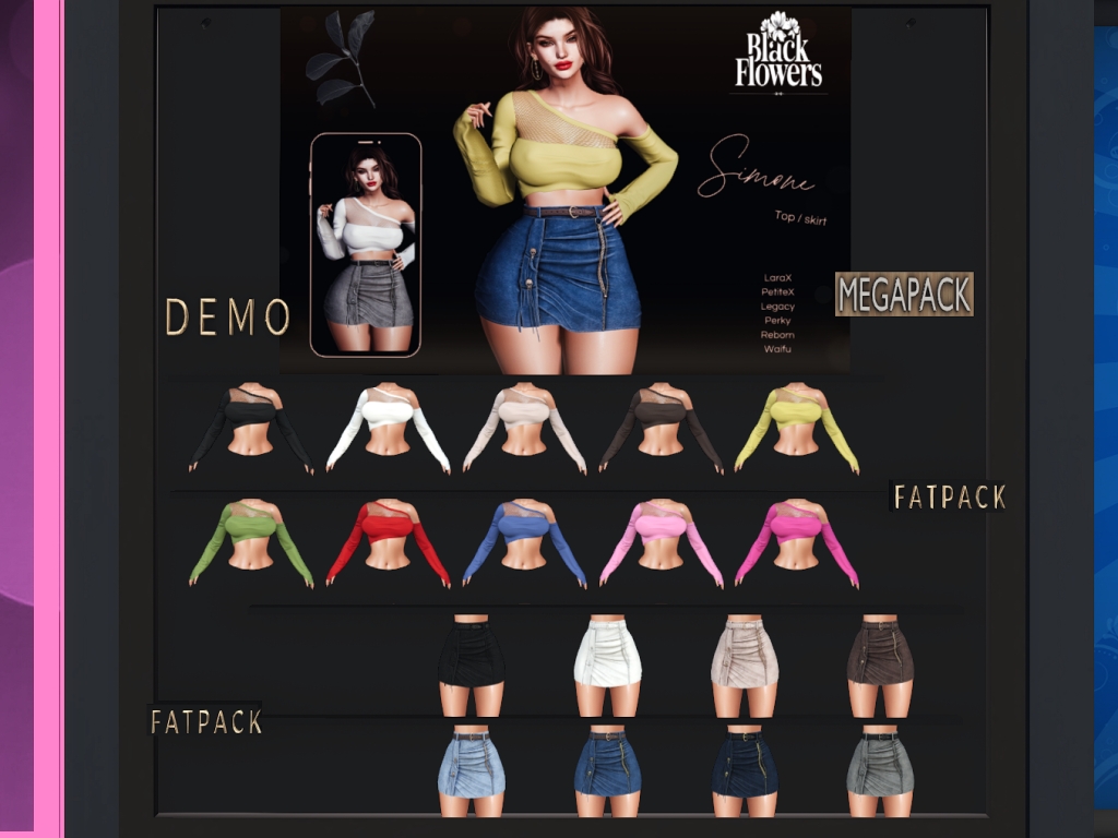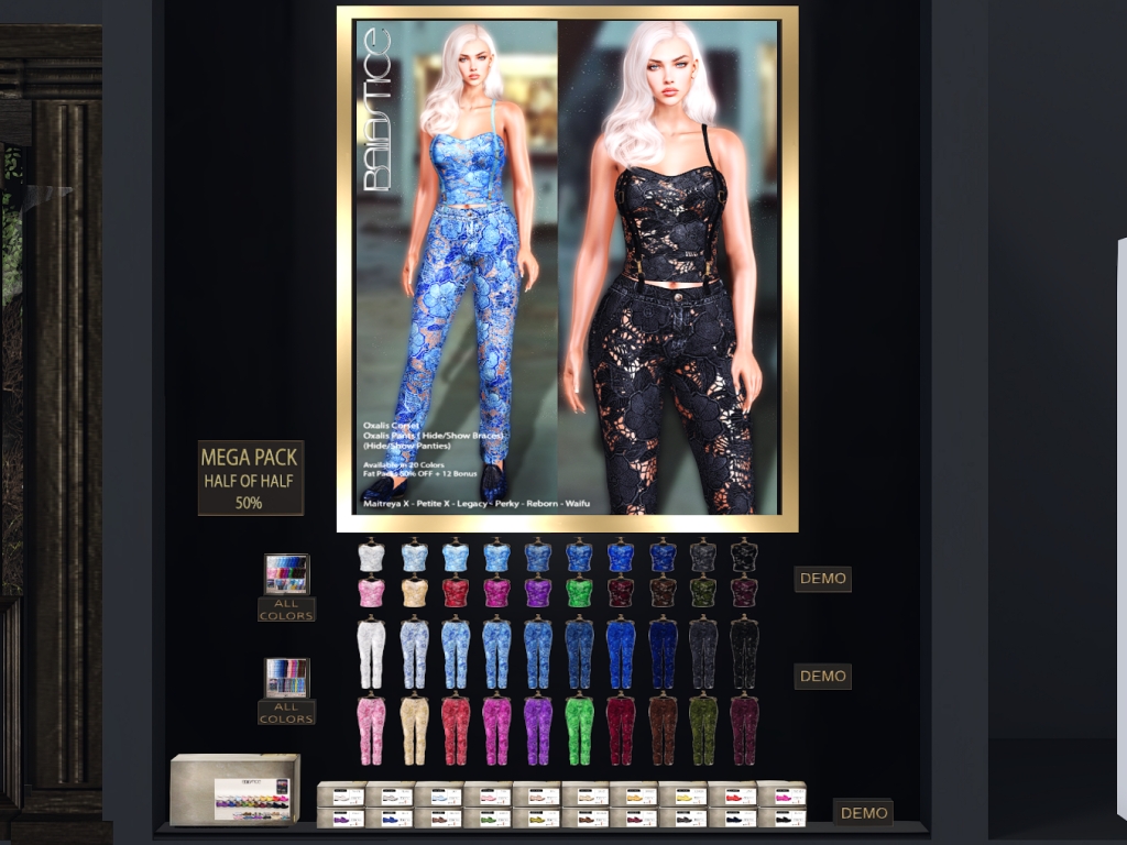 Featuring: Accessories, Animations/Poses/Props, Appliers/Cosmetics/Nails, Avatar Components, Avatar Enhancements, Builds, Clothing, Hairs, Home and Garden, Shapes, Skins, Tattoos