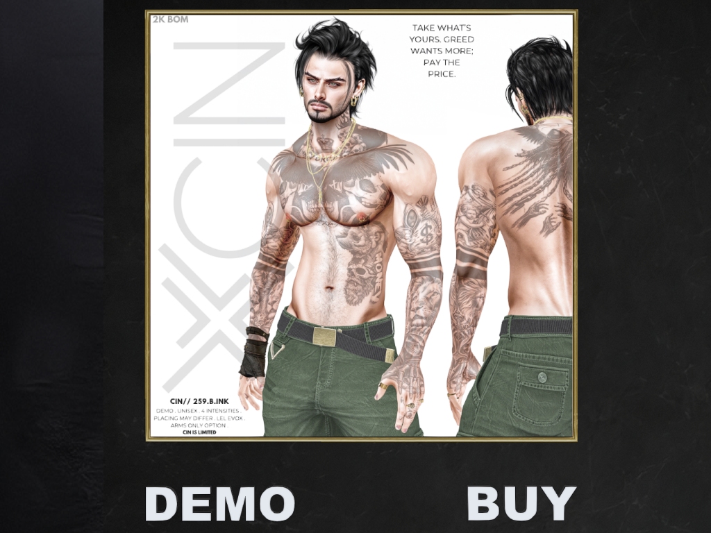 Featuring: Accessories, Animations/Poses/Props, Avatar Enhancements, Clothing, Footwear, Hairs, Shapes, Skins, Tattoos, Vehicles