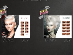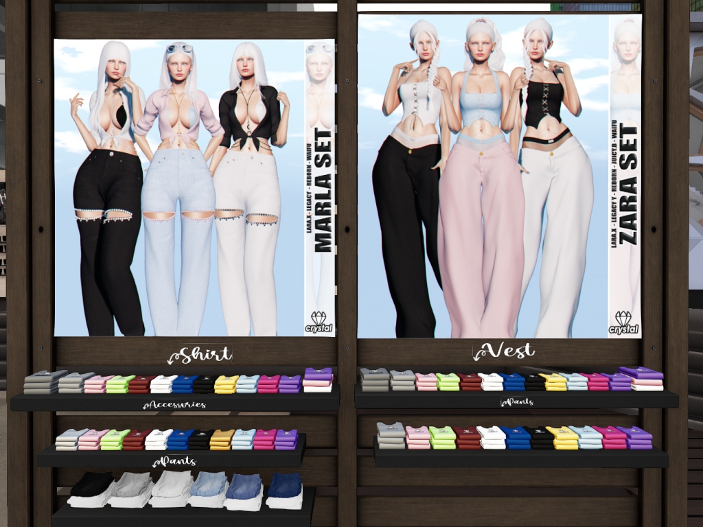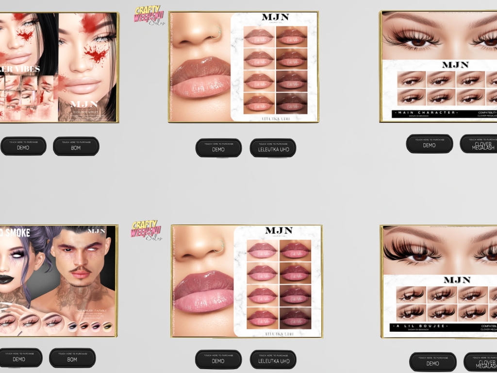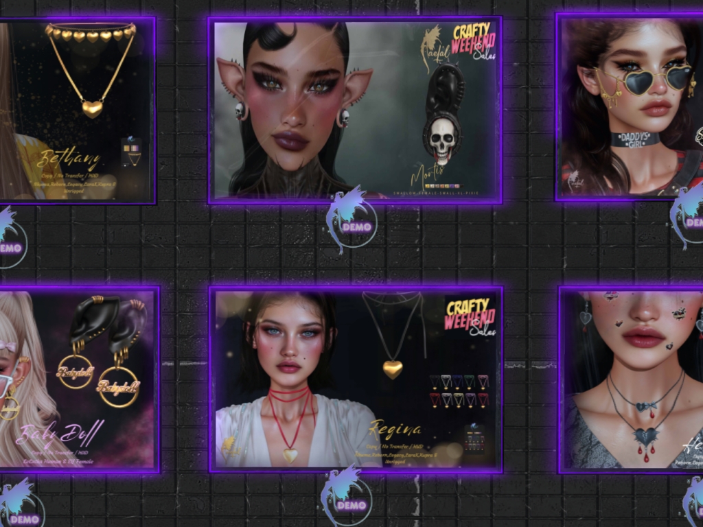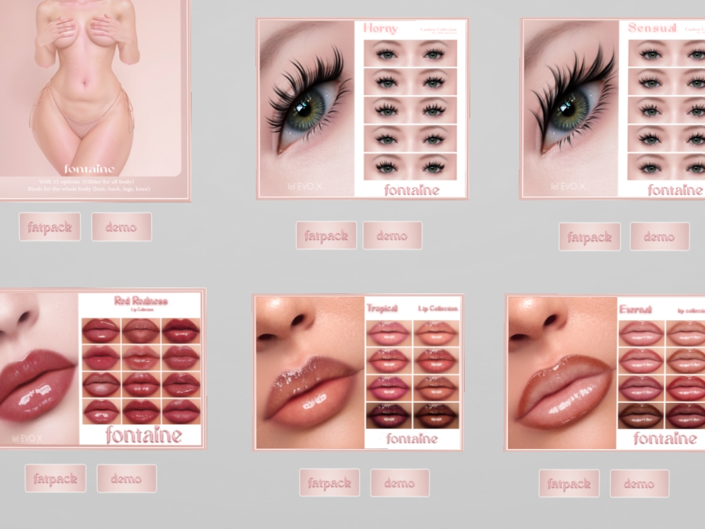Featuring: Accessories, Animations/Poses/Props, Appliers/Cosmetics/Nails, Avatar Components, Avatar Enhancements, Builds, Clothing, Footwear, Hairs, Home and Garden, Skins, Tattoos, Vehicles