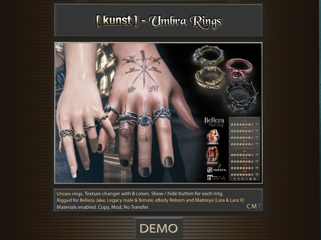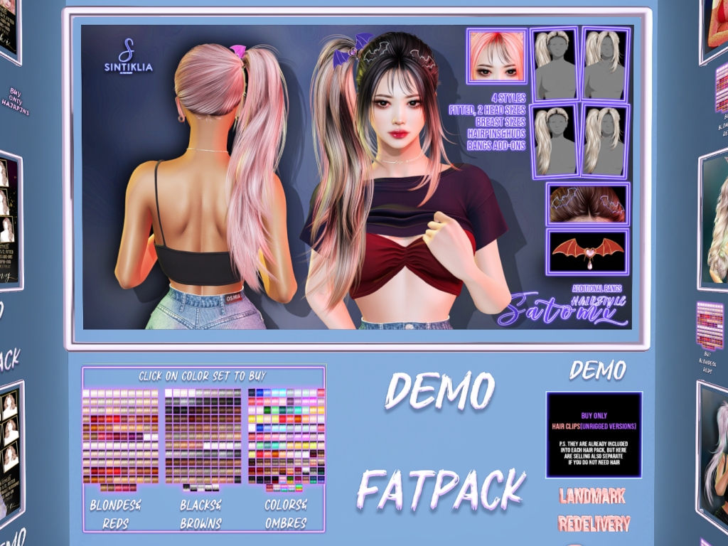 Featuring: Accessories, Appliers/Cosmetics/Nails, Builds, Clothing, Footwear, Hairs, Home and Garden, Tattoos