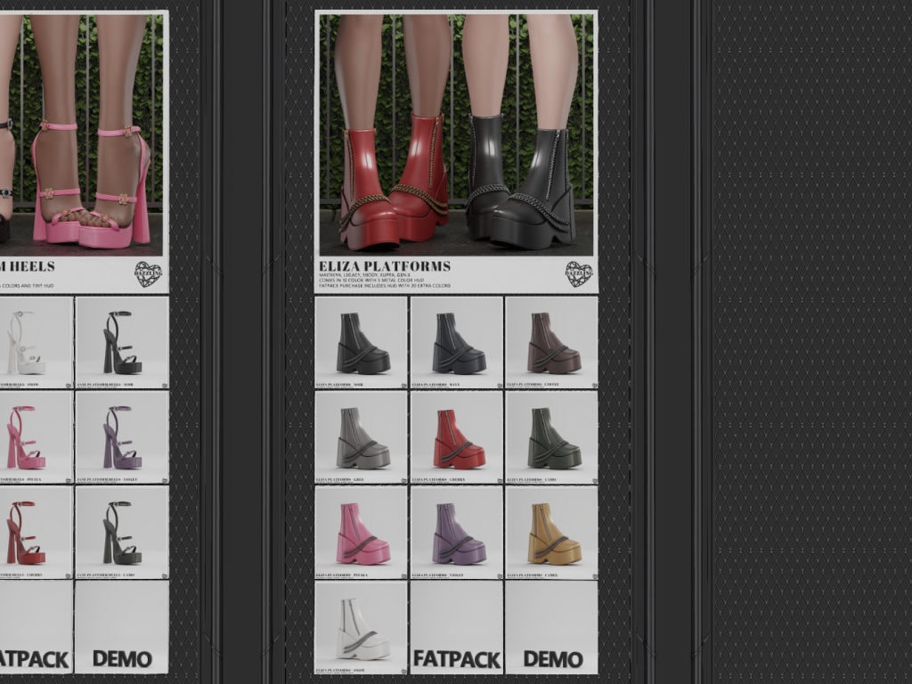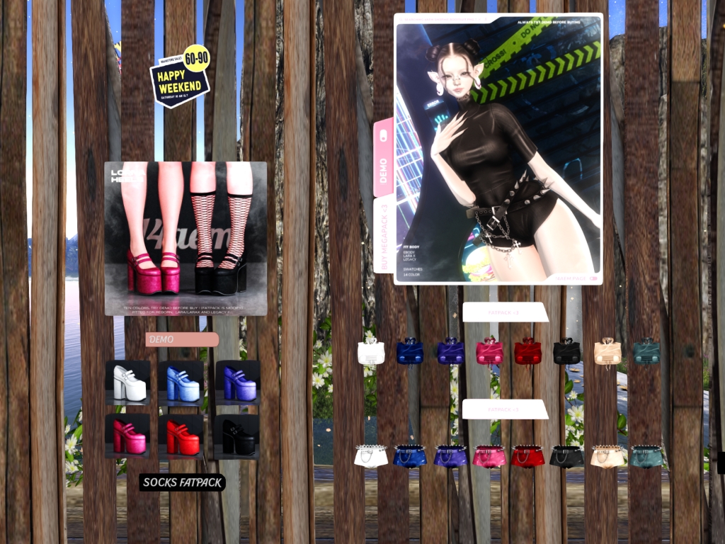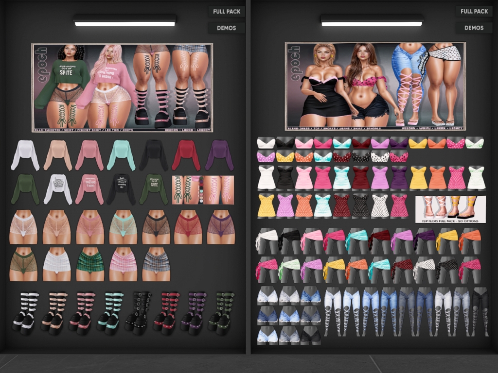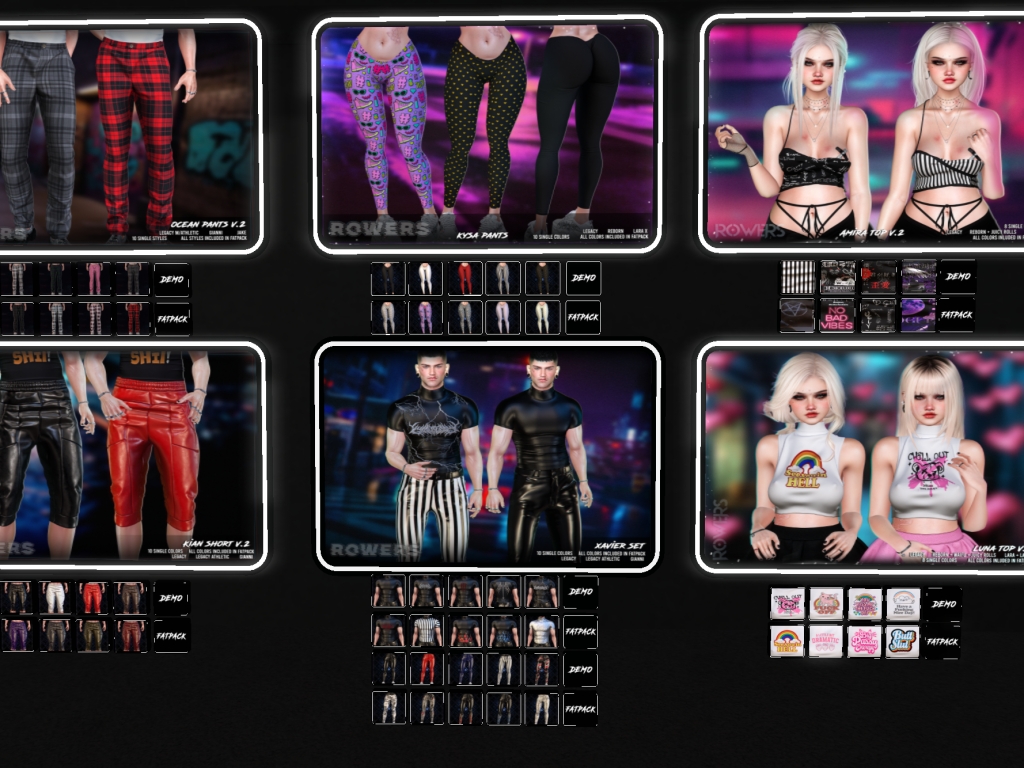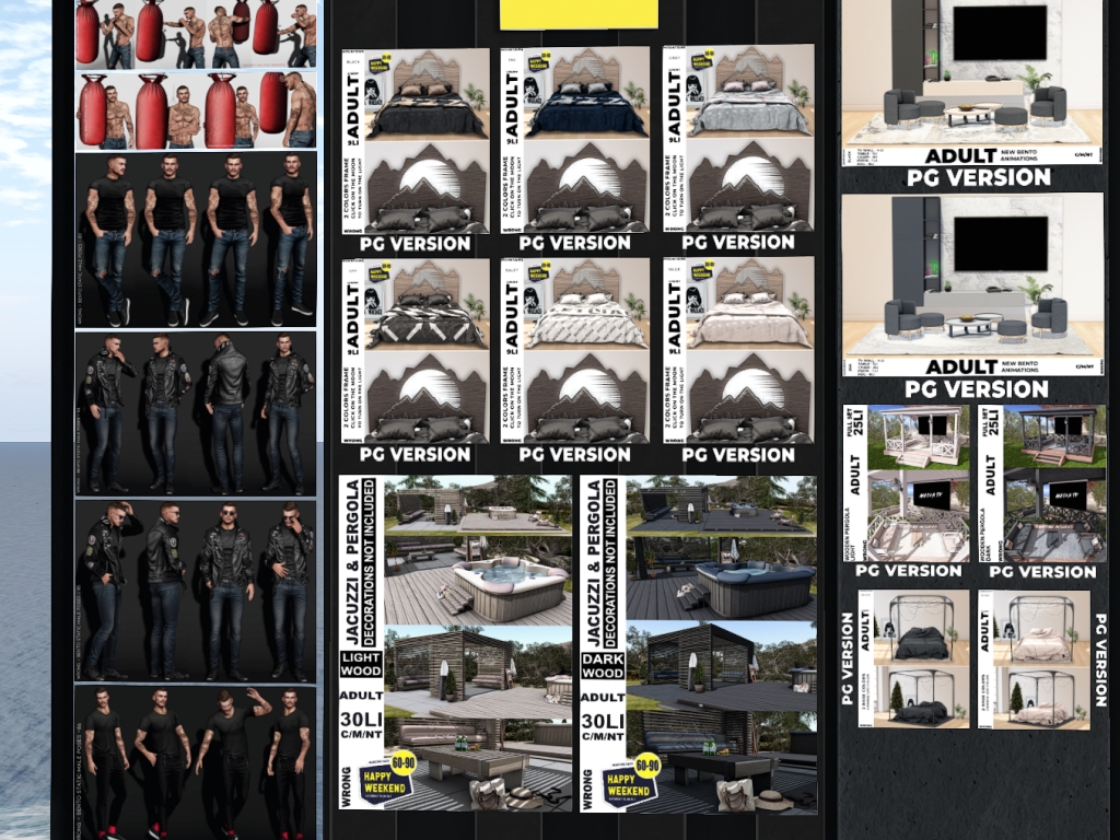 Featuring: Accessories, Animations/Poses/Props, Appliers/Cosmetics/Nails, Avatar Components, Builds, Clothing, Footwear, Hairs, Home and Garden, Shapes, Skins, Tattoos, Vehicles