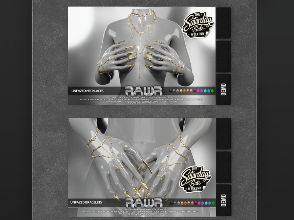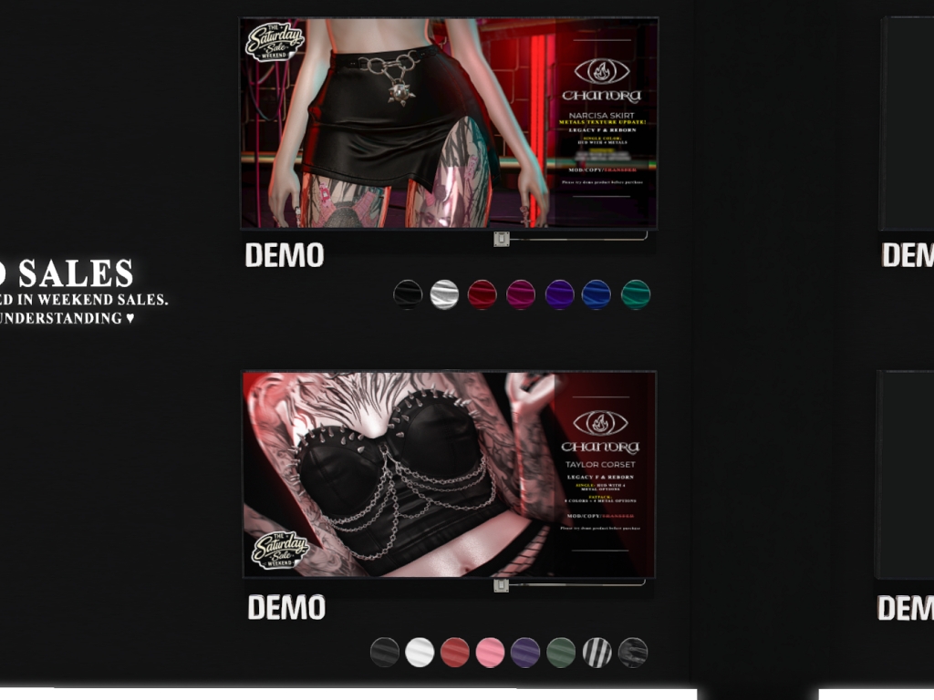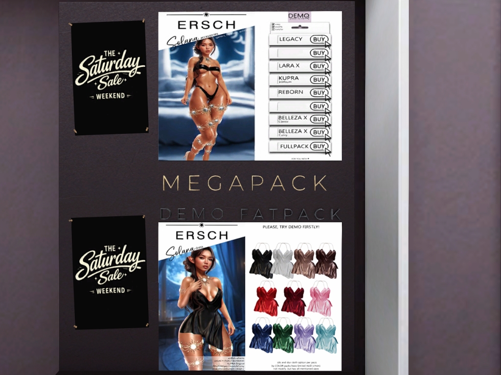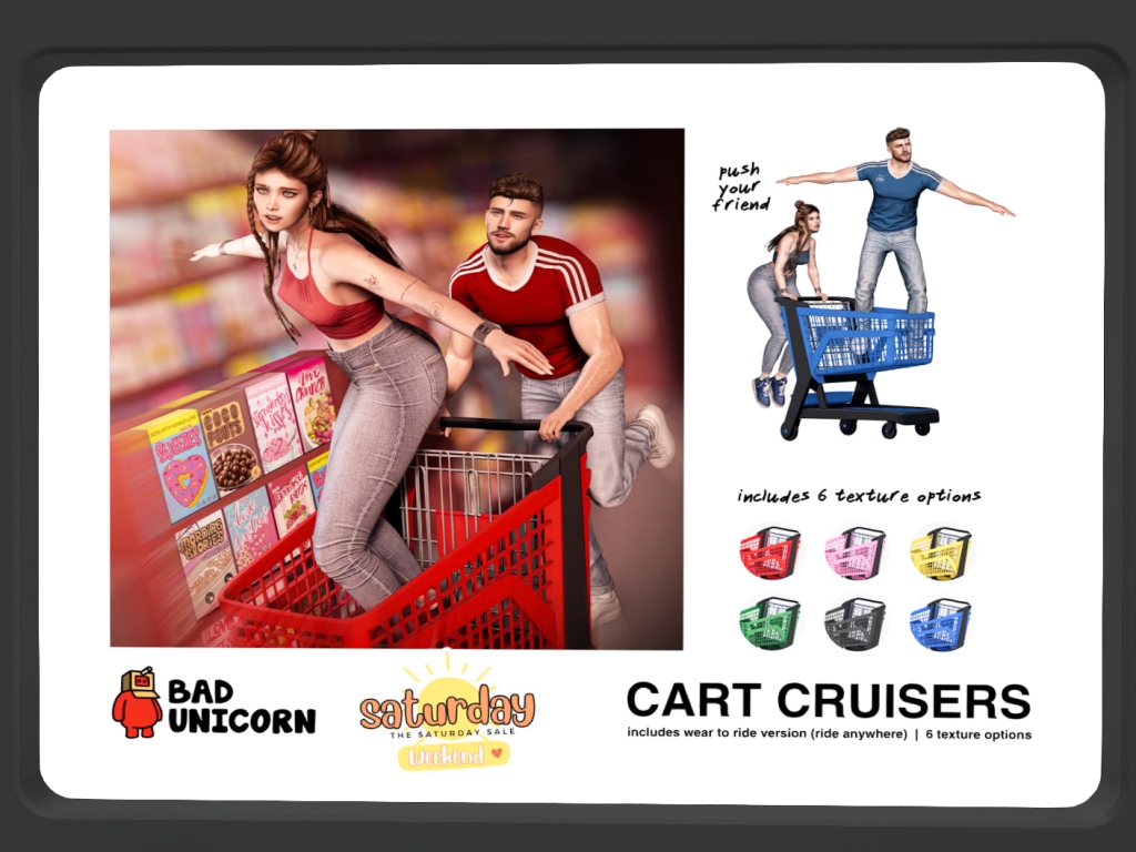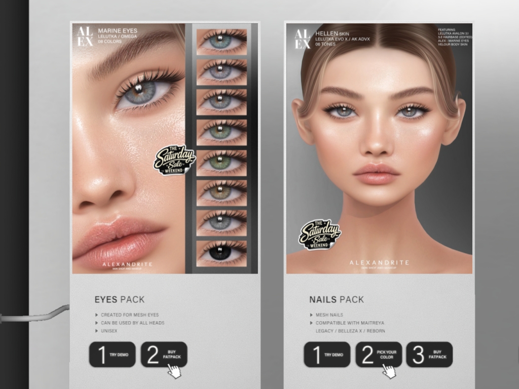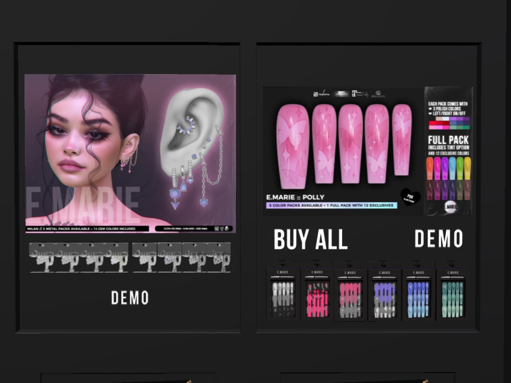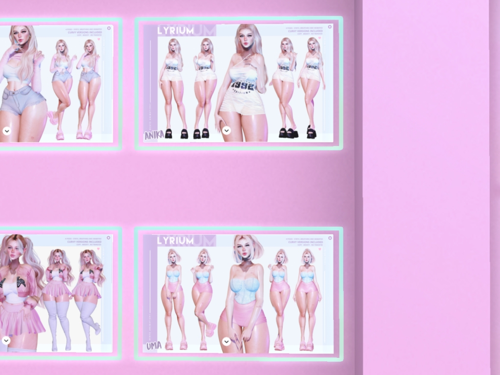 Featuring: Accessories, Animations/Poses/Props, Appliers/Cosmetics/Nails, Avatar Components, Avatar Enhancements, Builds, Clothing, Hairs, Home and Garden, Skins, Tattoos, Vehicles