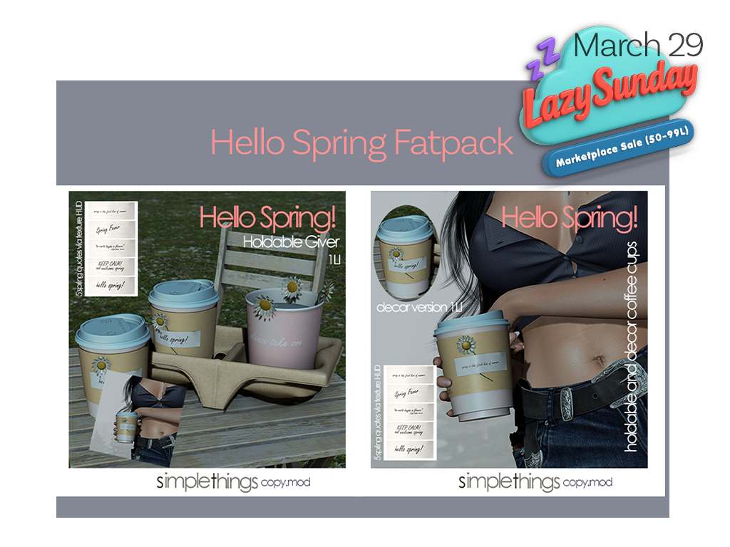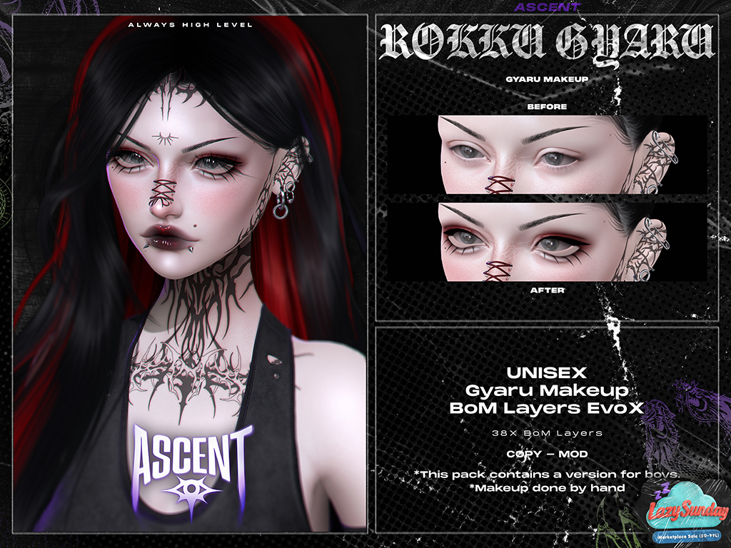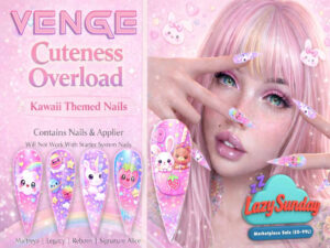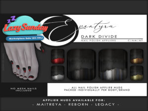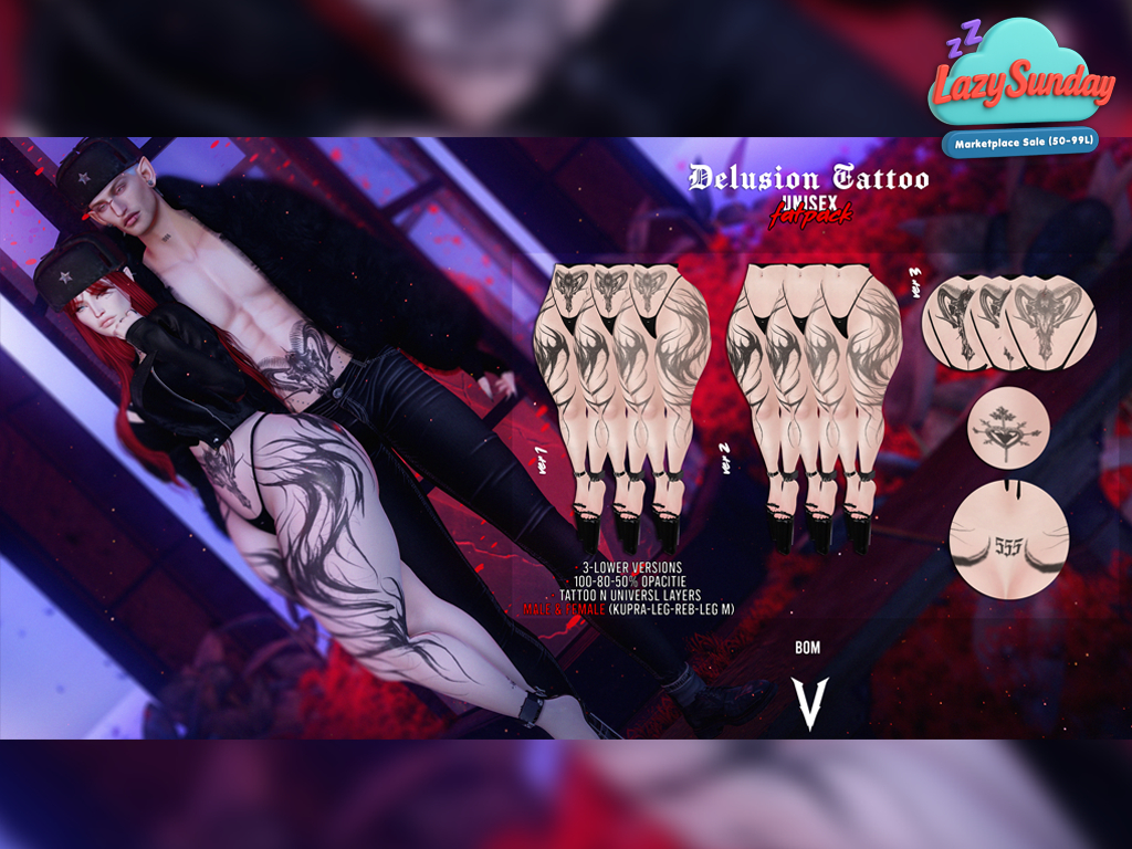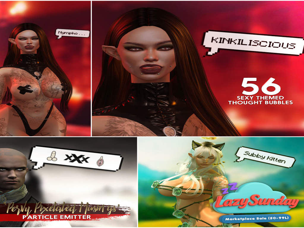 Featuring: Accessories, Animations/Poses/Props, Appliers/Cosmetics/Nails, Avatar Components, Avatar Enhancements, Builds, Clothing, Footwear, Hairs, Home and Garden, Interactive Games, Shapes, Skins, Tattoos, Vehicles