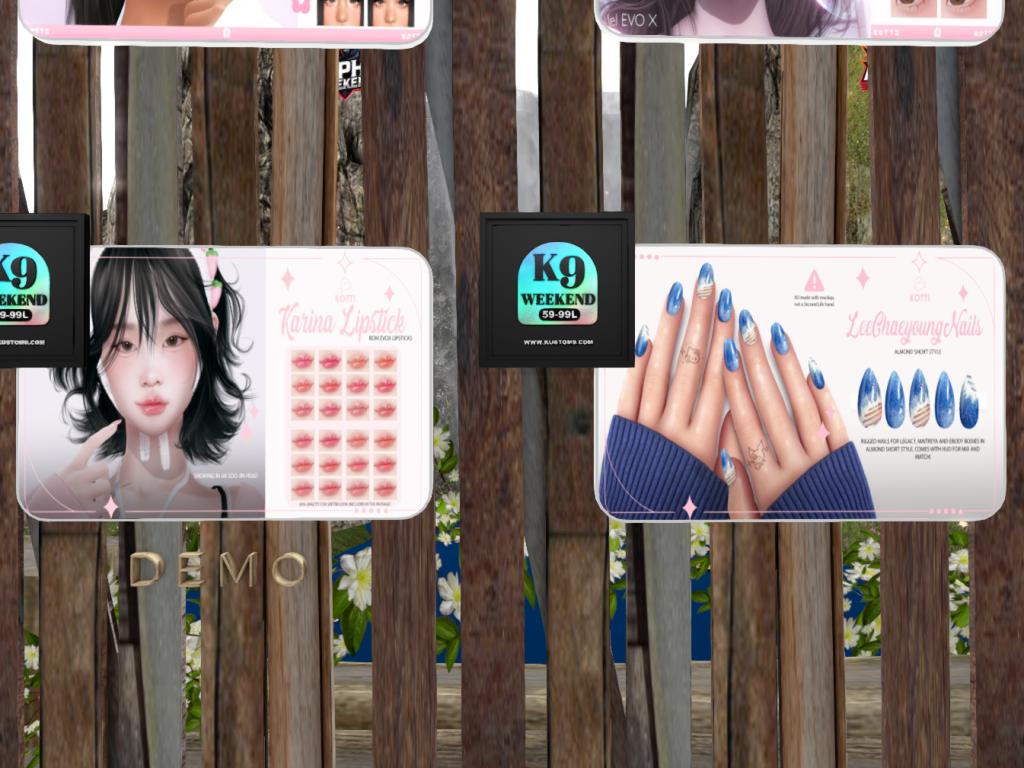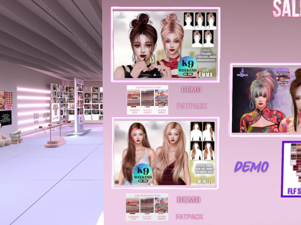 Featuring: Accessories, Animations/Poses/Props, Appliers/Cosmetics/Nails, Avatar Components, Builds, Clothing, Footwear, Hairs, Home and Garden, Skins