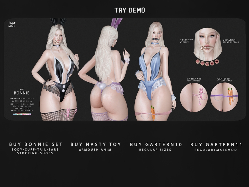 Featuring: Accessories, Animations/Poses/Props, Appliers/Cosmetics/Nails, Avatar Components, Avatar Enhancements, Builds, Clothing, Developer Tools, Footwear, Home and Garden, Tattoos