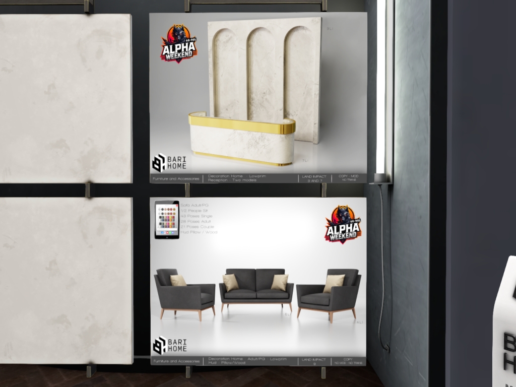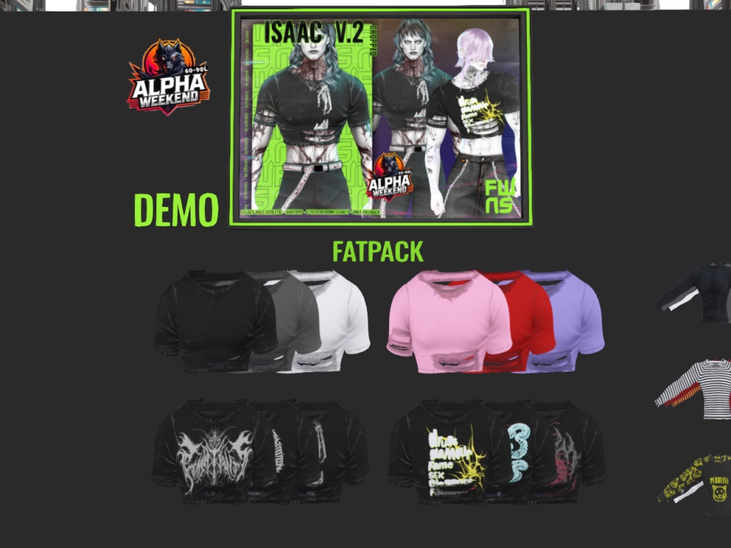 Featuring: Accessories, Animations/Poses/Props, Avatar Enhancements, Builds, Clothing, Footwear, Hairs, Home and Garden, Tattoos, Textures, Vehicles