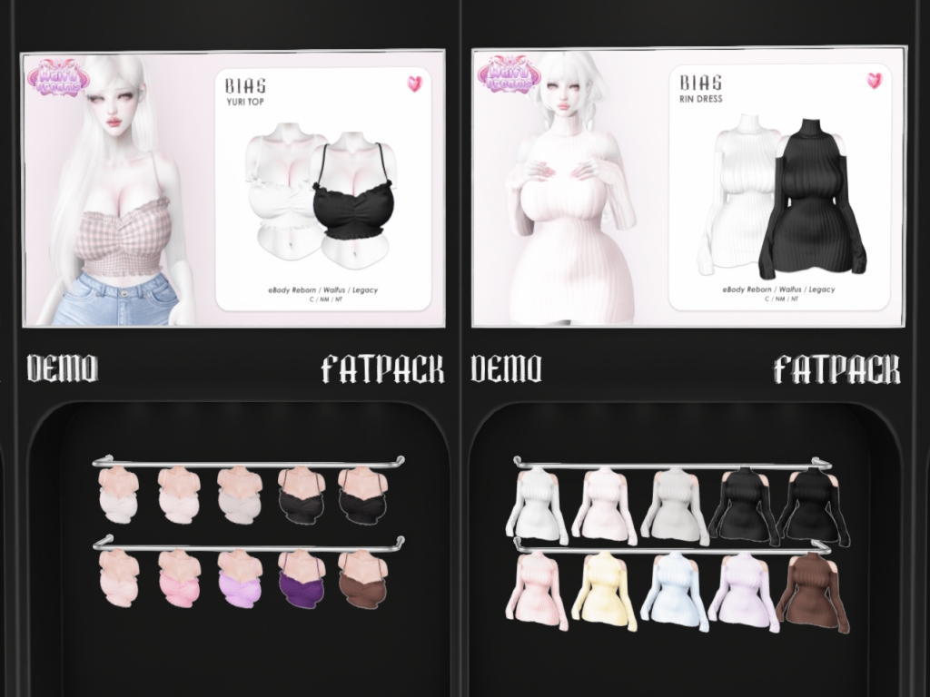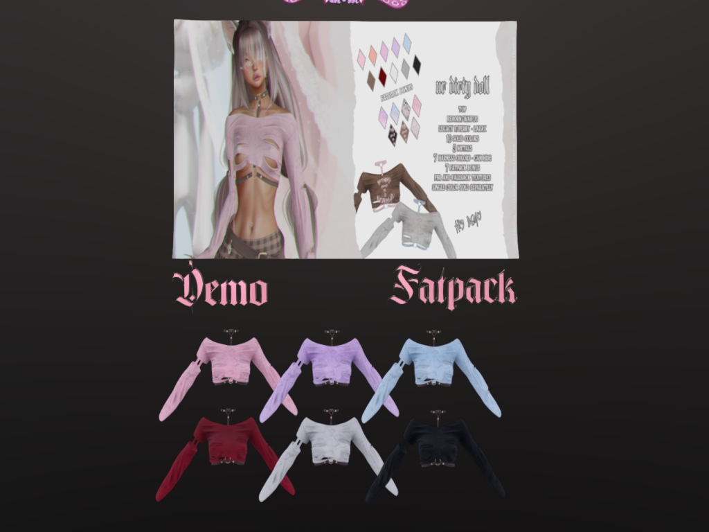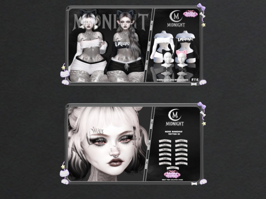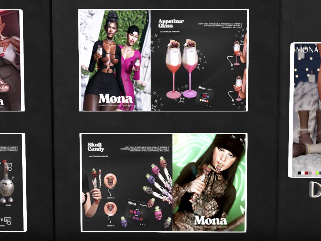 Featuring: Accessories, Animations/Poses/Props, Appliers/Cosmetics/Nails, Avatar Enhancements, Builds, Clothing, Footwear, Shapes, Skins, Tattoos