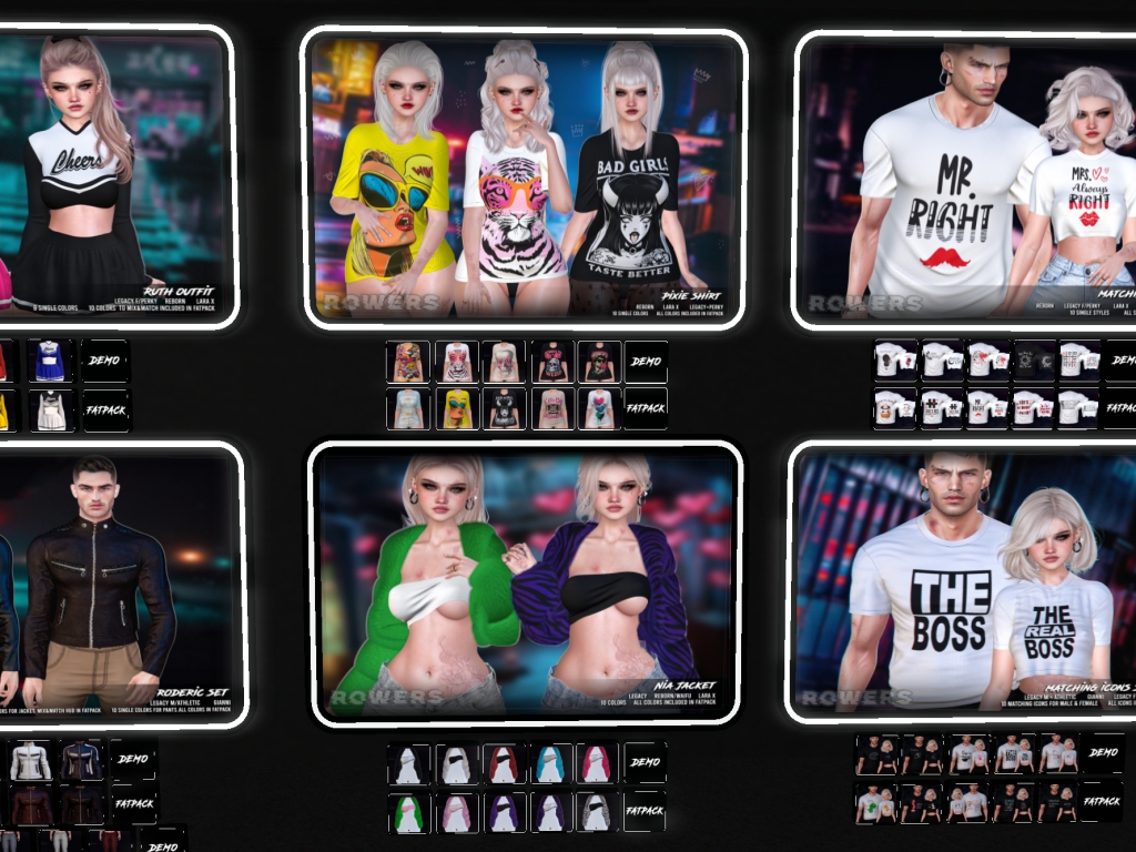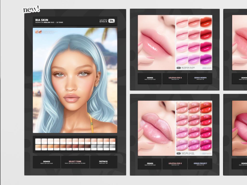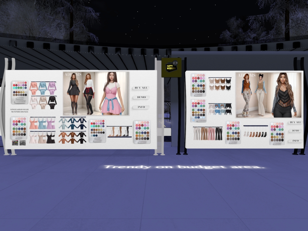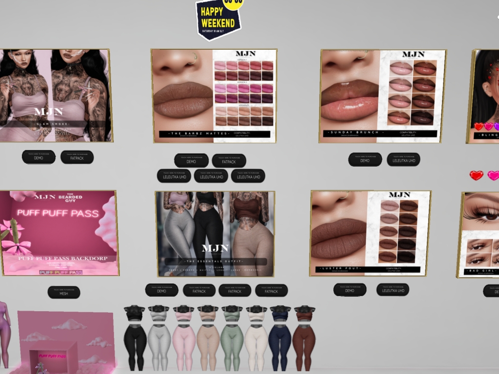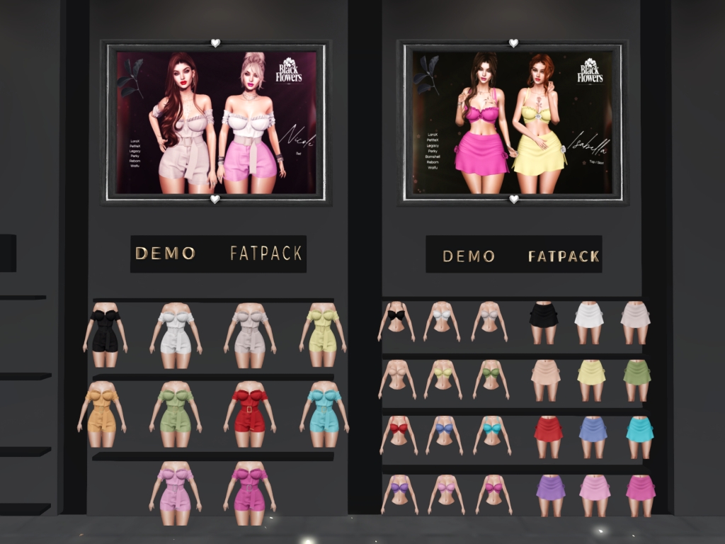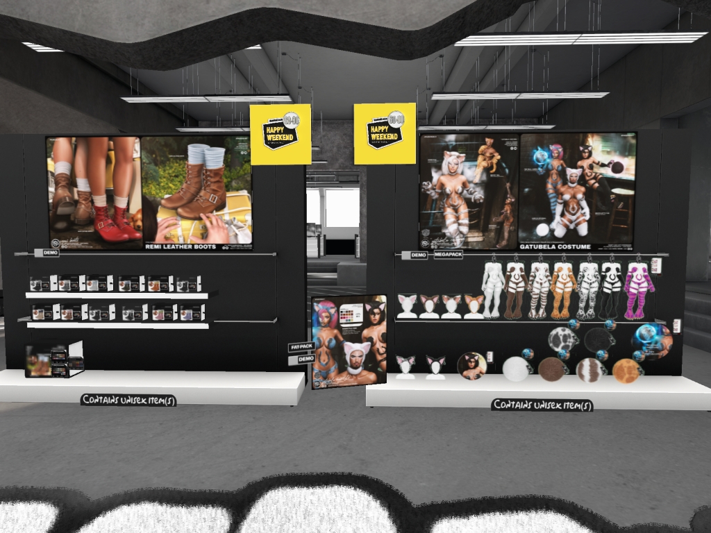Featuring: Accessories, Animals/Pets/Companions, Animations/Poses/Props, Appliers/Cosmetics/Nails, Avatar Components, Avatar Enhancements, Builds, Clothing, Footwear, Hairs, Home and Garden, HUDs, Shapes, Skins, Tattoos, Vehicles