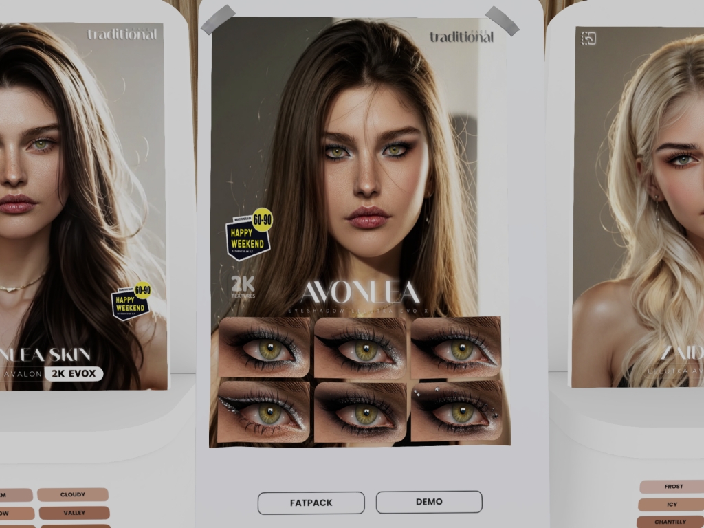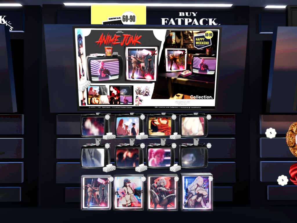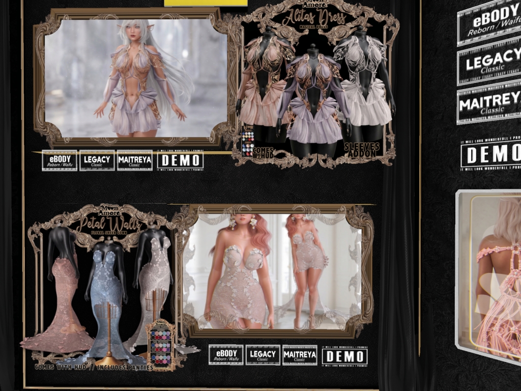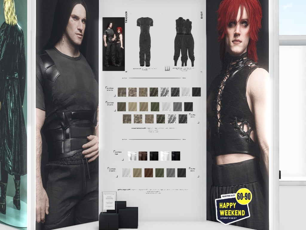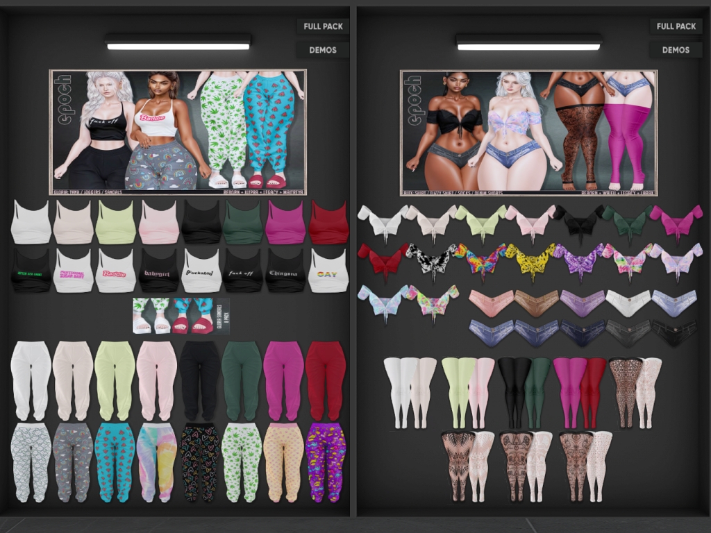 Featuring: Accessories, Animals/Pets/Companions, Animations/Poses/Props, Appliers/Cosmetics/Nails, Avatar Components, Avatar Enhancements, Builds, Clothing, Footwear, Hairs, Home and Garden, HUDs, Shapes, Skins, Tattoos, Vehicles