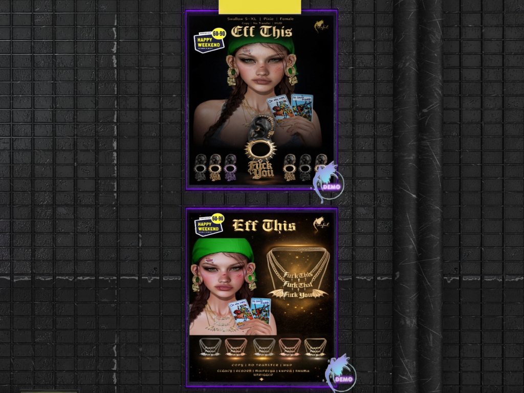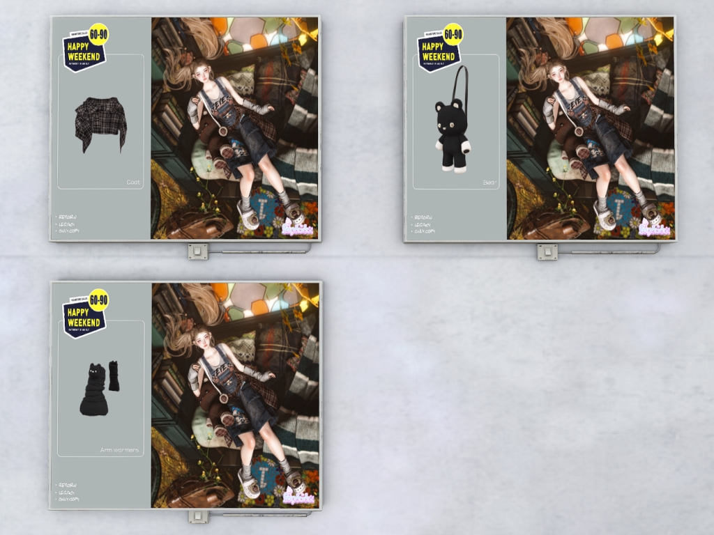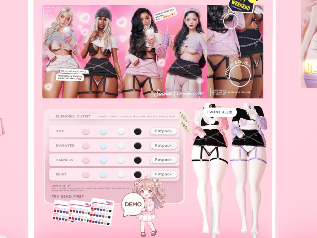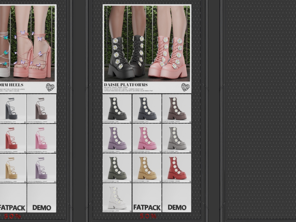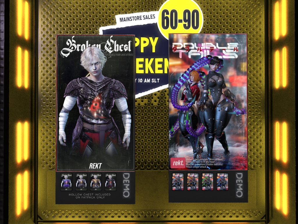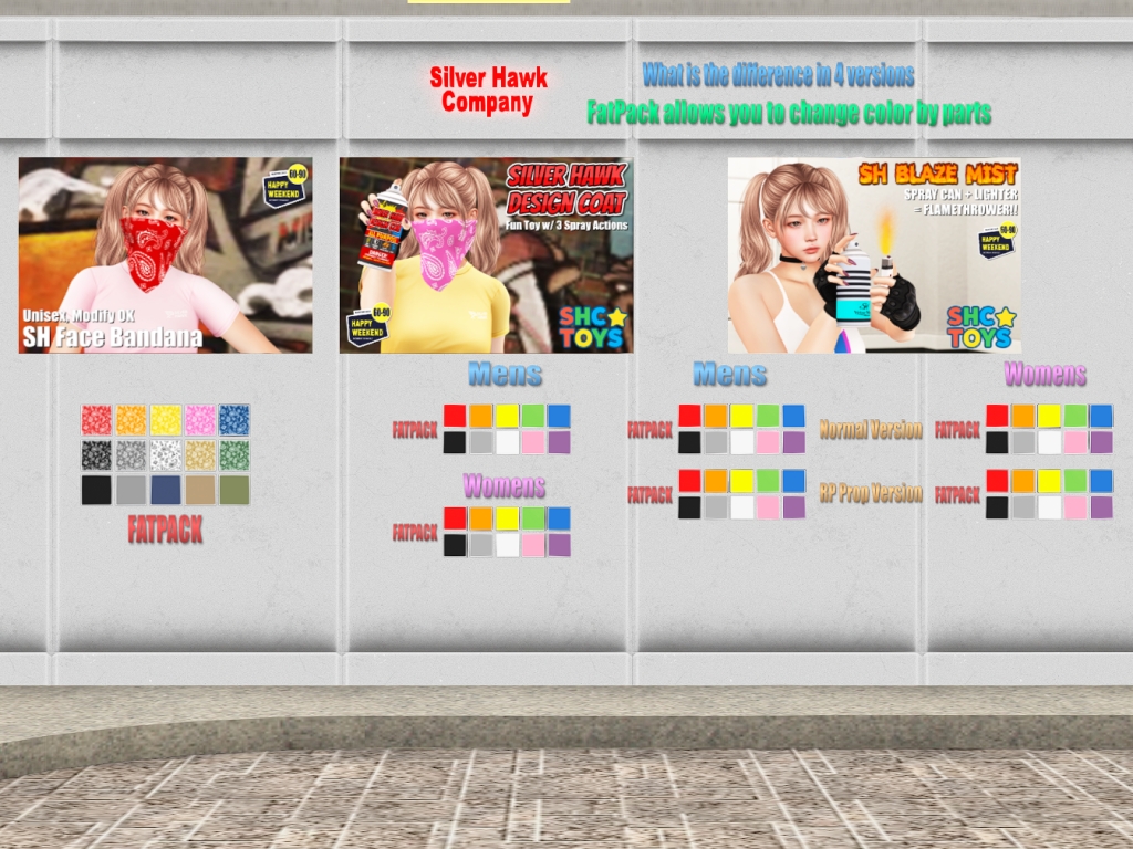 Featuring: Accessories, Animals/Pets/Companions, Animations/Poses/Props, Appliers/Cosmetics/Nails, Avatar Components, Avatar Enhancements, Builds, Clothing, Footwear, Hairs, Home and Garden, HUDs, Shapes, Skins, Tattoos, Vehicles