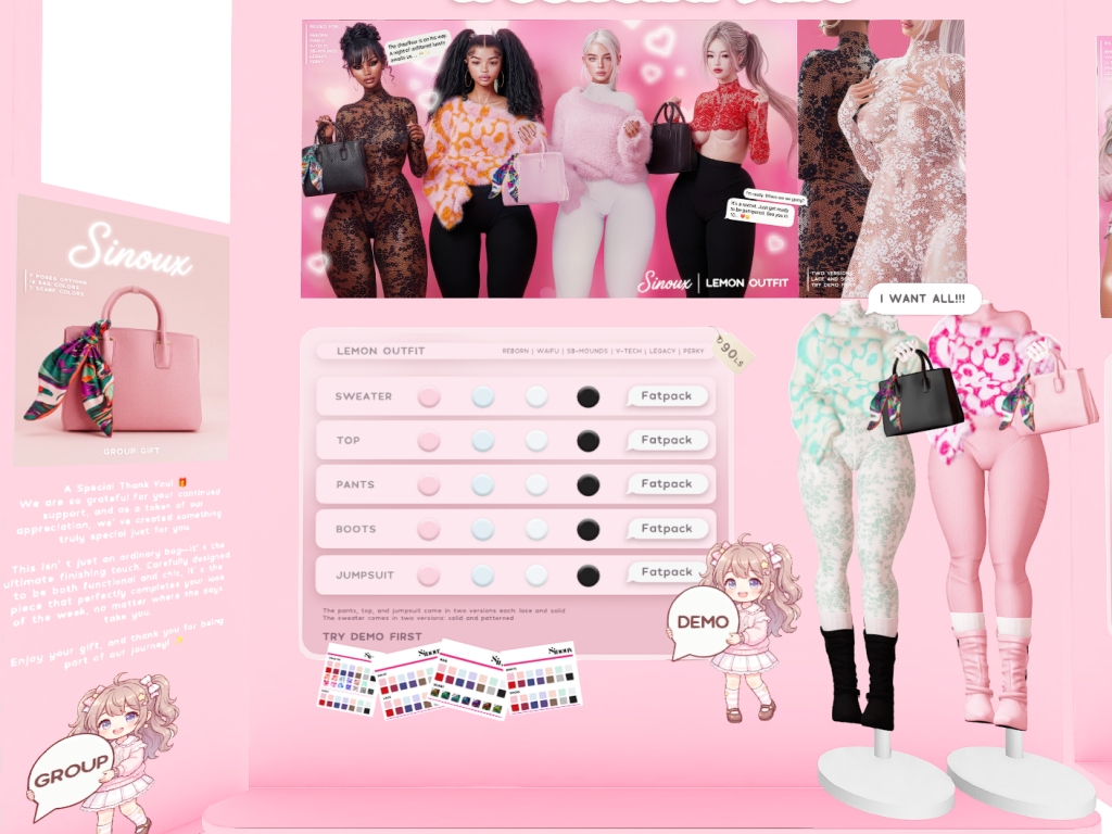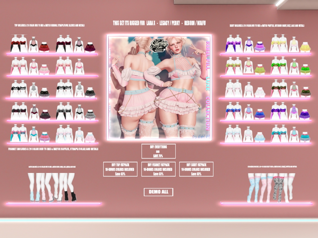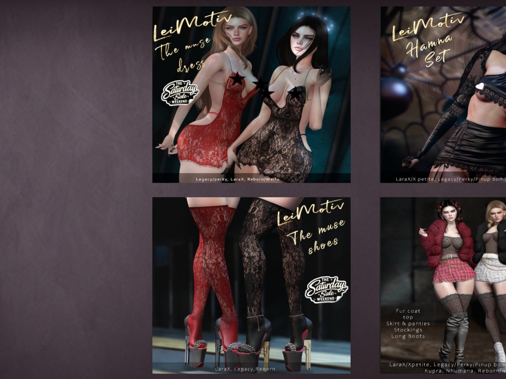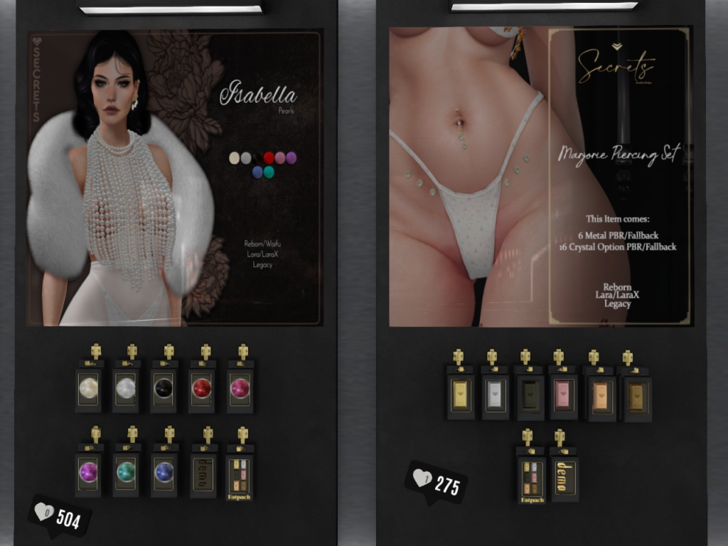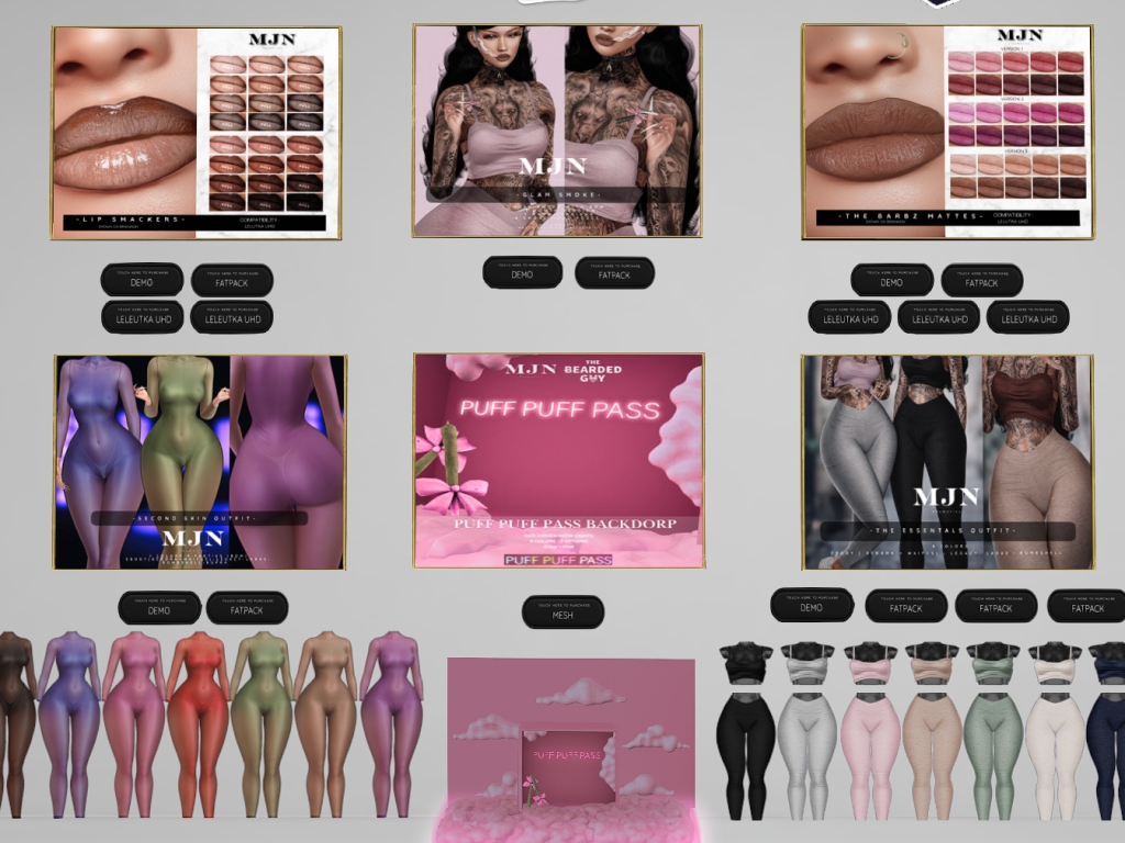 Featuring: Accessories, Animations/Poses/Props, Appliers/Cosmetics/Nails, Avatar Components, Avatar Enhancements, Builds, Clothing, Hairs, Home and Garden, Skins, Tattoos, Vehicles