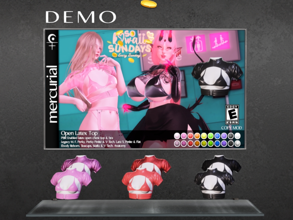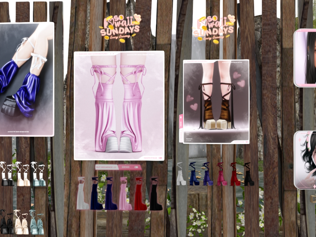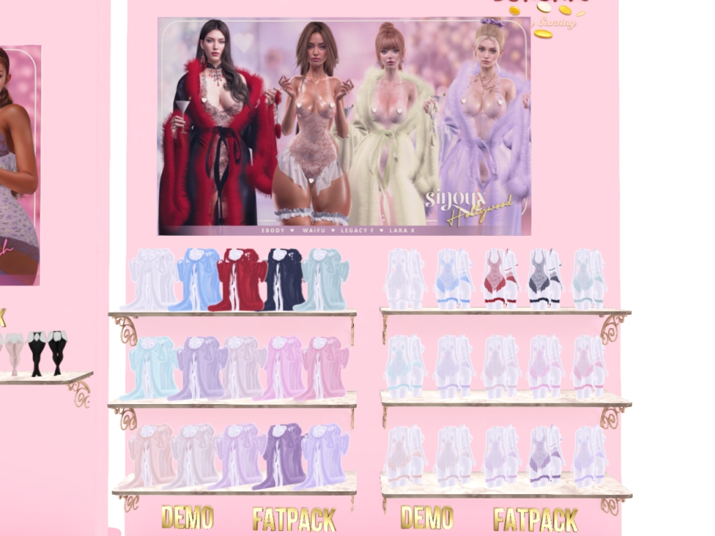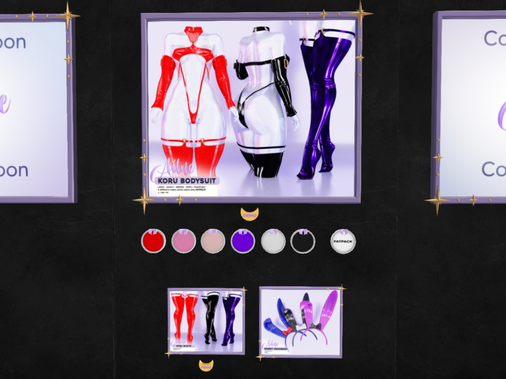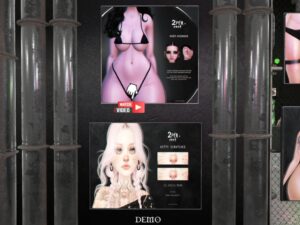 Featuring: Accessories, Animations/Poses/Props, Appliers/Cosmetics/Nails, Avatar Components, Avatar Enhancements, Builds, Clothing, Footwear, Home and Garden, Shapes, Skins, Tattoos
