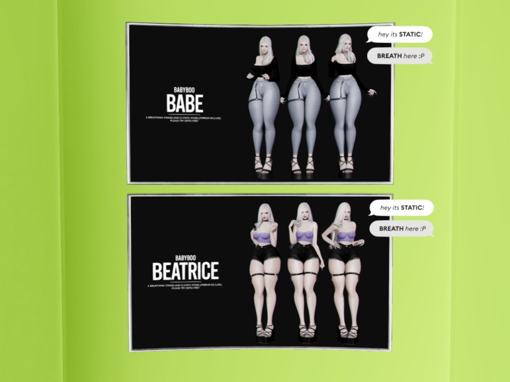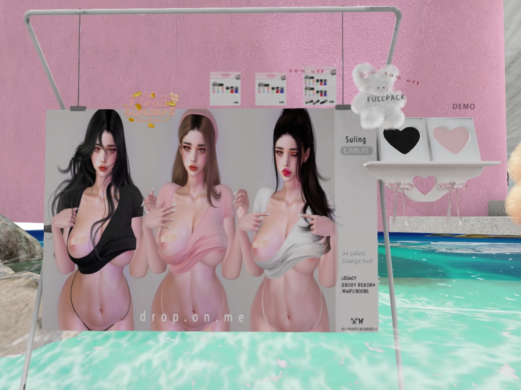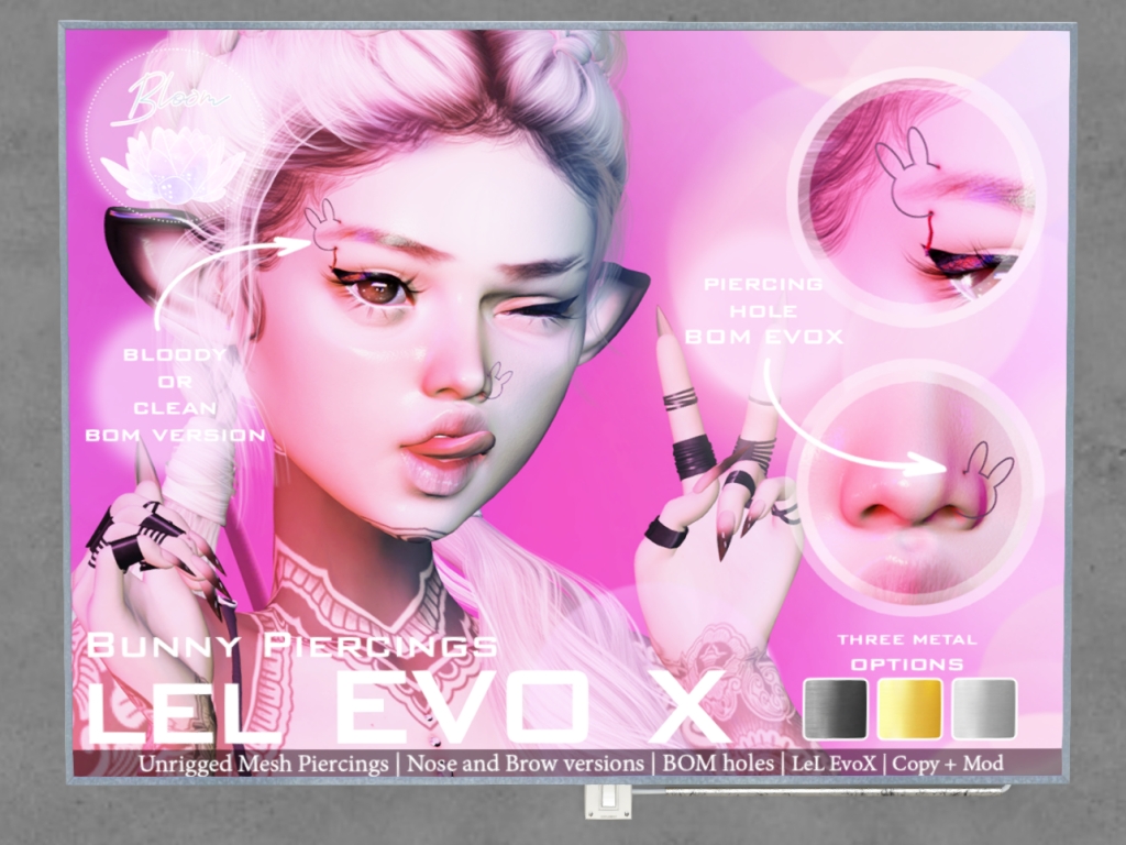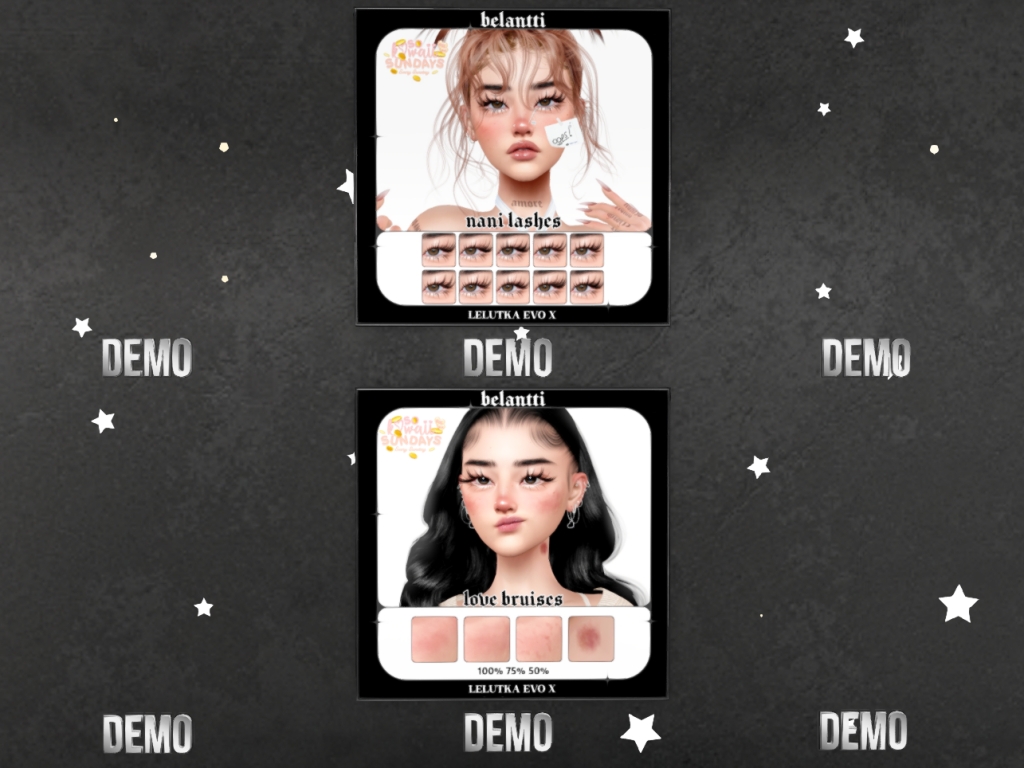 Featuring: Accessories, Animations/Poses/Props, Appliers/Cosmetics/Nails, Avatar Components, Avatar Enhancements, Builds, Clothing, Footwear, Home and Garden, Shapes, Skins, Tattoos
