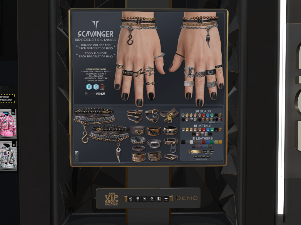 Featuring: Accessories, Animations/Poses/Props, Avatar Components, Avatar Enhancements, Builds, Clothing, Footwear, Hairs, Home and Garden, Interactive Games, Shapes, Skins, Tattoos