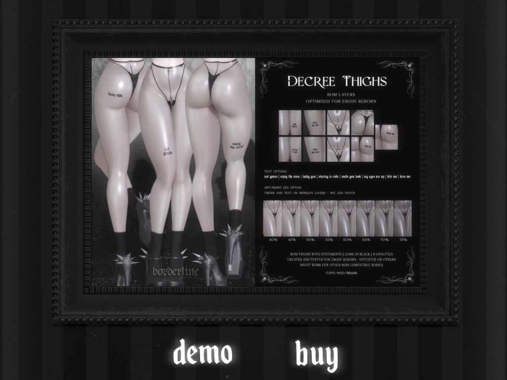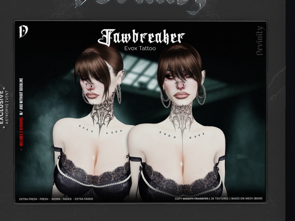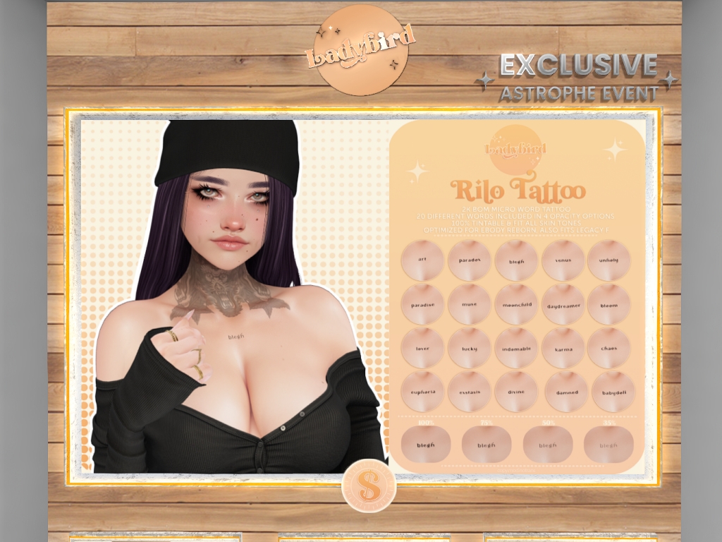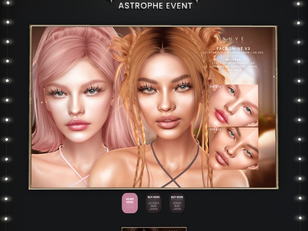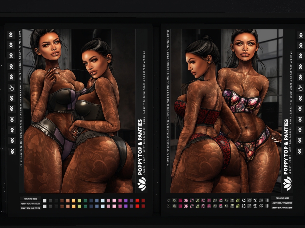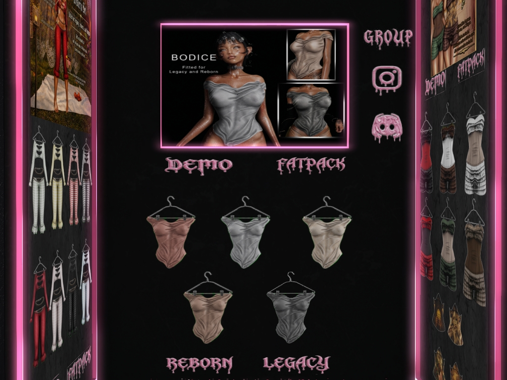 Featuring: Accessories, Animals/Pets/Companions, Appliers/Cosmetics/Nails, Avatar Components, Avatar Enhancements, Builds, Clothing, Footwear, Home and Garden, Shapes, Skins, Tattoos