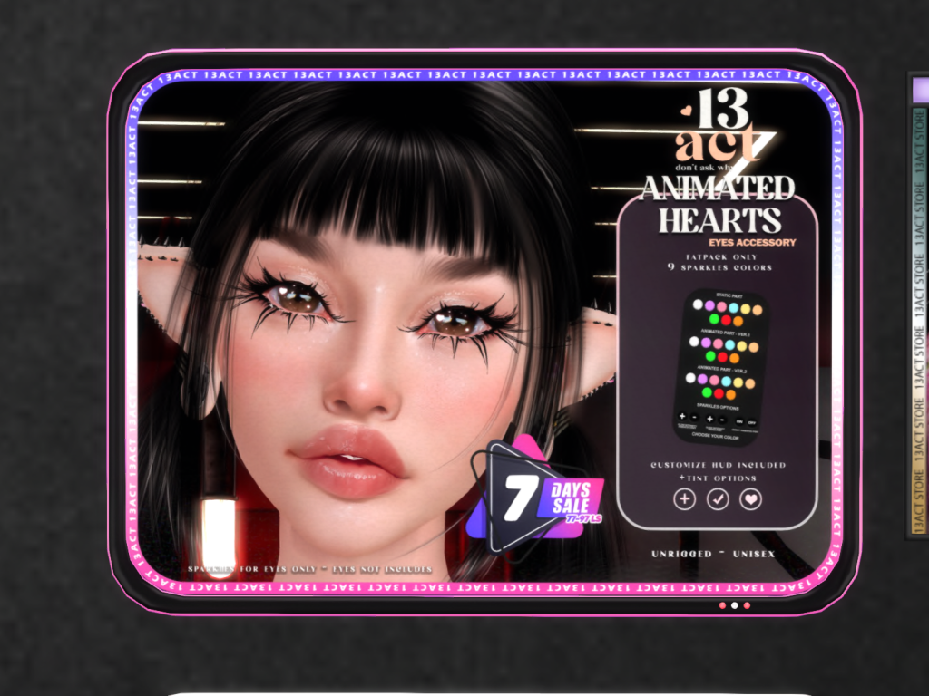 Featuring: Accessories, Animations/Poses/Props, Appliers/Cosmetics/Nails, Avatar Components, Avatar Enhancements, Clothing, Footwear, Home and Garden, Tattoos, Textures, Tools
