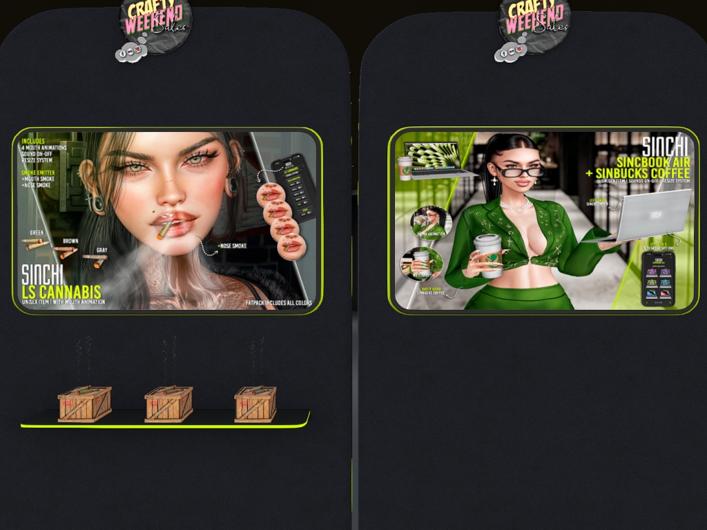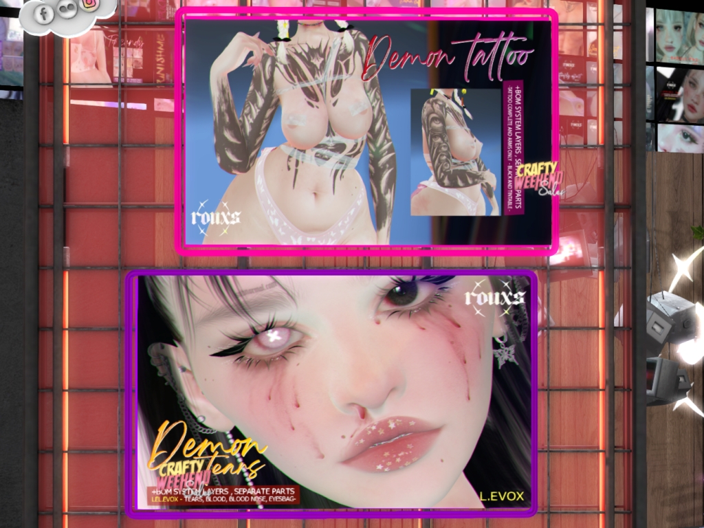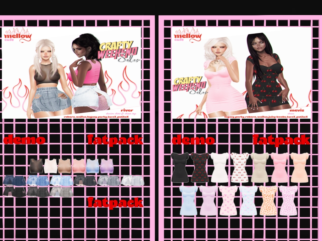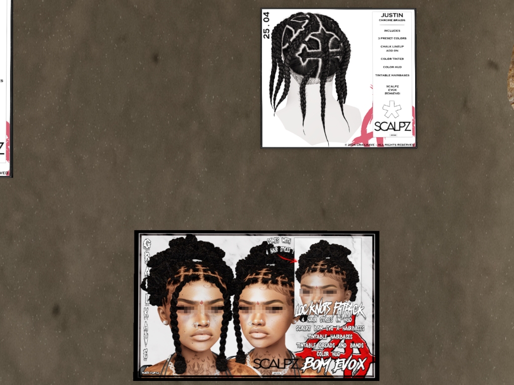Featuring: Accessories, Animations/Poses/Props, Appliers/Cosmetics/Nails, Avatar Components, Avatar Enhancements, Builds, Clothing, Footwear, Hairs, Home and Garden, Skins, Tattoos, Vehicles